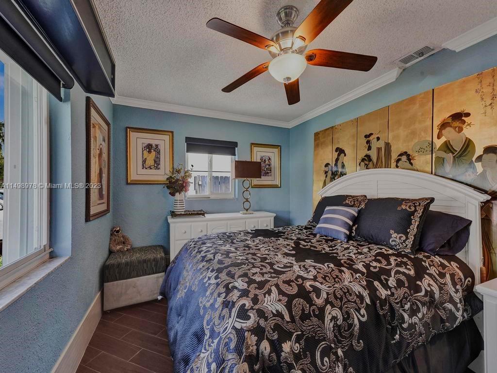 Beautiful home in desireable NE Hallandale Beach. 2 bed/2 full baths, all tile floors, crown molding, full impact windows & doors, screen doors all around, new kitchen, wood cabinets, granite tops, pantry, SS appliances & a window over the sink. Dining/family room has 2 walls of impact sliding doors, brings lot's of natural light & nice breezes! Main bath brand new! Walk in closets with lighting. Modern window blinds, 5 ceiling fans. Large fenced yard, room for a pool, huge 29X22 patio with pergola (cover not shown in photos), 2 sheds, one 10X13 has air conditioning! Roof 7yrs old. Double wide driveway. Quiet neighborhood, friendly neighbors. Easy walk to shopping, dining, downtown Hollywood, Gulfstream Racing. Close to golf, tennis and Hollywood Broadwalk. Aventura mall 2 miles away.