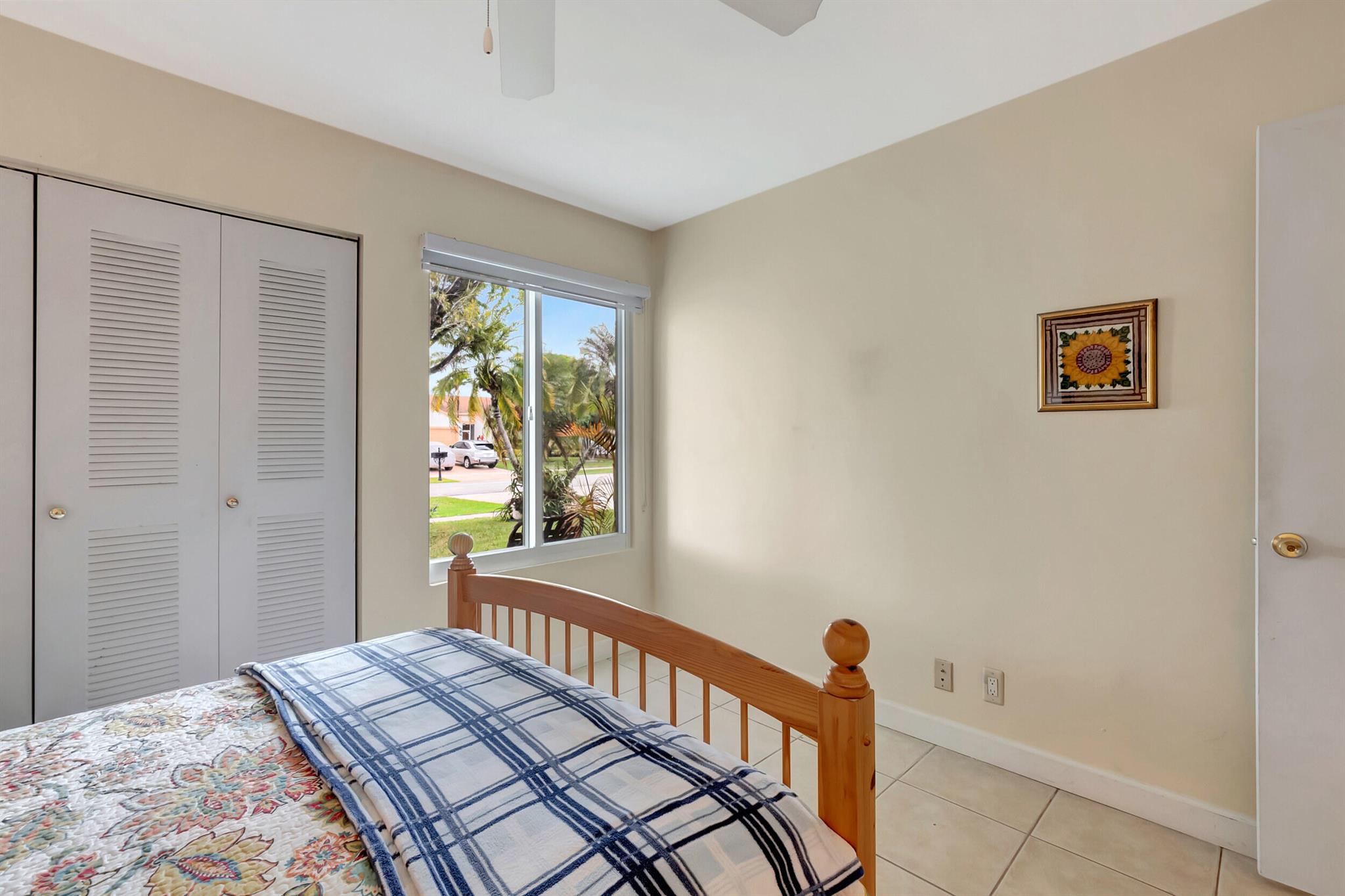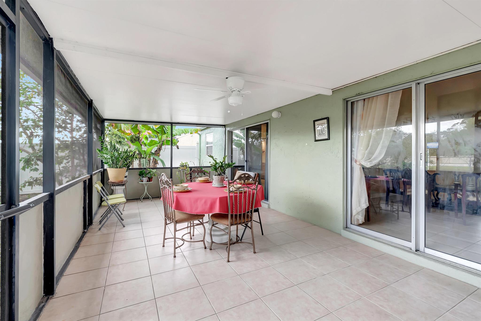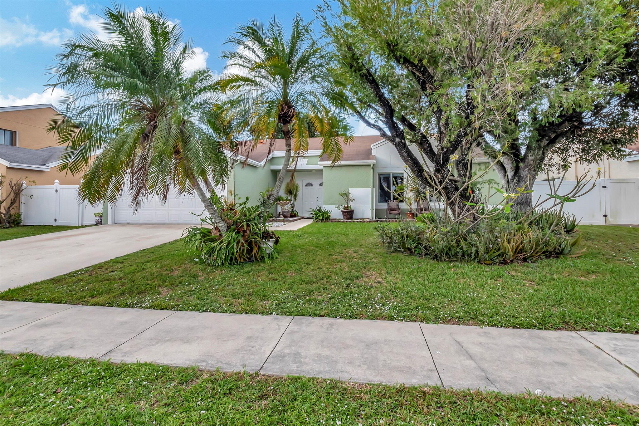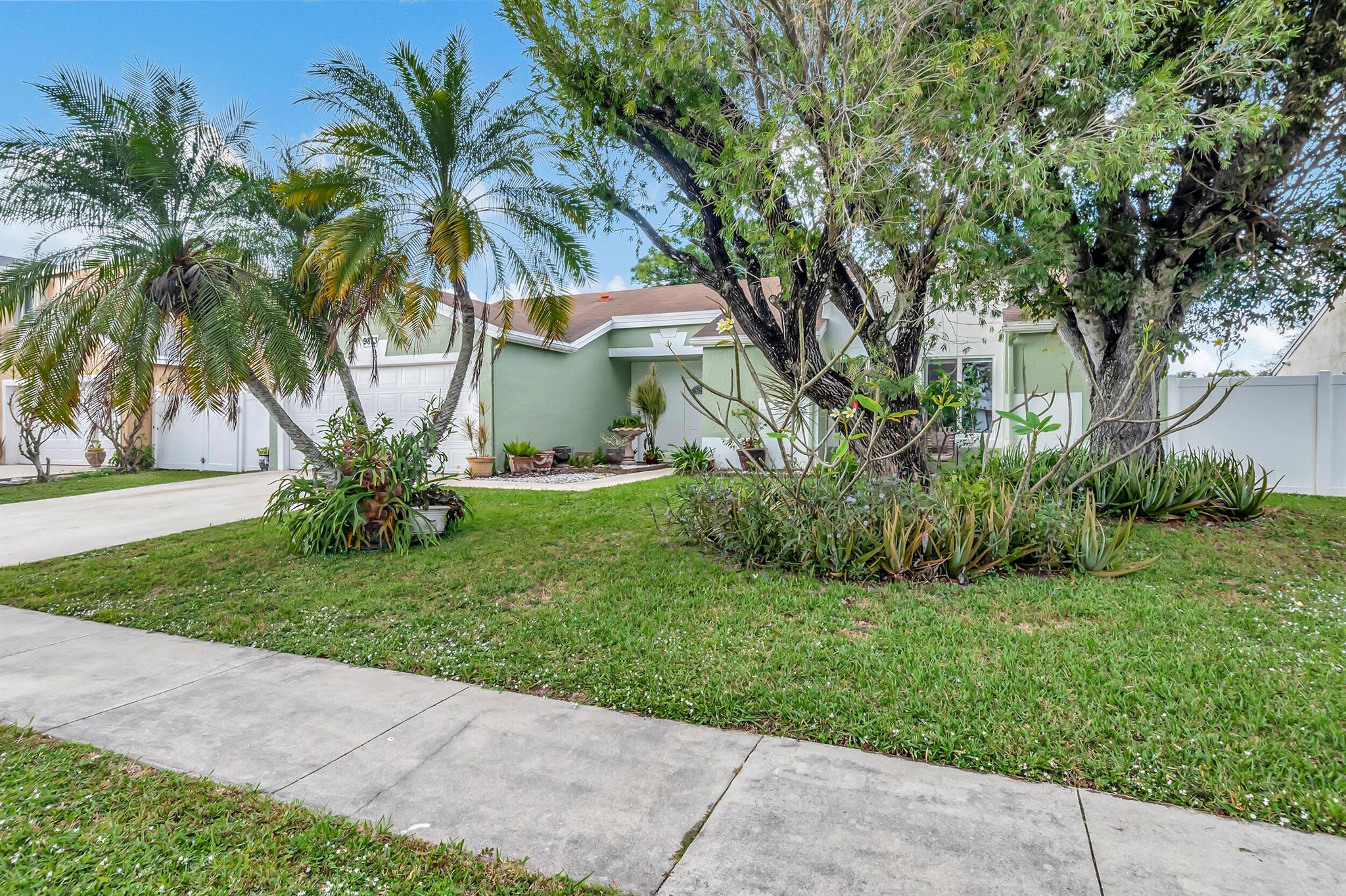 One level immaculate Home! Tile wall to wall...no carpets here! Roof installed new in 2013, now only 10 years old. New AC unit installed July 2023. 2 front bedroom windows are impact. Bedrooms are a large size and screened in patio is huge @ over 500sq ft! with 2 new ceiling fans. Fruit trees including banana, guanabana, soursop and an Avocado tree in back yard Boca Landings has low HOA fees which include Cable and fiber optic Wi-Fi. The community area has an Olympic pool and kiddie pool, tot lot, basketball Raquet ball, pickle ball and tennis all lit for night play! There are streetlights and sidewalks throughout the entire neighborhood for safety in biking and walking. Walk to shopping center. Boca Raton Schools! Roving security guard.