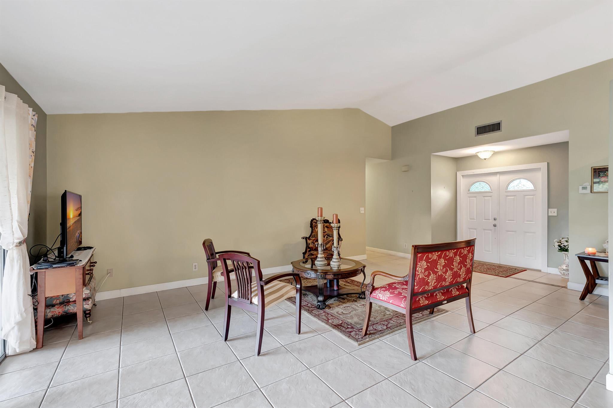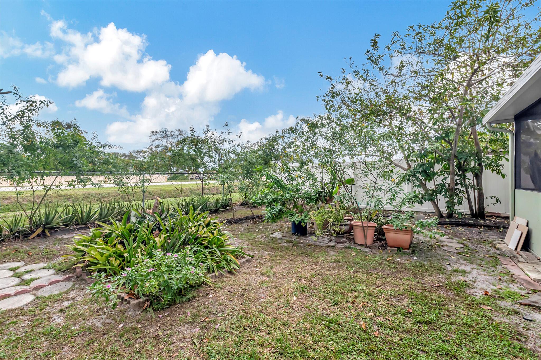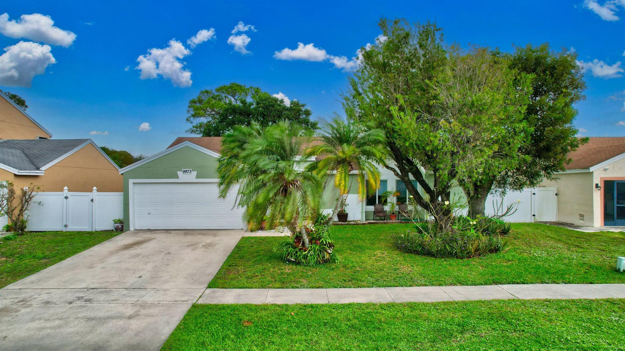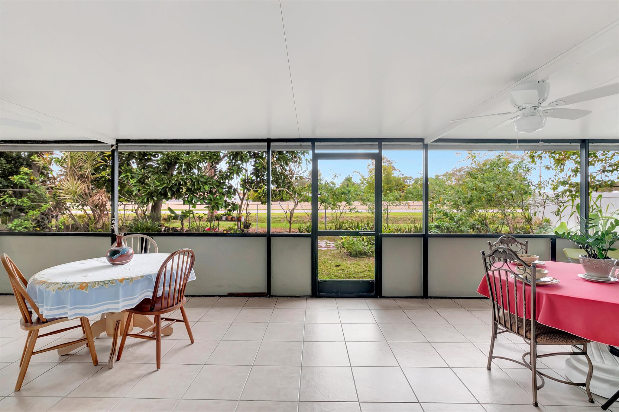 One level immaculate Home! Tile wall to wall...no carpets here! Roof installed new in 2013, now only 10 years old. New AC unit installed July 2023. 2 front bedroom windows are impact. Bedrooms are a large size and screened in patio is huge @ over 500sq ft! with 2 new ceiling fans. Fruit trees including banana, guanabana, soursop and an Avocado tree in back yard Boca Landings has low HOA fees which include Cable and fiber optic Wi-Fi. The community area has an Olympic pool and kiddie pool, tot lot, basketball Raquet ball, pickle ball and tennis all lit for night play! There are streetlights and sidewalks throughout the entire neighborhood for safety in biking and walking. Walk to shopping center. Boca Raton Schools! Roving security guard.