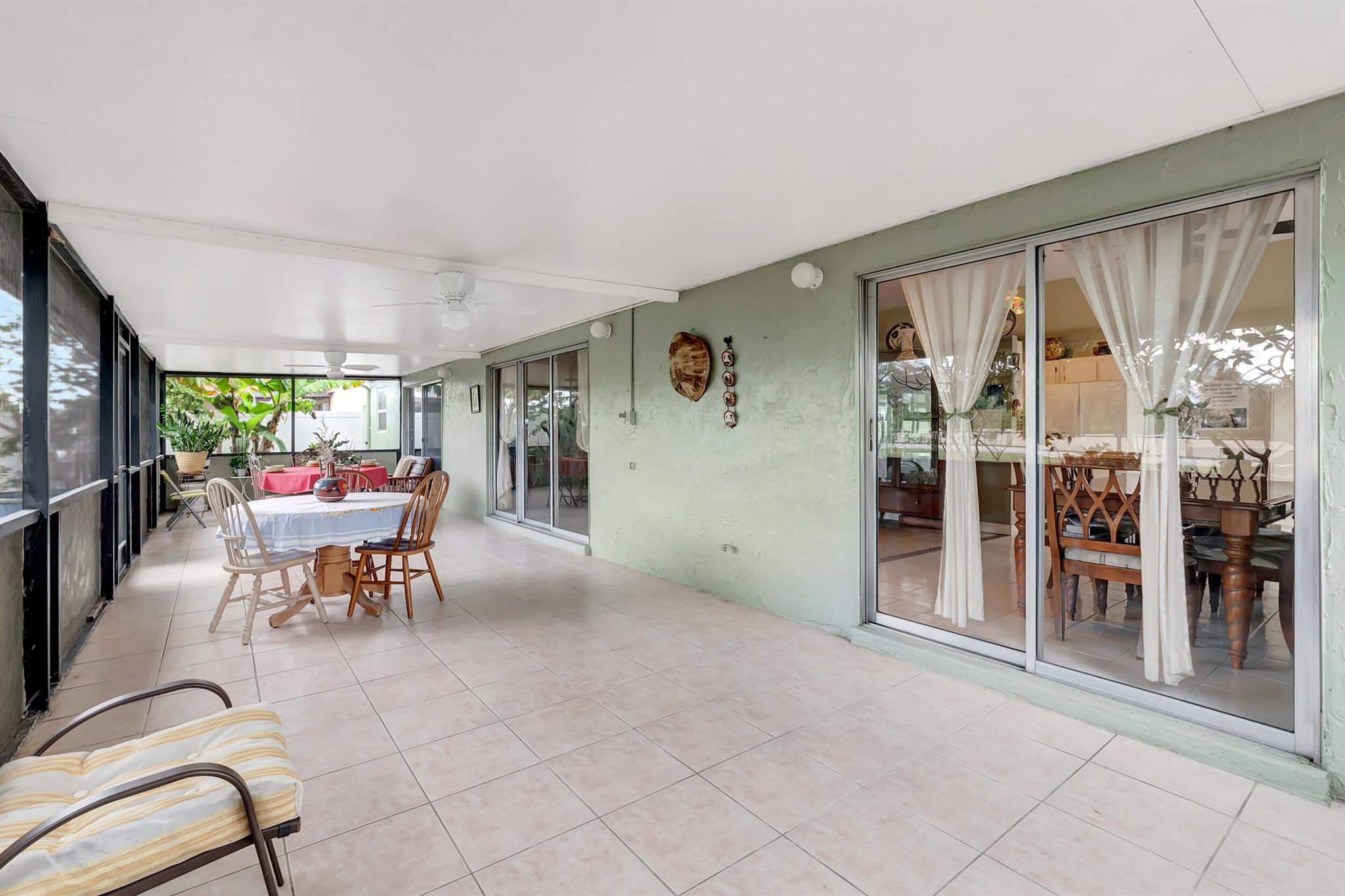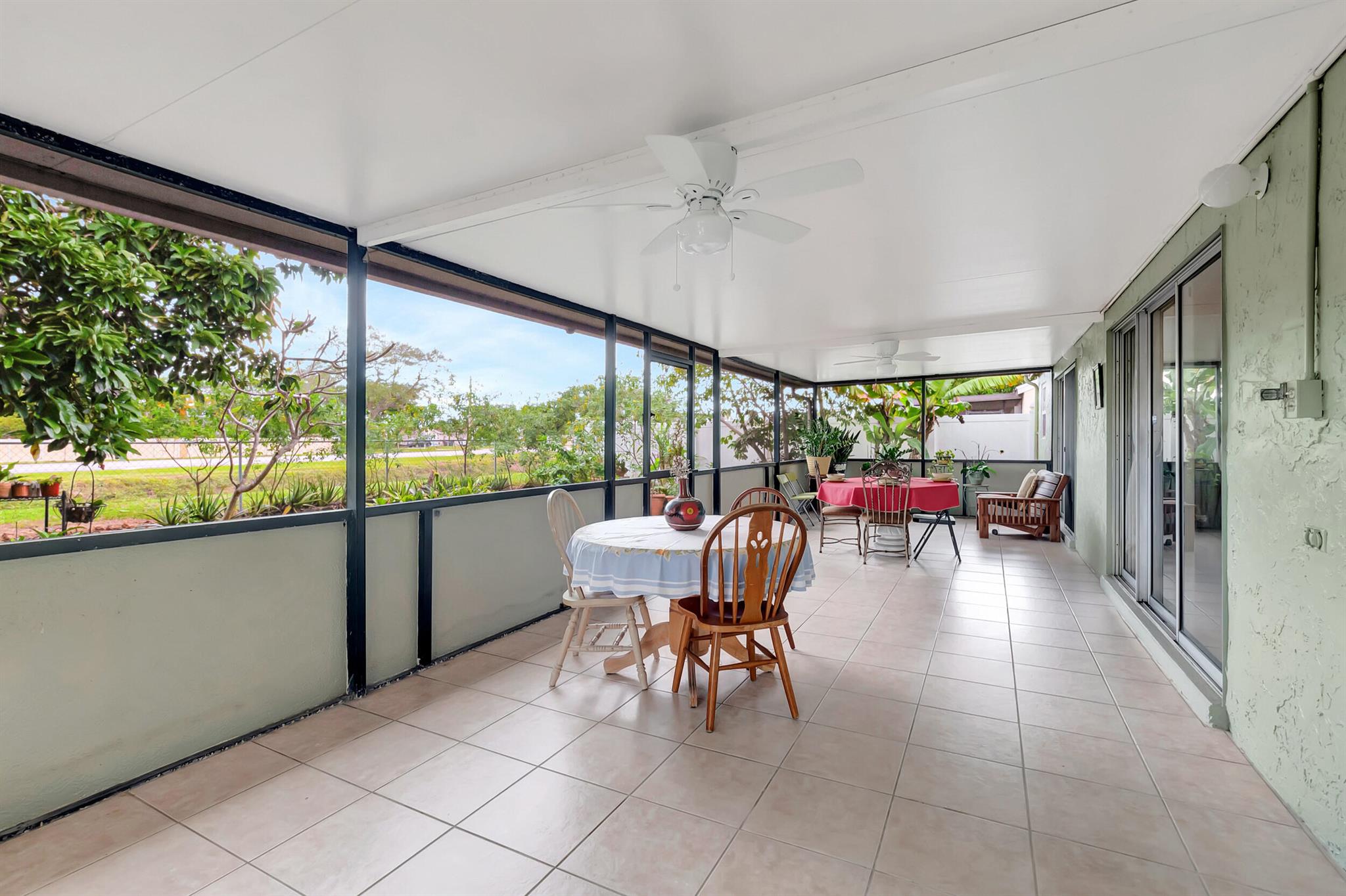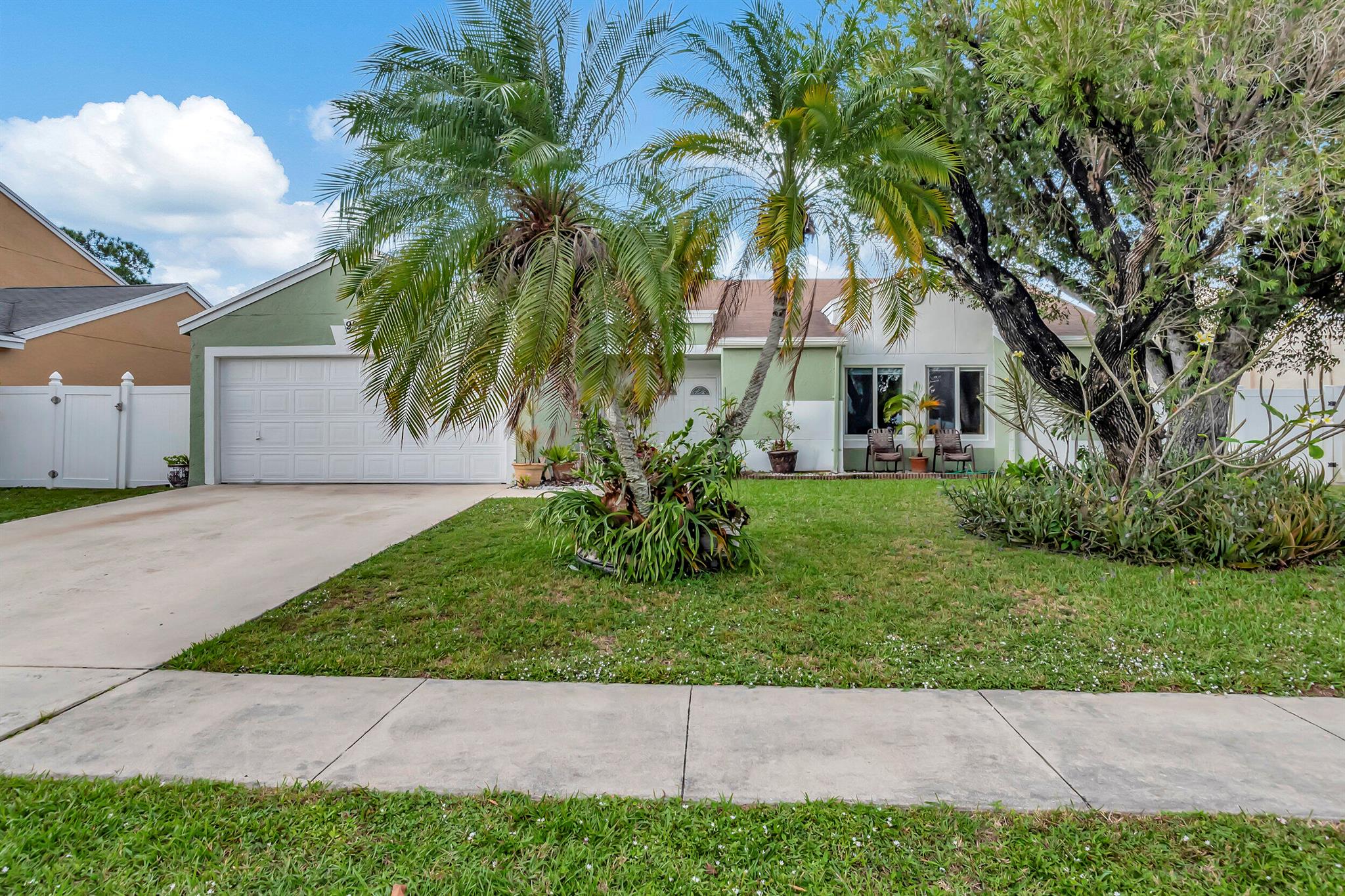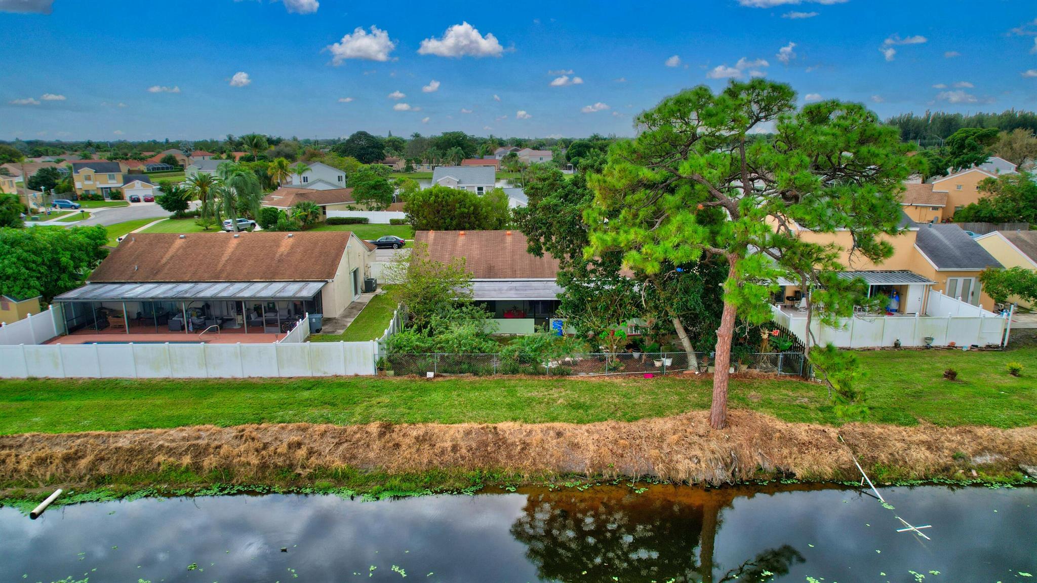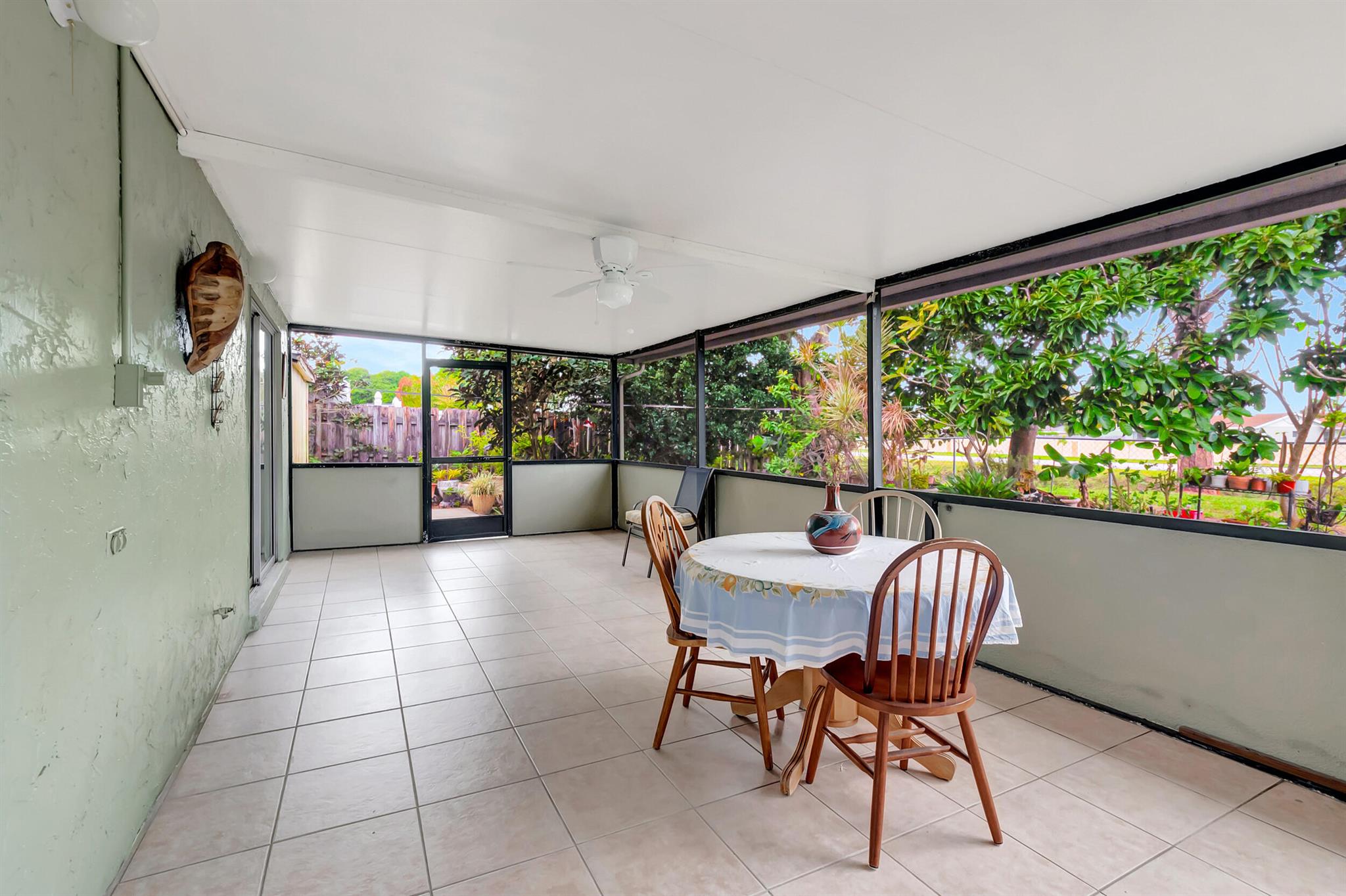 One level immaculate Home! Tile wall to wall...no carpets here! Roof installed new in 2013, now only 10 years old. New AC unit installed July 2023. 2 front bedroom windows are impact. Bedrooms are a large size and screened in patio is huge @ over 500sq ft! with 2 new ceiling fans. Fruit trees including banana, guanabana, soursop and an Avocado tree in back yard Boca Landings has low HOA fees which include Cable and fiber optic Wi-Fi. The community area has an Olympic pool and kiddie pool, tot lot, basketball Raquet ball, pickle ball and tennis all lit for night play! There are streetlights and sidewalks throughout the entire neighborhood for safety in biking and walking. Walk to shopping center. Boca Raton Schools! Roving security guard.
