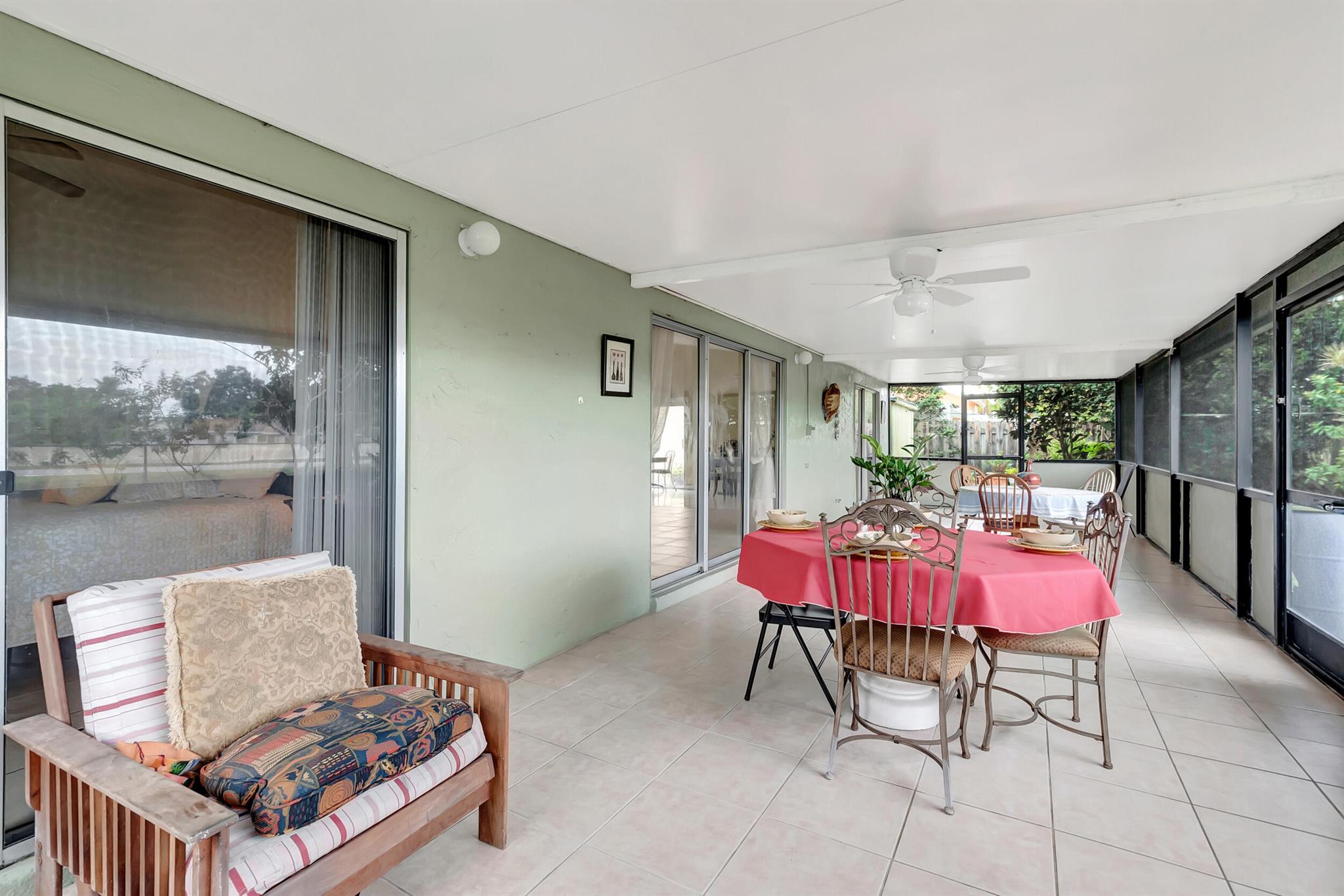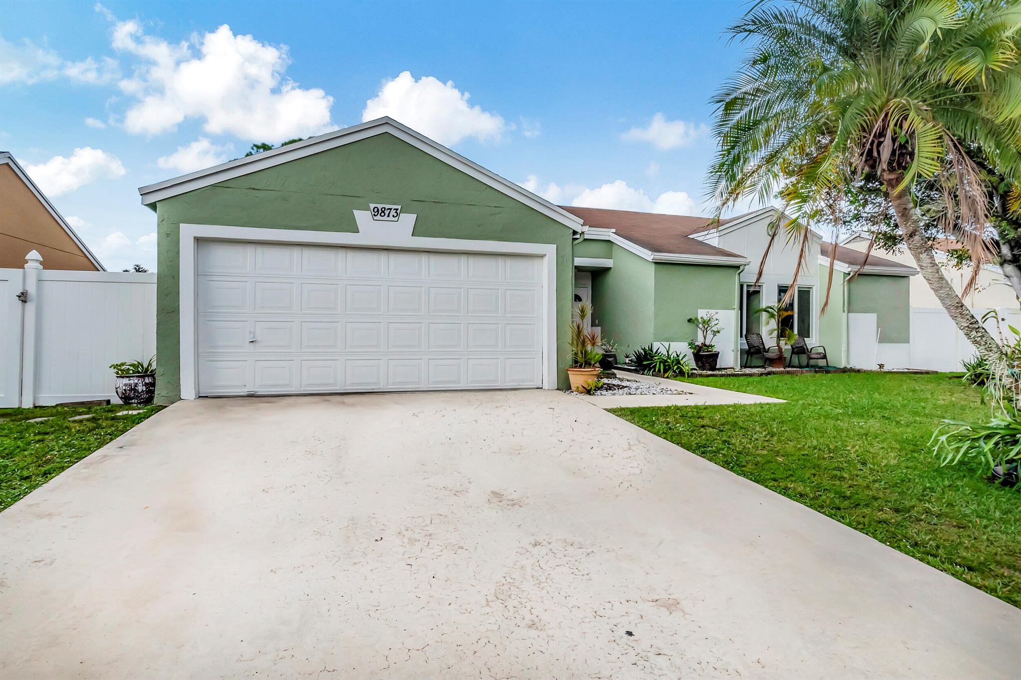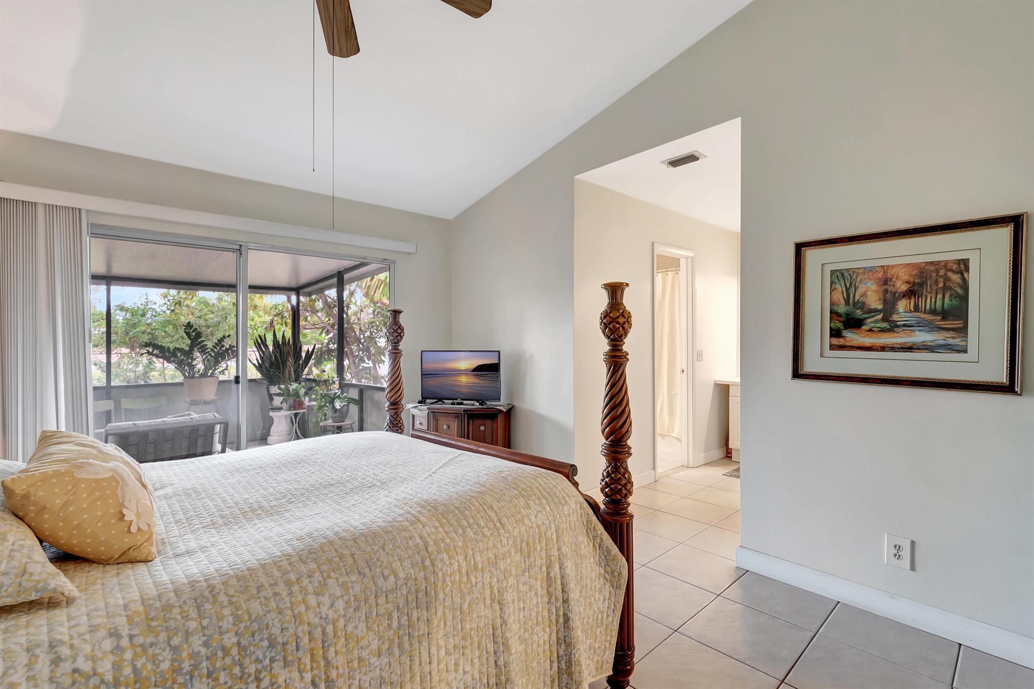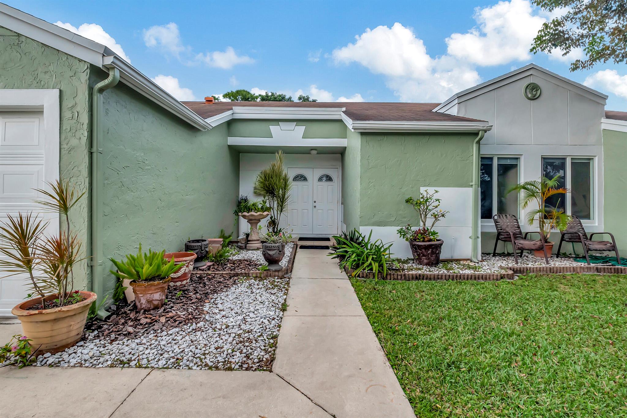 One level immaculate Home! Tile wall to wall...no carpets here! Roof installed new in 2013, now only 10 years old. New AC unit installed July 2023. 2 front bedroom windows are impact. Bedrooms are a large size and screened in patio is huge @ over 500sq ft! with 2 new ceiling fans. Fruit trees including banana, guanabana, soursop and an Avocado tree in back yard Boca Landings has low HOA fees which include Cable and fiber optic Wi-Fi. The community area has an Olympic pool and kiddie pool, tot lot, basketball Raquet ball, pickle ball and tennis all lit for night play! There are streetlights and sidewalks throughout the entire neighborhood for safety in biking and walking. Walk to shopping center. Boca Raton Schools! Roving security guard.