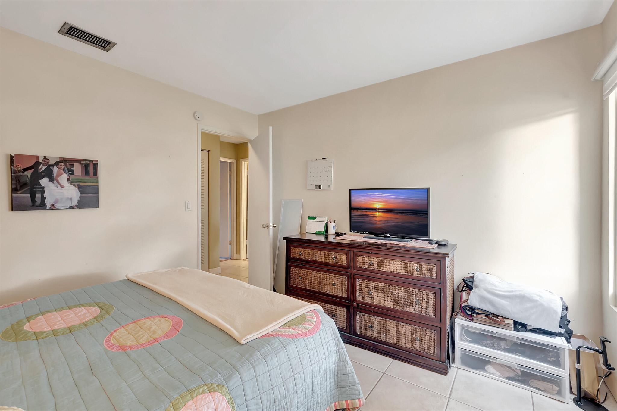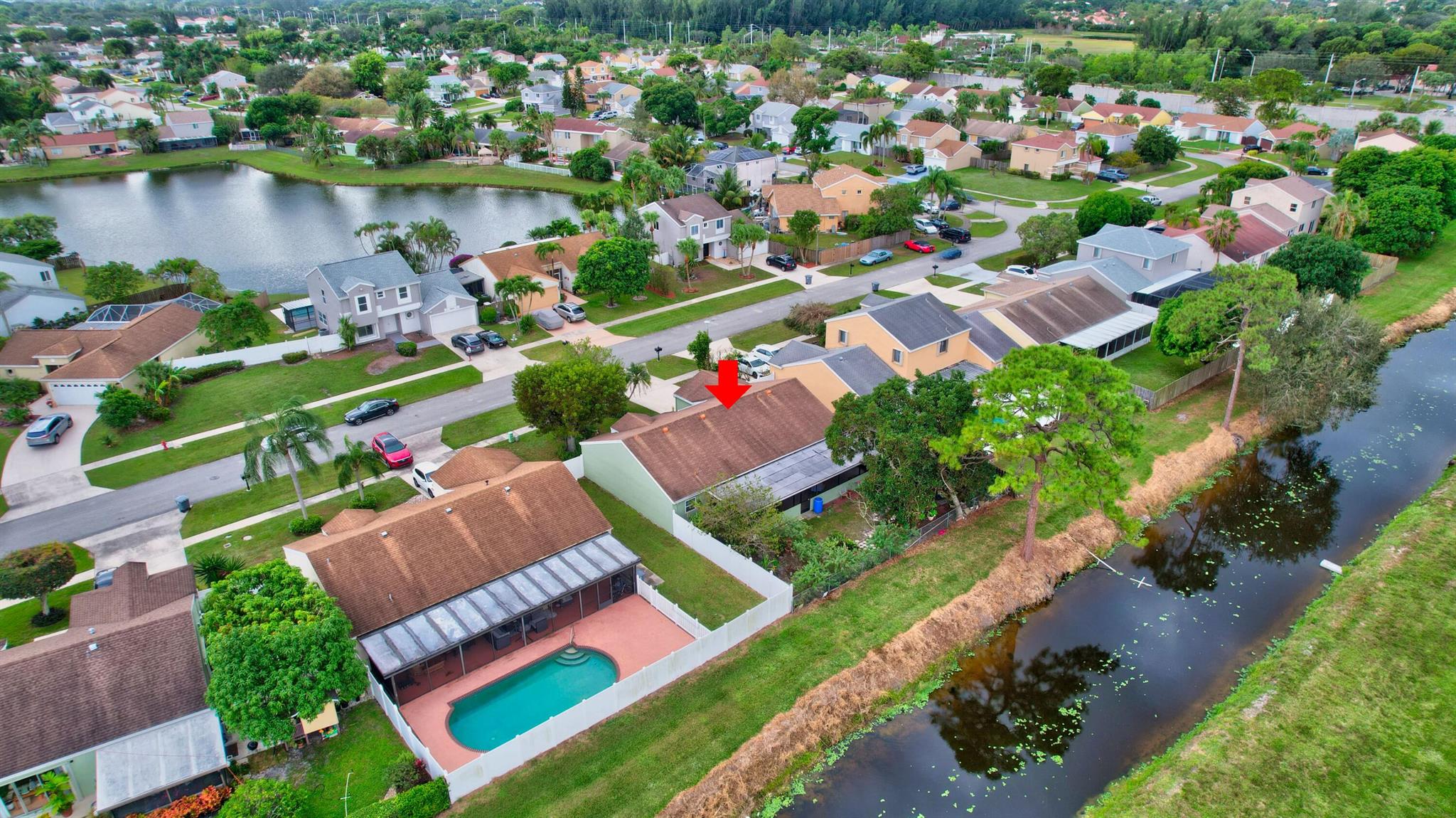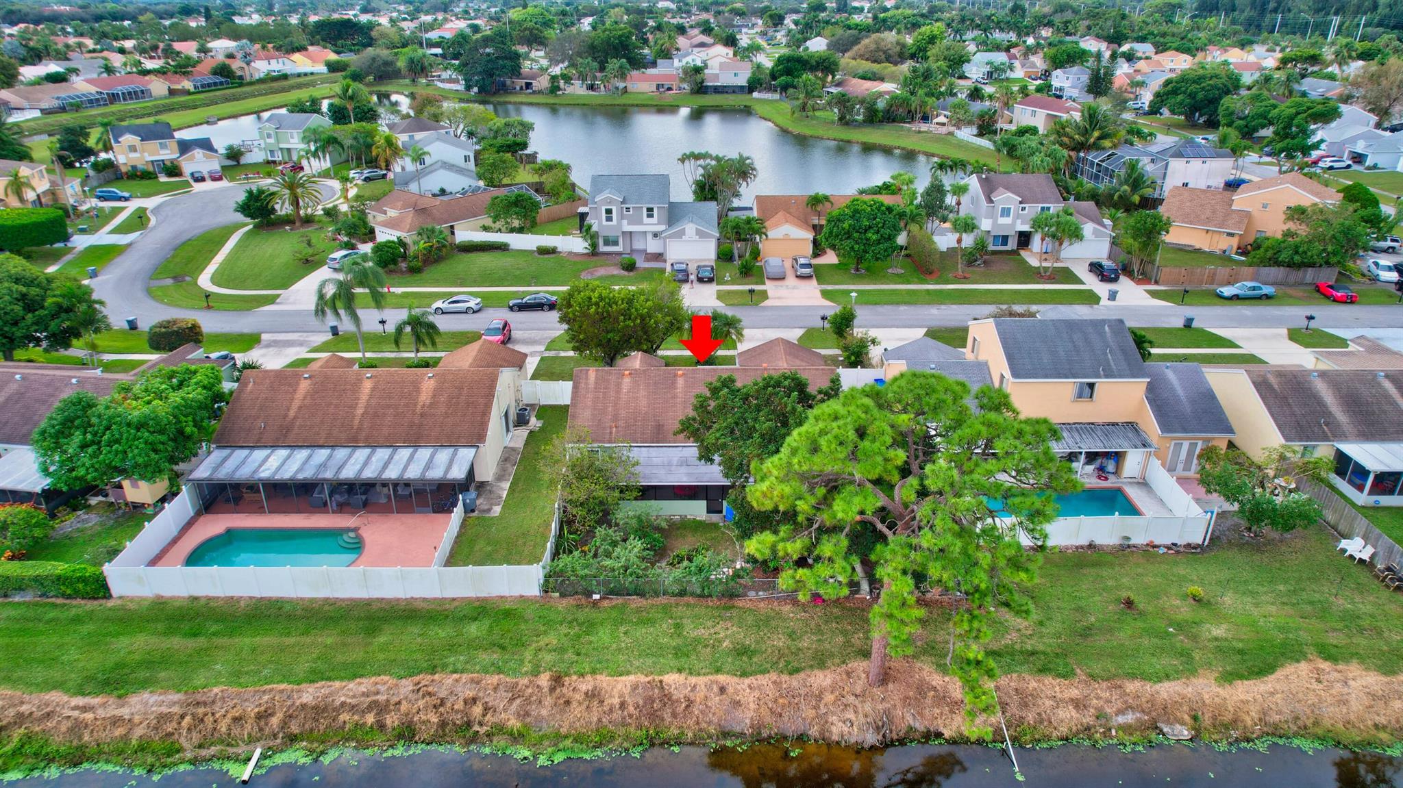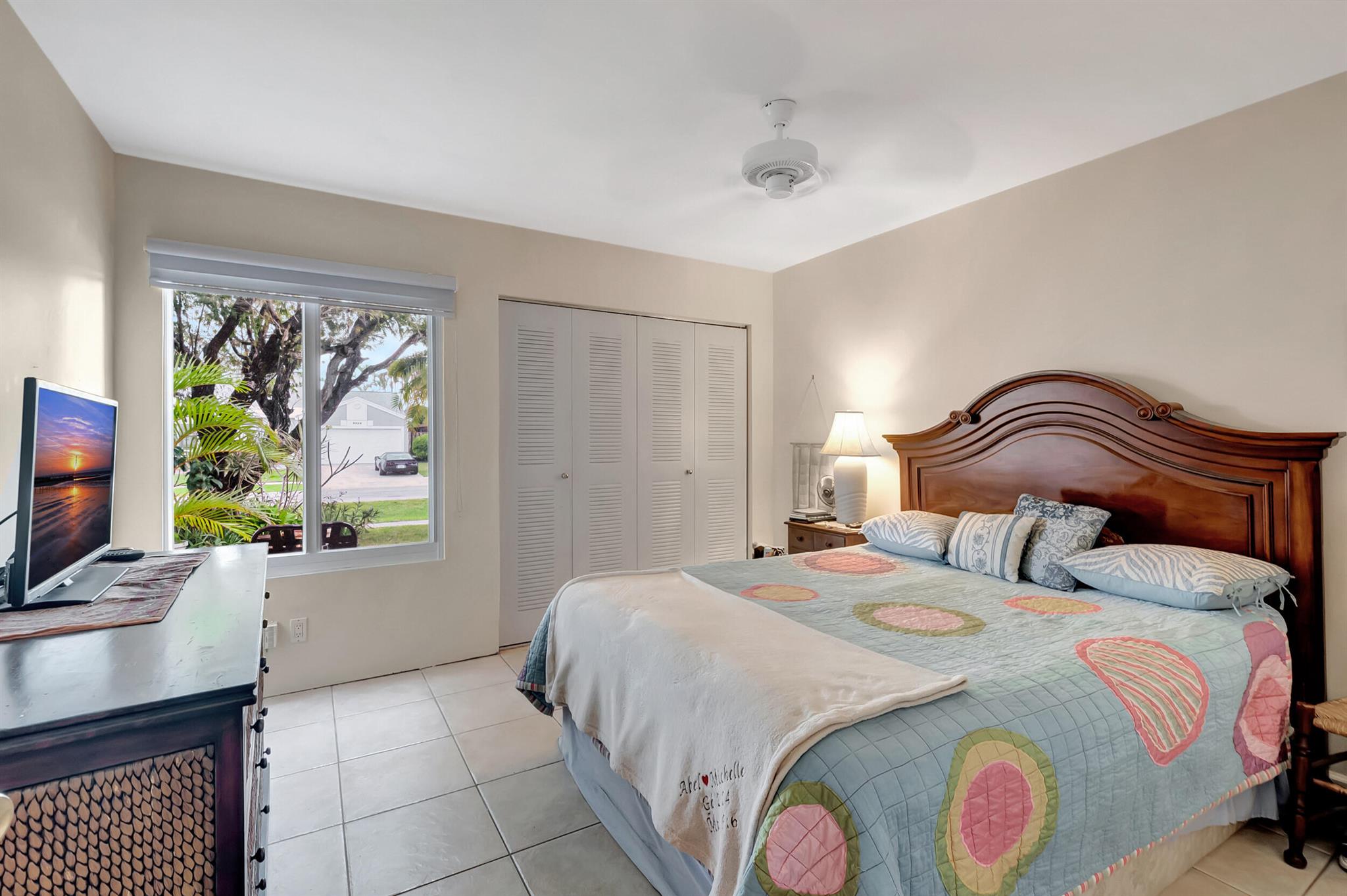 One level immaculate Home! Tile wall to wall...no carpets here! Roof installed new in 2013, now only 10 years old. New AC unit installed July 2023. 2 front bedroom windows are impact. Bedrooms are a large size and screened in patio is huge @ over 500sq ft! with 2 new ceiling fans. Fruit trees including banana, guanabana, soursop and an Avocado tree in back yard Boca Landings has low HOA fees which include Cable and fiber optic Wi-Fi. The community area has an Olympic pool and kiddie pool, tot lot, basketball Raquet ball, pickle ball and tennis all lit for night play! There are streetlights and sidewalks throughout the entire neighborhood for safety in biking and walking. Walk to shopping center. Boca Raton Schools! Roving security guard.