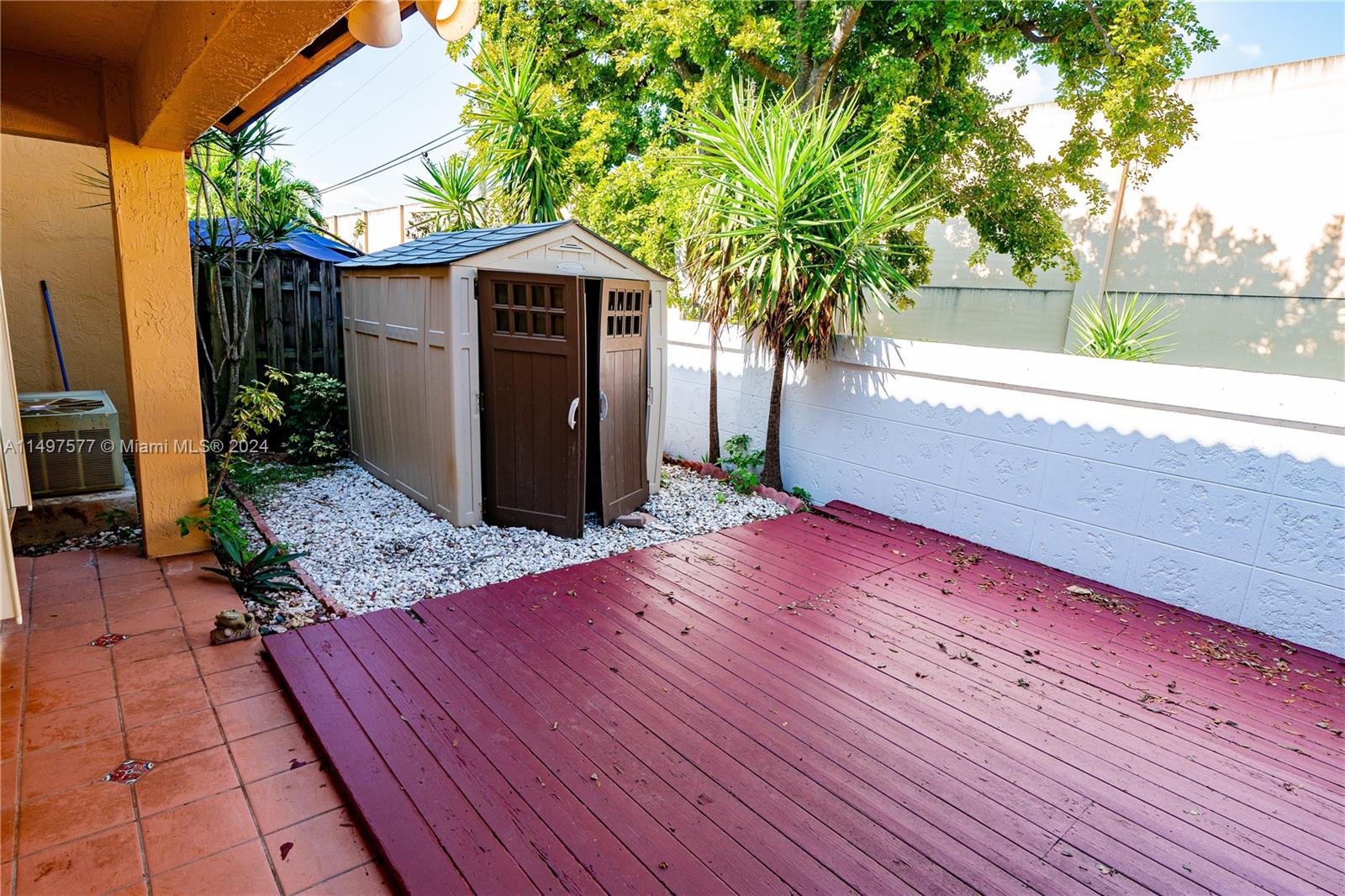 Wow... what a great home to leave! Located in the desirable gated community of Poinciana Parc at Shenandoah Community in Davie. A double-door entry leads to your spacious living room and formal dining room. Cozy breakfast area, private fenced back patio, tile throughout the first floor, and new laminate floors upstairs. One car garage in front, and extra storage room in the back of the property. Both bathrooms have been tastefully updated. Accordion Shutters throughout. Gated community, guardhouse 24 hours, heated swimming pool, and playground. Investors' dream property! You can rent right away, with no HOA approval, dogs are welcome! Close to highways 595, 75 & 869. Minutes to Sawgrass Mills Mall, Ikea, grocery stores & restaurants. Great A+schools!