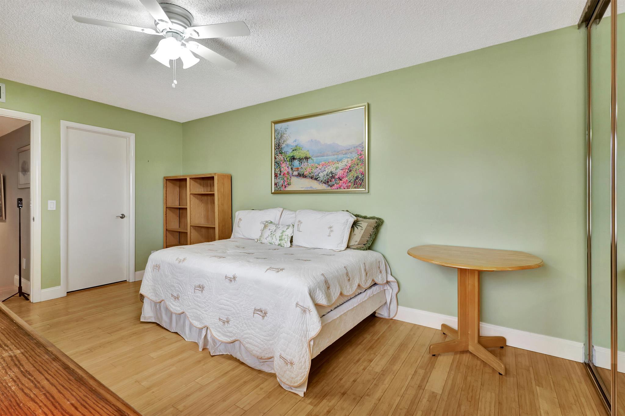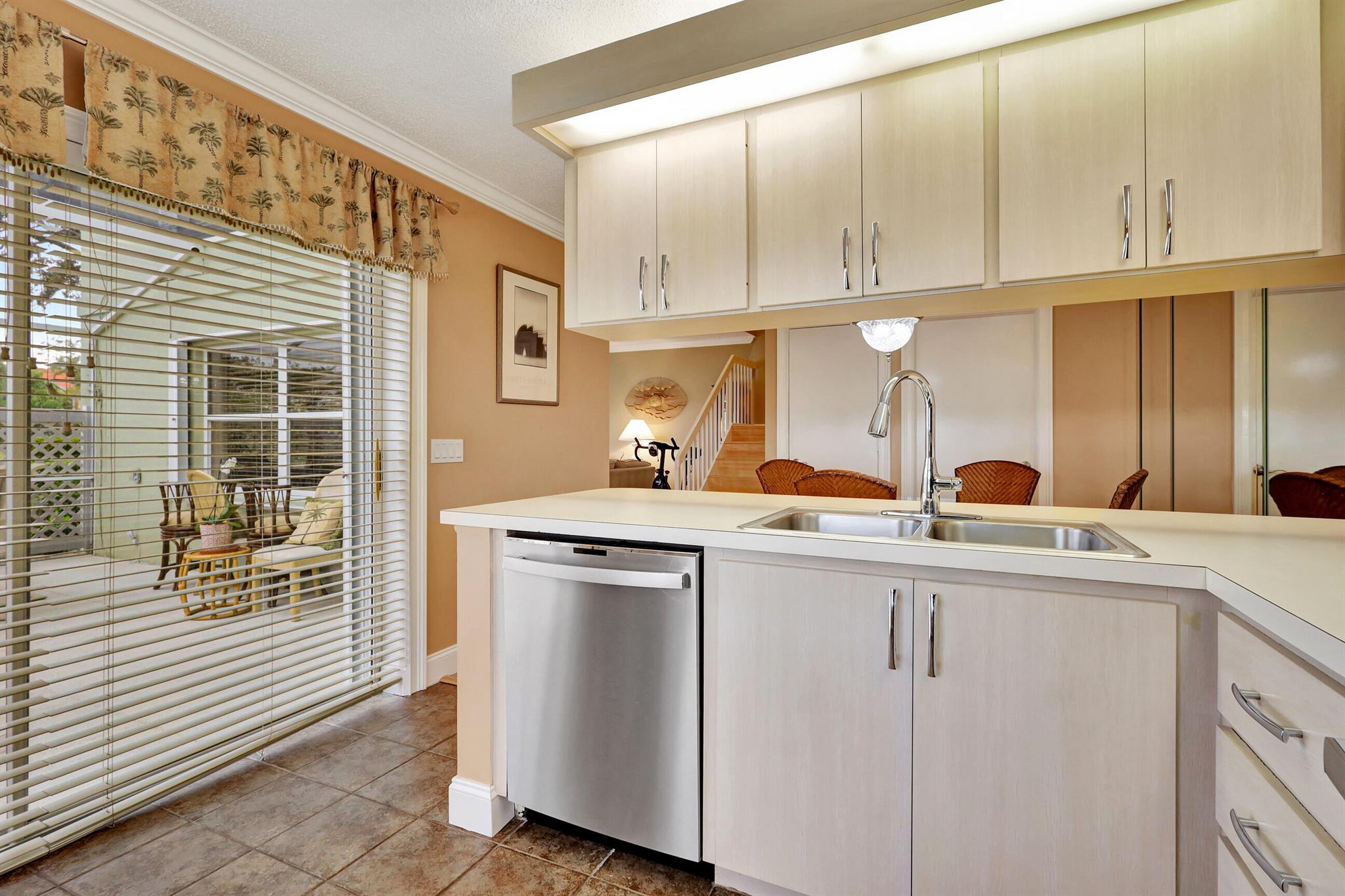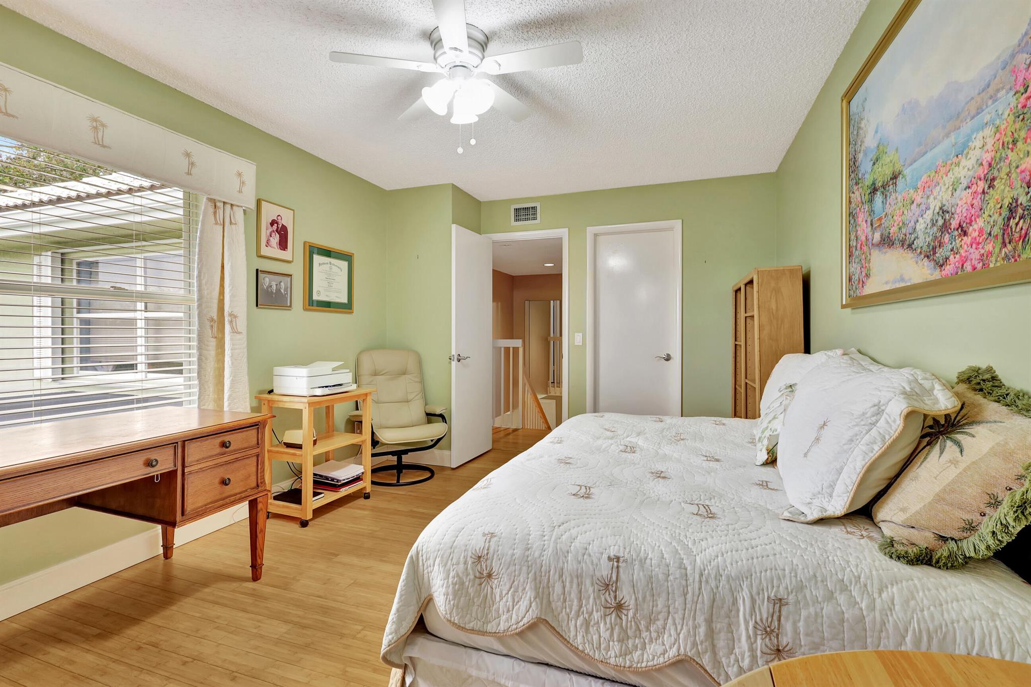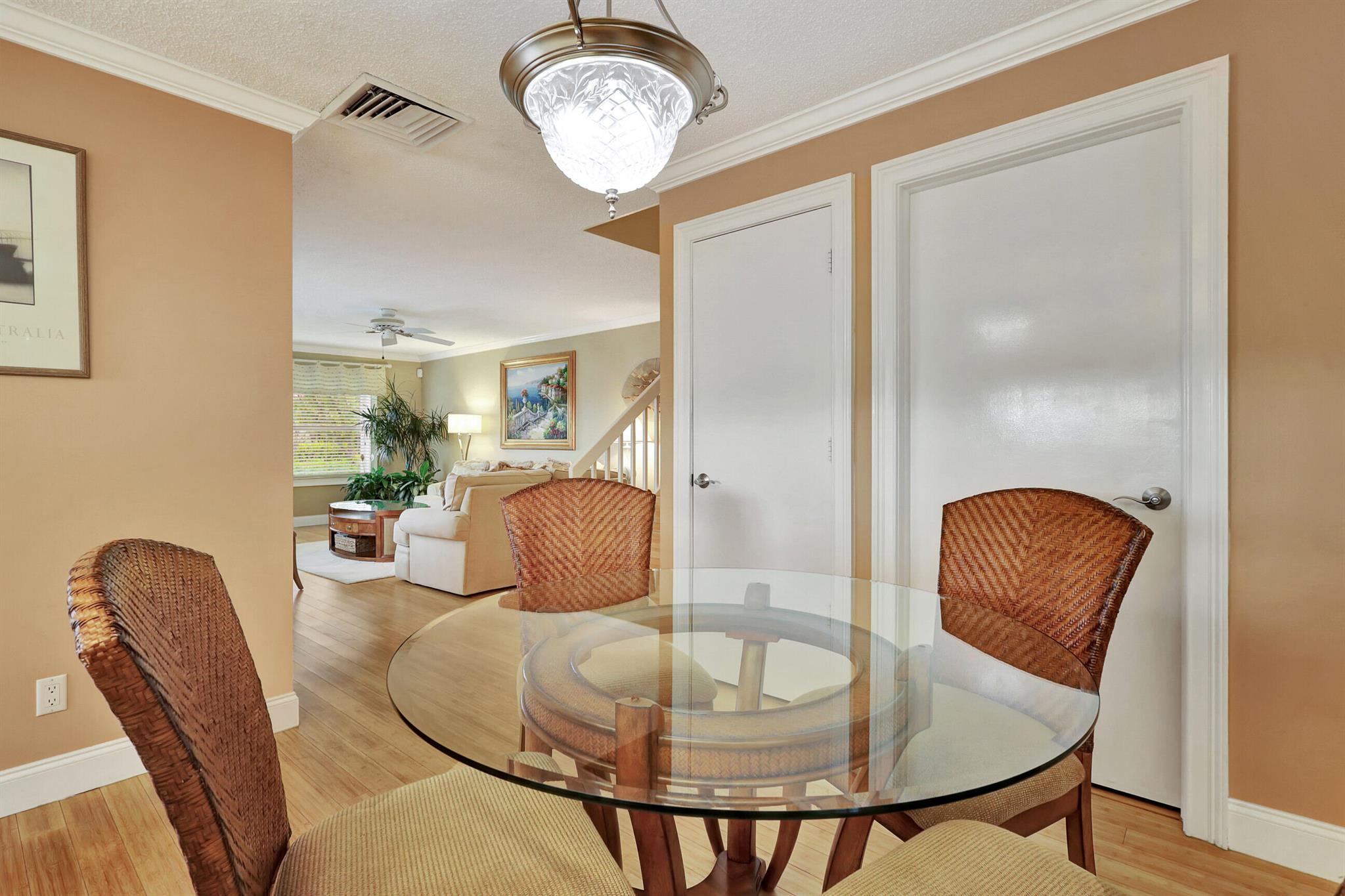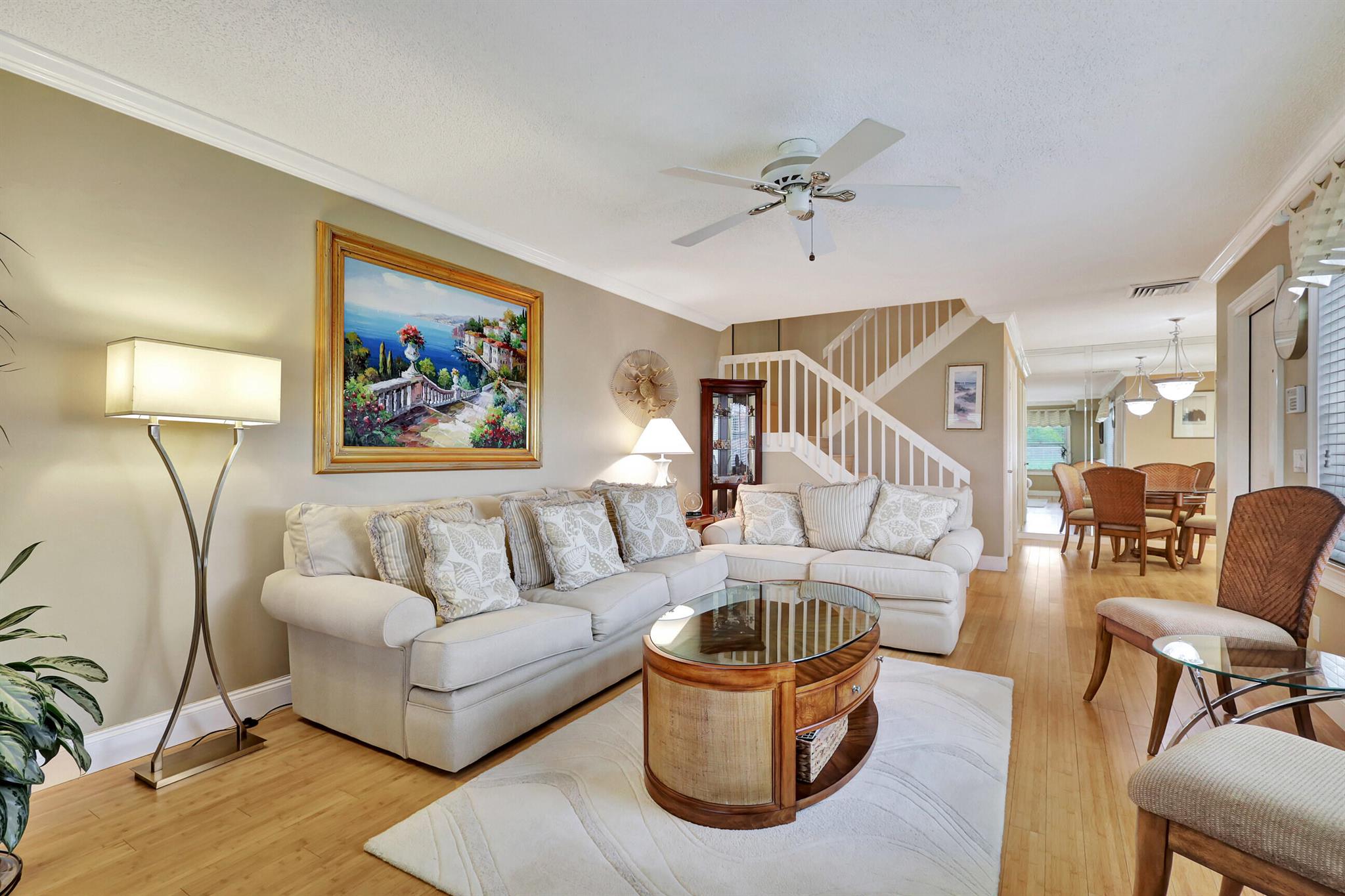 BEAUTIFUL PEACEFUL AND BRIGHT TOWNHOME WITH EXPANSIVE VIEWS OF THE LAKE. Updated throughout with wood flooring and crown molding. Tile in kitchen and bathrooms. NEW kitchen and laundry stainless steel appliances. NEW AIR CONDITIONER AND AIR HANDLER 12/2023. Complete white accordion hurricane shutters. Screened patio. Close and convenient to PBI Airport, downtown West Palm Beach, museums, Kravis Center for the Performing Arts, and The Beaches. Community features pool, tennis courts and dog park. HOA fees includes roof replacement and maintenance. exterior building insurance. water, trash