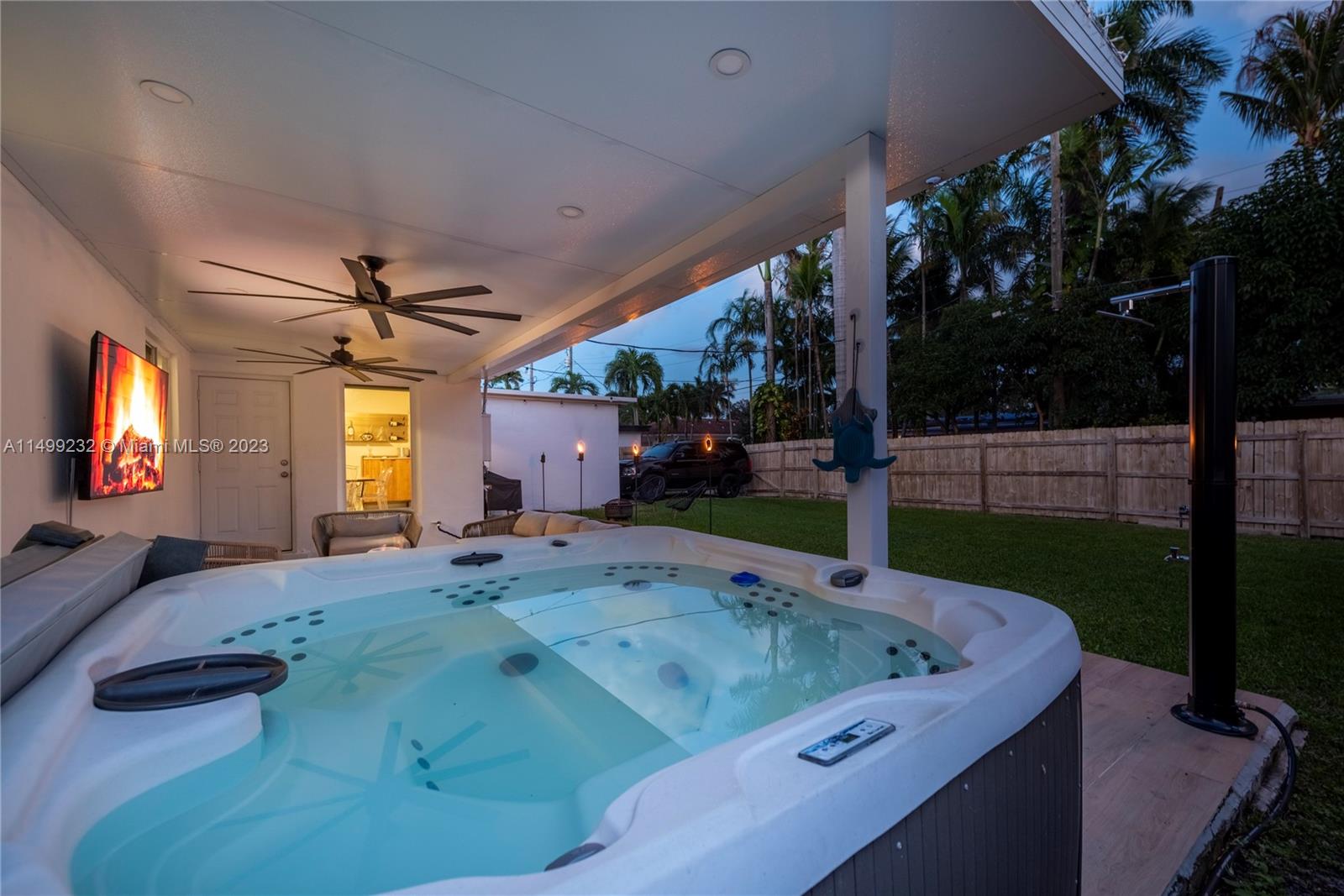 Beautiful home in one of Hollywood's most sought-after neighborhoods. Upon entering the home you will feel the open, spaciousness, full of natural light. Walking, biking, jogging, golfing, and boating are just a few of the highlights of living in this royal palm tree-studded community. The beach is close by, as well as parks, marinas. Golf-cart friendly streets. Minutes to downtown, restaurants bars lounges to choose from. Airports, major roadways, and shopping are very convenient. The 1 car garage is currently used as a gym. The garage door is intact to use solely as a garage/laundry/storage. All impact windows and doors. Roof 2021. The wow factor is in the backyard. Relax in the Jacuzzi under the newly built pergola with new fans and LED lights. Too much to mention. Come see it today!