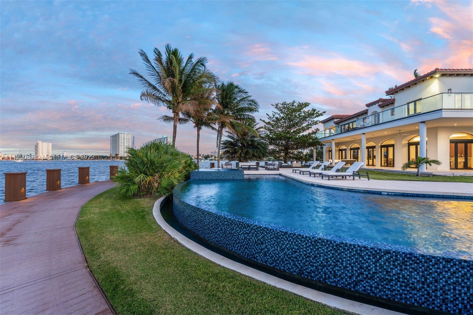 The best situated property in all of Hollywood. Embrace unparalleled luxury in this contemporary waterfront haven, situated on an expansive 48,650 sq ft point lot spanning over an acre. Revel in the stunning 430 ft of water frontage with spectacular lake views. This 6 bed and 6+2 bathrooms estate boasts an array of exquisite features. Honed limestone & American Walnut flooring grace the interior, while a curved infinity-edge pool, swim-up bar, hot tub, and full dock with boat & jet ski lifts enhance the outdoor paradise. A smart house system & art lighting seamlessly blend technology & elegance. Features include an electric driveway gate, lit tennis court facing North-South, & gazebo with an outdoor kitchen & gas fire pit. Live lavishly in this meticulously designed retreat.