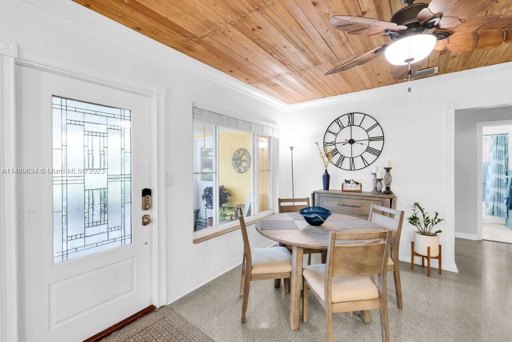 Come enjoy this great home. Contemporary yet retro. Open-concept kitchen ideal for gatherings. Beautiful terrazzo floors in the main part of the house and the lovely cedar wood ceilings in the living room. This is a 2/2 with a huge Florida room currently being used as a second living room,. This home is bright and open. The backyard is perfect for dogs and kids with its fenced yard. A/C 2019, Impact Window throughout the house (except for the Florida Room). Close to shopping, beach and I-95.0. NO HOA