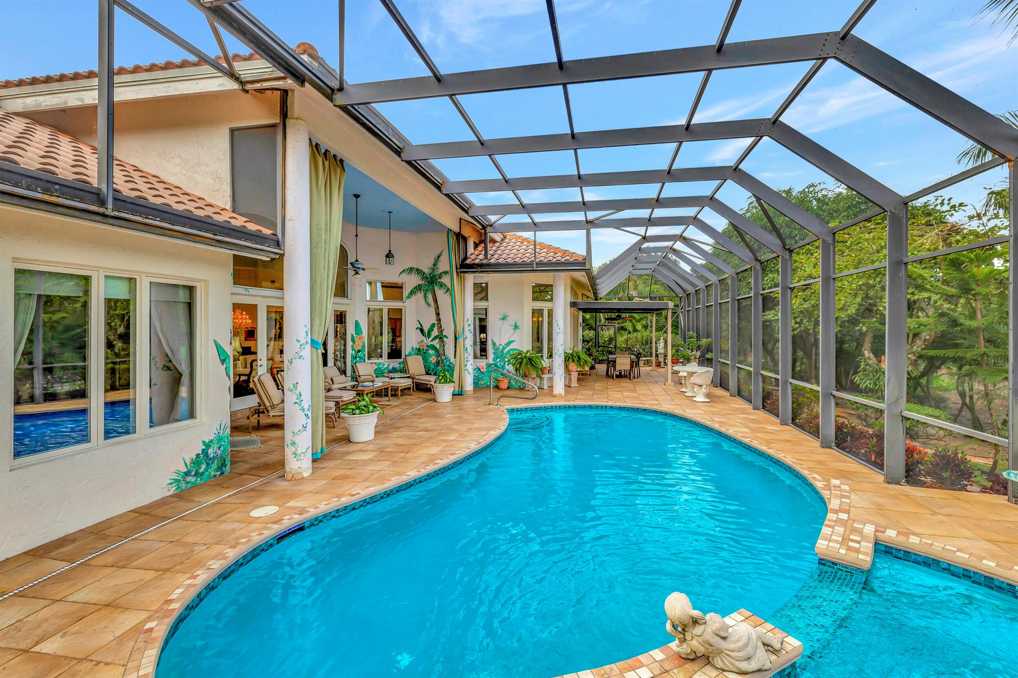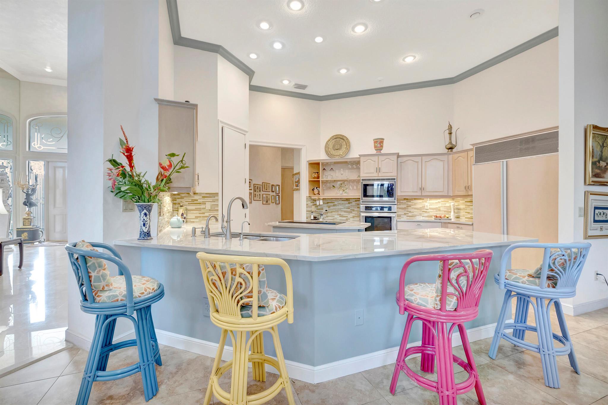 Stonebridge is a mandatory membership community. Here is your Stonebridge opportunity to make the spacious home yours! Over 3300 sq ft and 3 bedrooms plus a decked out office with lots of built-ins. A stately entry with a circular driveway, this home welcomes you with lots of high ceilings, a split bedroom floor plan, and no interior steps for ease of mobility.The primary bedroom is truly oversized and the bathroom has comfort height dual vanities with lots of light and space to savor. If you enjoy entertaining, you will love the 3 sinks in the updated kitchen.. complete with a work island and counter height bar for happy hour or coffee time. The heated pool was recently updated and has a salt water system and newer electric heater.