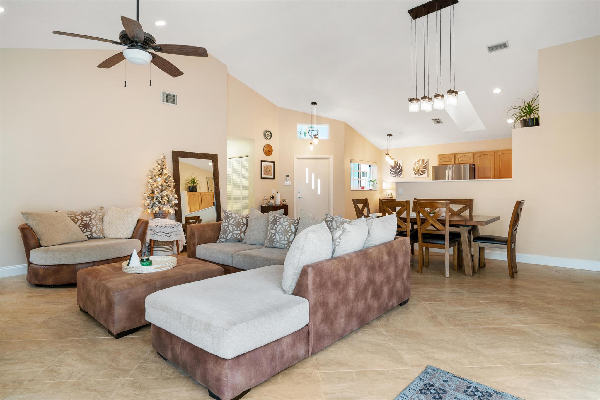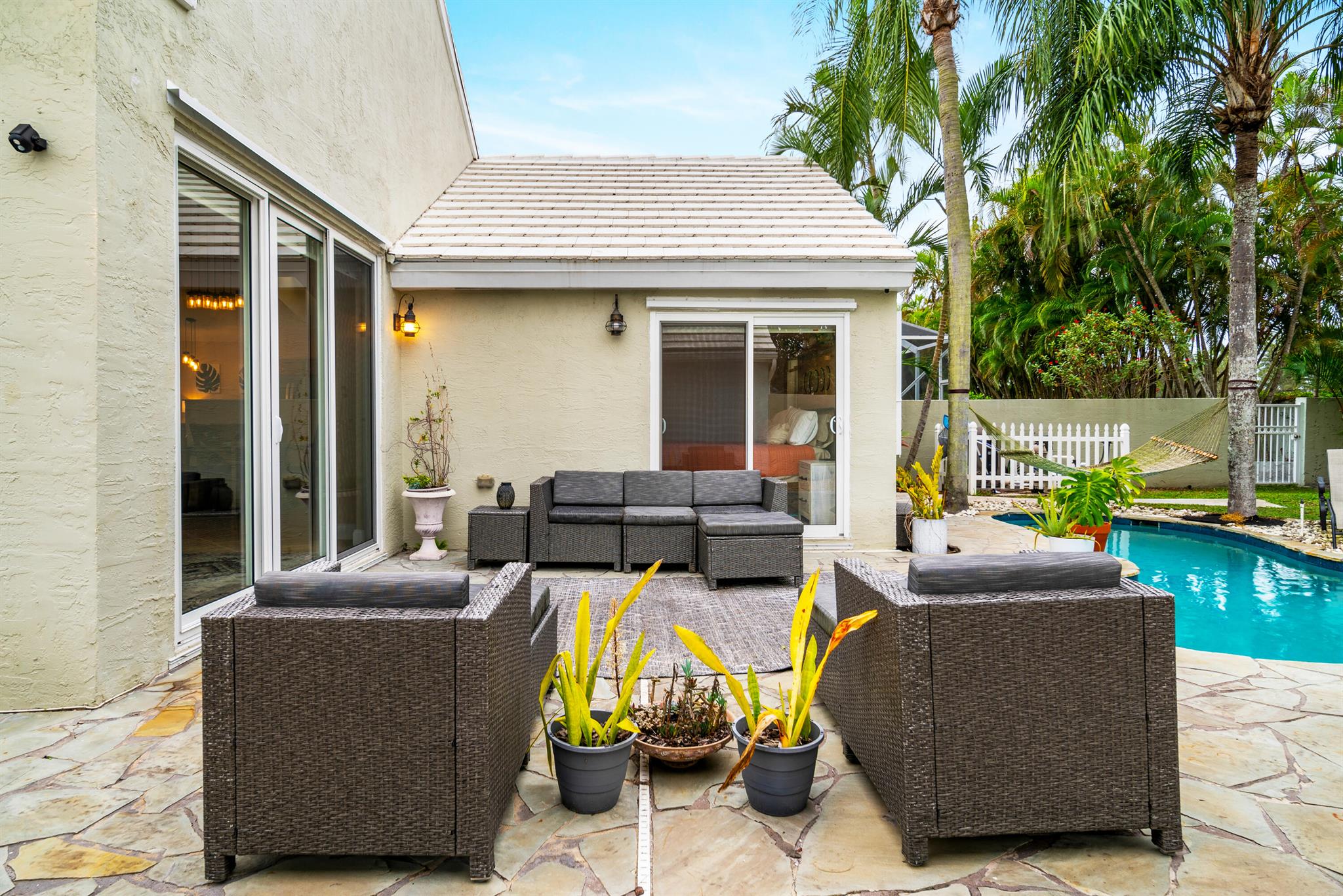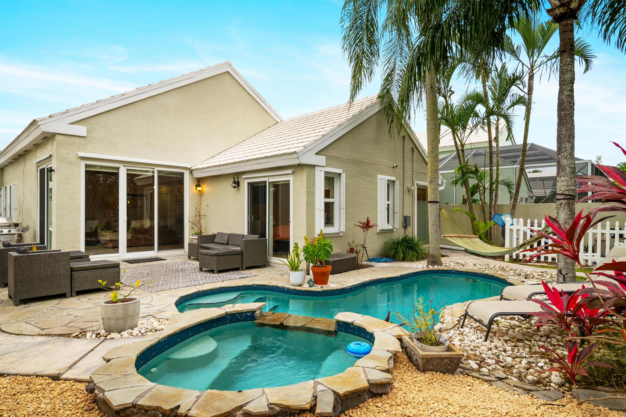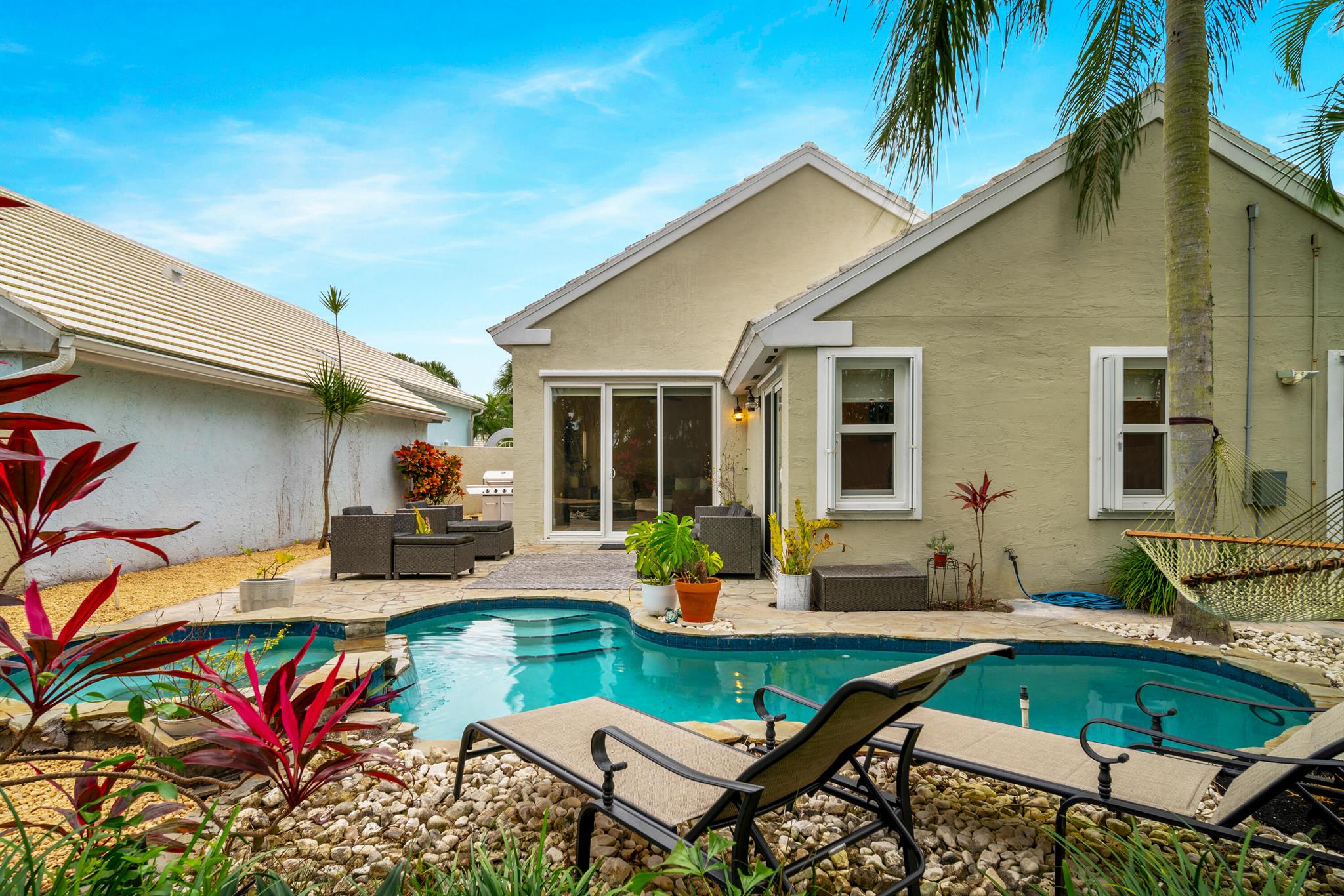 NEW Hurricane Impact Windows & Doors for Entire Home! Plus Open Concept Floor Plan and Tropical Backyard Oasis! Embrace luxury living in Breakers West, one of Palm Beach County's premier country club communities. This move-in ready 3 bedroom, 2 bathroom home spans 1,471 sq ft and captivates with its breathtaking views of the tropical backyard and natural light illuminating the living area.Step through the doors to a world of elegance, greeted by high ceilings and an open floor plan that extends to a large patio overlooking a glittering pool powered by a brand new pool pump and surrounded by lush landscaping. Numerous upgrades ensure a modern living experience. The kitchen features new stainless steel appliances and seamlessly connects to the dining area and living roo