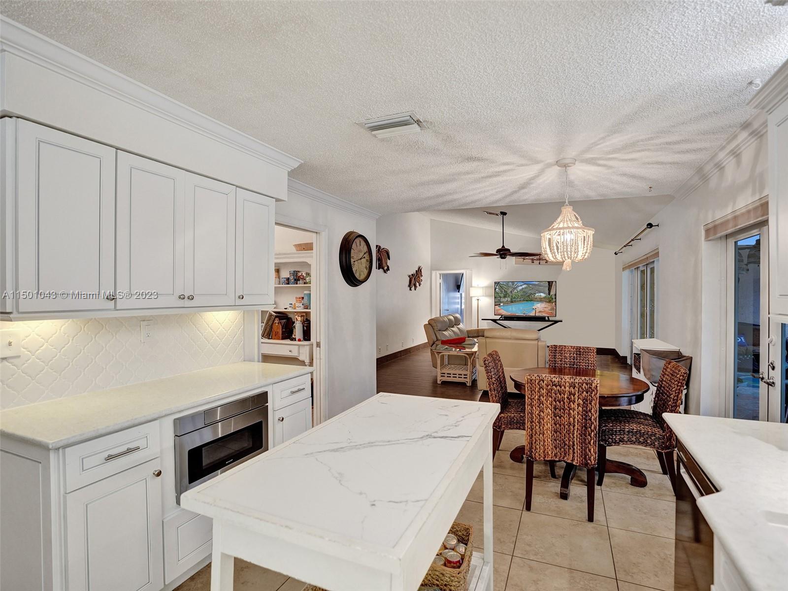 Discover this 4-bed, 2-bath turnkey home on a spacious corner lot, featuring hurricane-impact doors and windows. Opportunity to assume a VA loan at 3.125%. Includes a new A/C (2019), modern appliances, and Thomasville cabinets in the kitchen and bathrooms. Granite countertops and backsplash enhance the kitchen, which leads to a screened pool and summer kitchen. Enjoy a fenced yard with fruit trees and a practical laundry room. The extended lanai offers outdoor shower potential. Benefit from no HOA fees, proximity to Ramblewood Elementary, and local shops and restaurants.