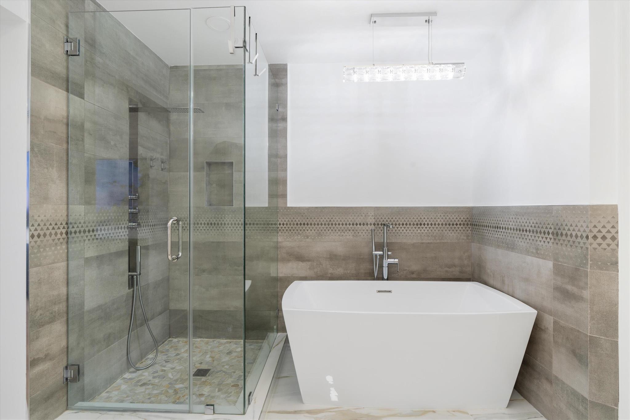 Experience luxury in this gorgeous 2 story masterpiece within the gated Broken Sound Country Club - Membership is mandatory. This 5-bedroom, 3.5 bath home has a contemporary design with modern updates and premium finishes.Totally renovated from top to bottom inside and out. Ground floor includes an ensuite bedroom, 5th bed/den and half bath. 2nd floor includes the primary suite, 2 bedrooms with jack & jill bath and loft space. Featuring a new roof,(2023) water heater, AC, and complete impact windows and doors it's impeccably designed with a European-style kitchen, smart home features, exquisite bathrooms, and all new rectified porcelain tiles throughout. The private backyard oasis has an expansive living area with plenty of room to soak up the Florida sun and an awning if you prefer shade