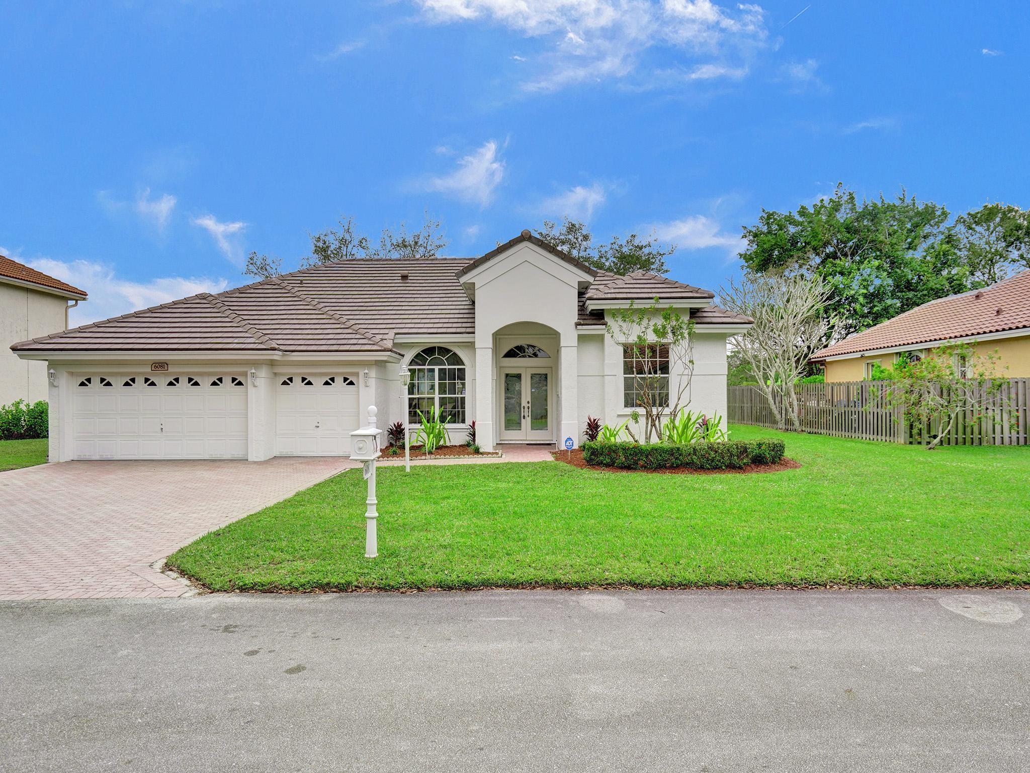 Brand New tile Roof recently completed in October 2023. Dramatic foyer entry with volume ceilings, formal living and dining room, big eat-in kitchen and family room. Large layout with split plan featuring 3 Bedrooms 2 Baths and 3 car garage on oversized 91 foot wide lot that backs to SW Ranches. Similar interior to the 4 Bedroom 3 Bath model w 3 car garage. Just painted inside & out, new carpet in bedrooms, newer 2019 AC. Master Suite with walk-in closet and generous sized bath, Bedrooms 2 & 3 both good sized. Big living areas, covered & screened patio, huge yard with plenty of room for a pool & playground. Great gated community with low HOA dues, all lots are a minimum of 90 feet wide. Great schools, A rated elementary school on the corner, close to shopping and easy access to I-75.