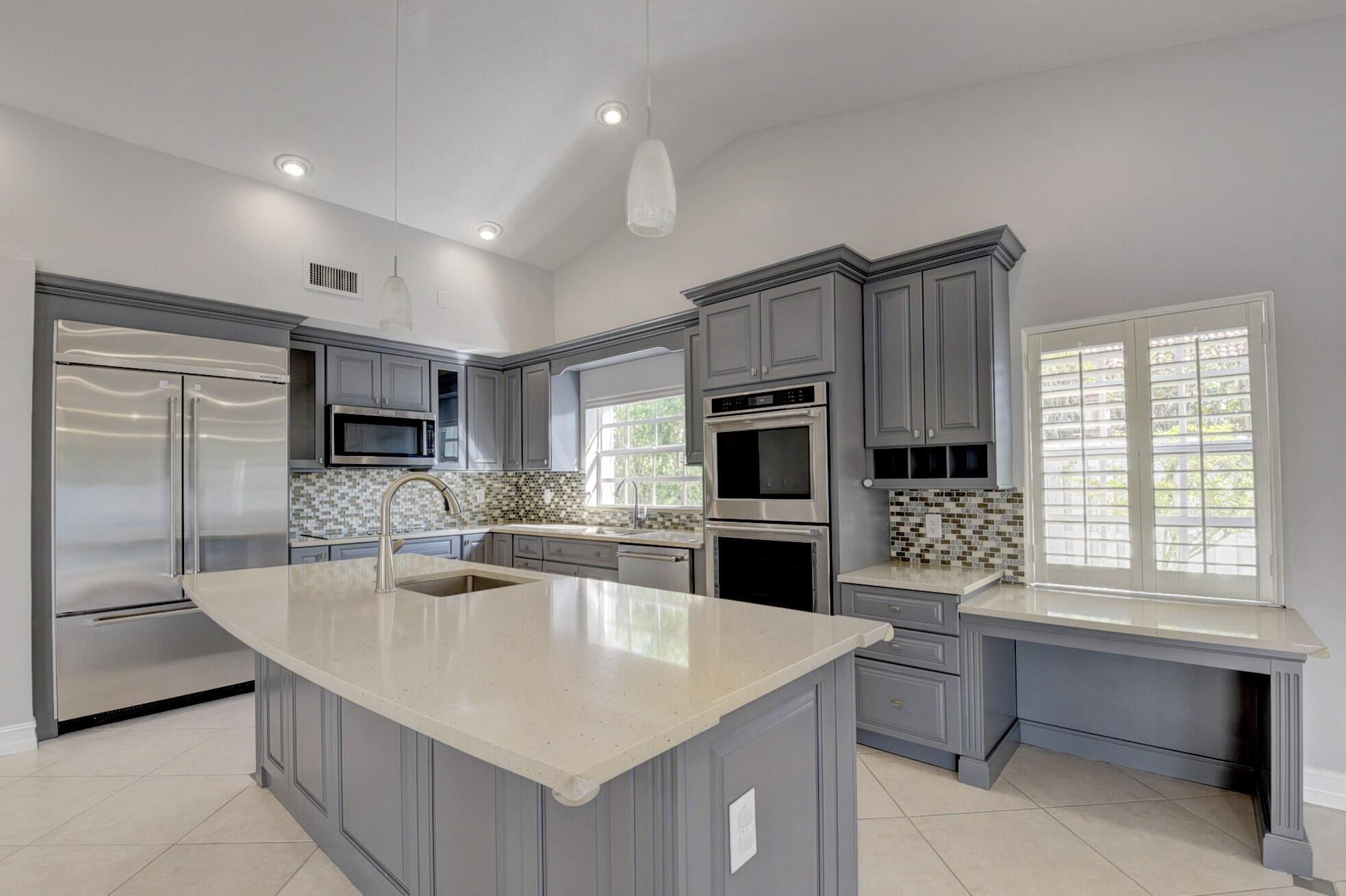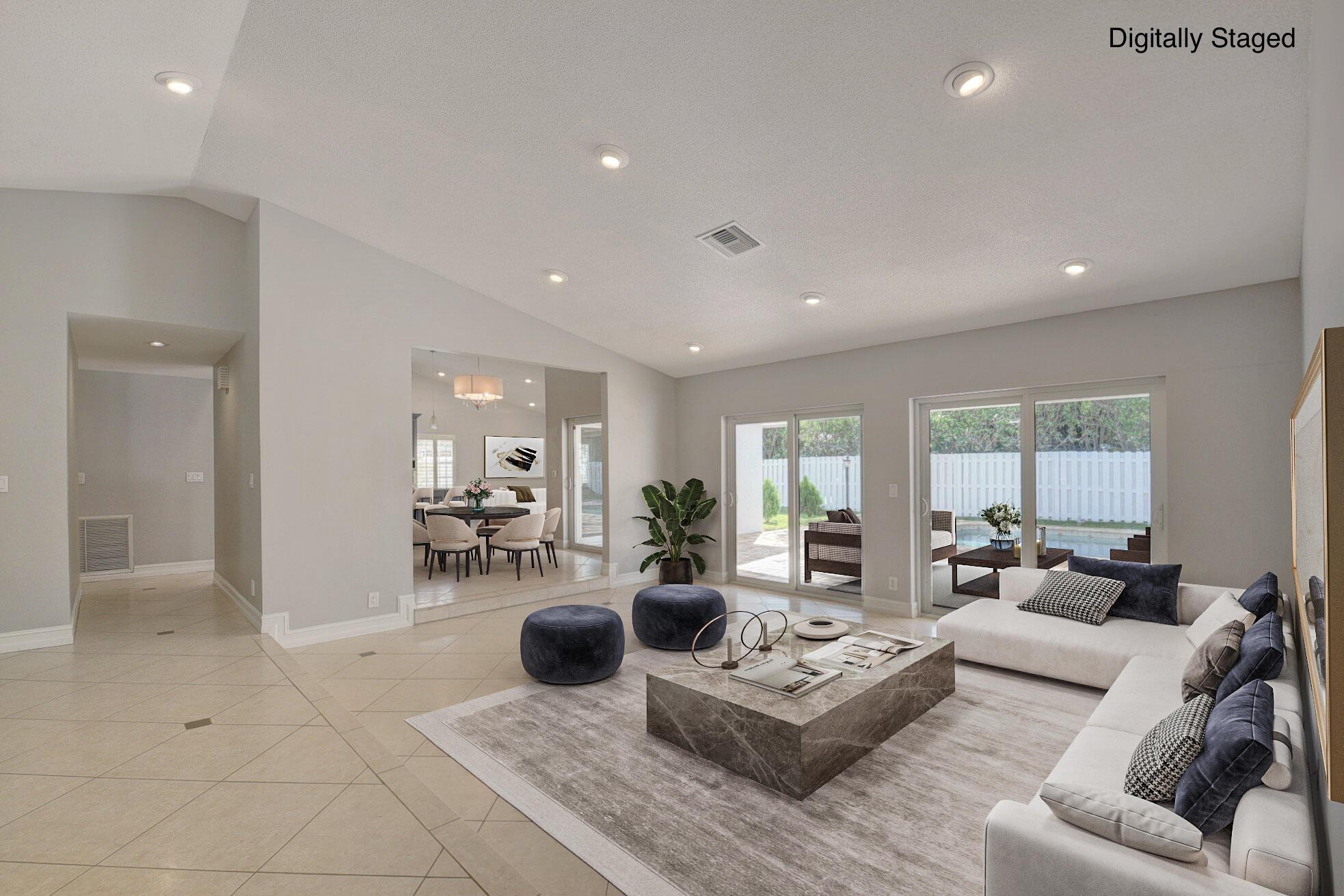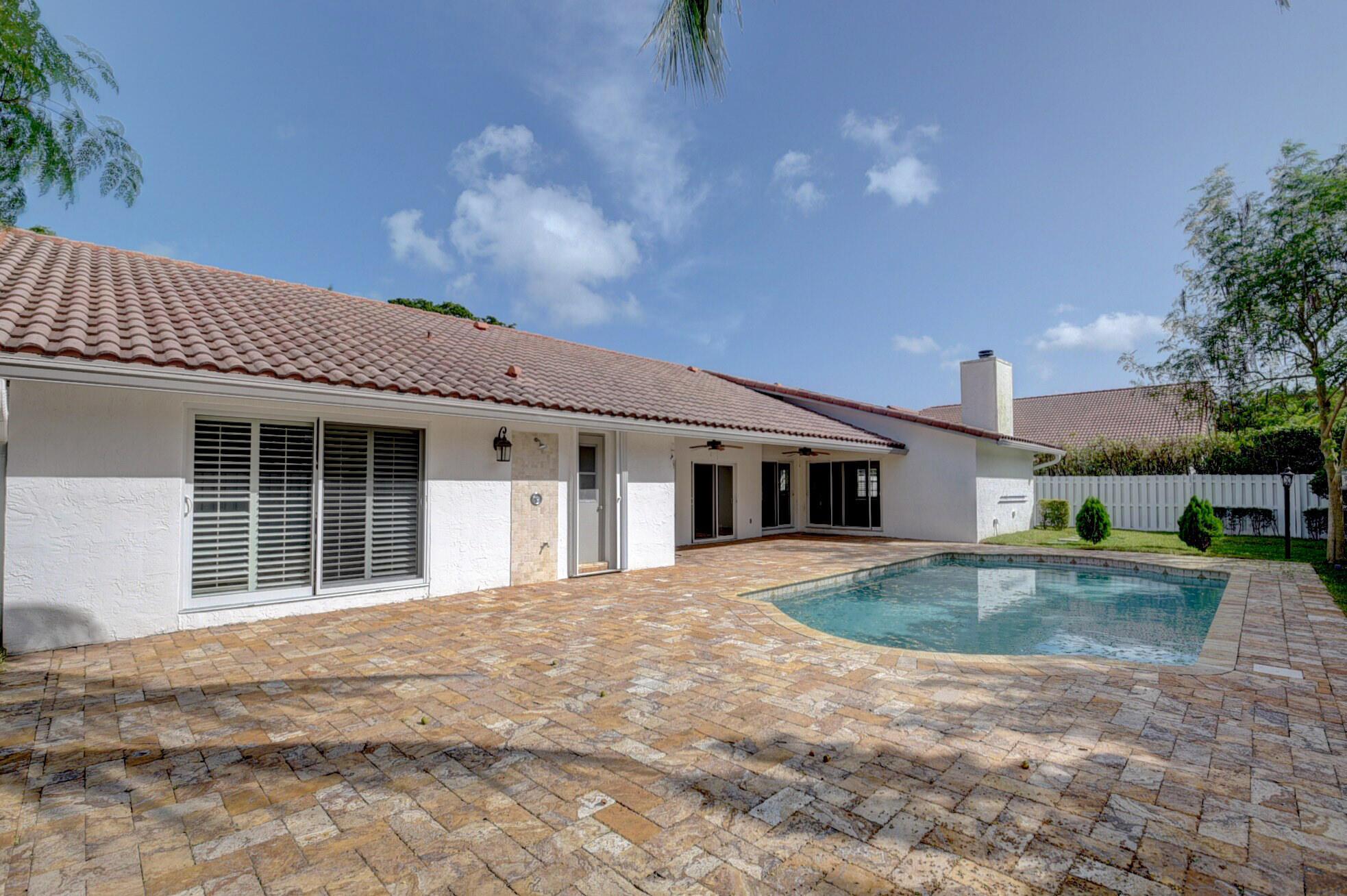 Elegant & updated 4-bedroom oasis in one of Boca Raton's most desirable neighborhoods! This single-story beauty with a circular driveway, boasts volume ceilings, a custom library with a wood-burning fireplace, a chef's kitchen featuring double ovens & a warming drawer, wine refrigerator, and a convenient snack bar and breakfast area. All bedrooms feature closet built-ins. Luxurious primary suite and bathroom features a soaking tub, frameless shower & accesses a private fenced-in pool with travertine tile & outdoor shower. Separate laundry room with front loading machines. Impact sliders & windows too! Beyond the property, New Floresta is a perfectly located neighborhood near Town Center Mall, dining, parks, FAU, 95 and the turnpike. This is an absolute must-see as your dream home awaits!