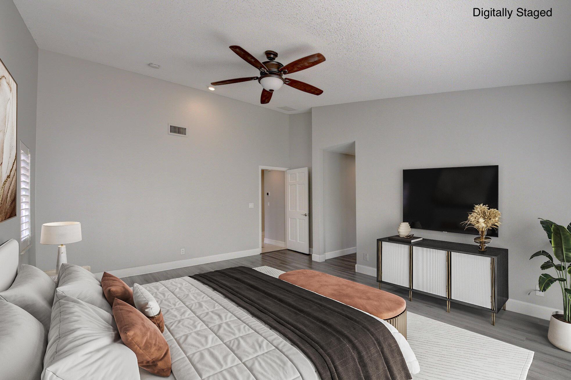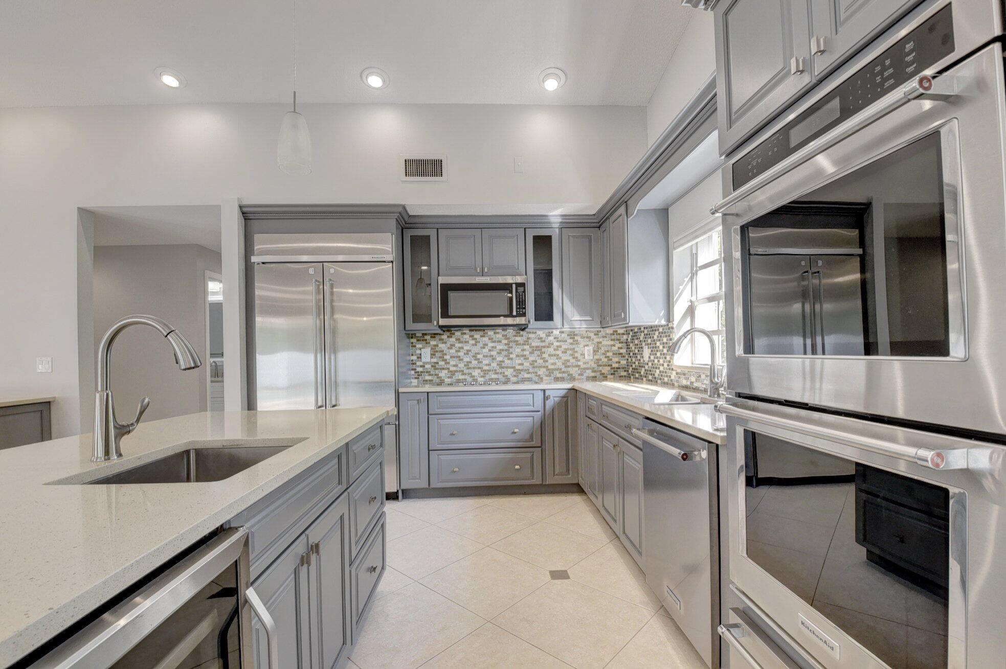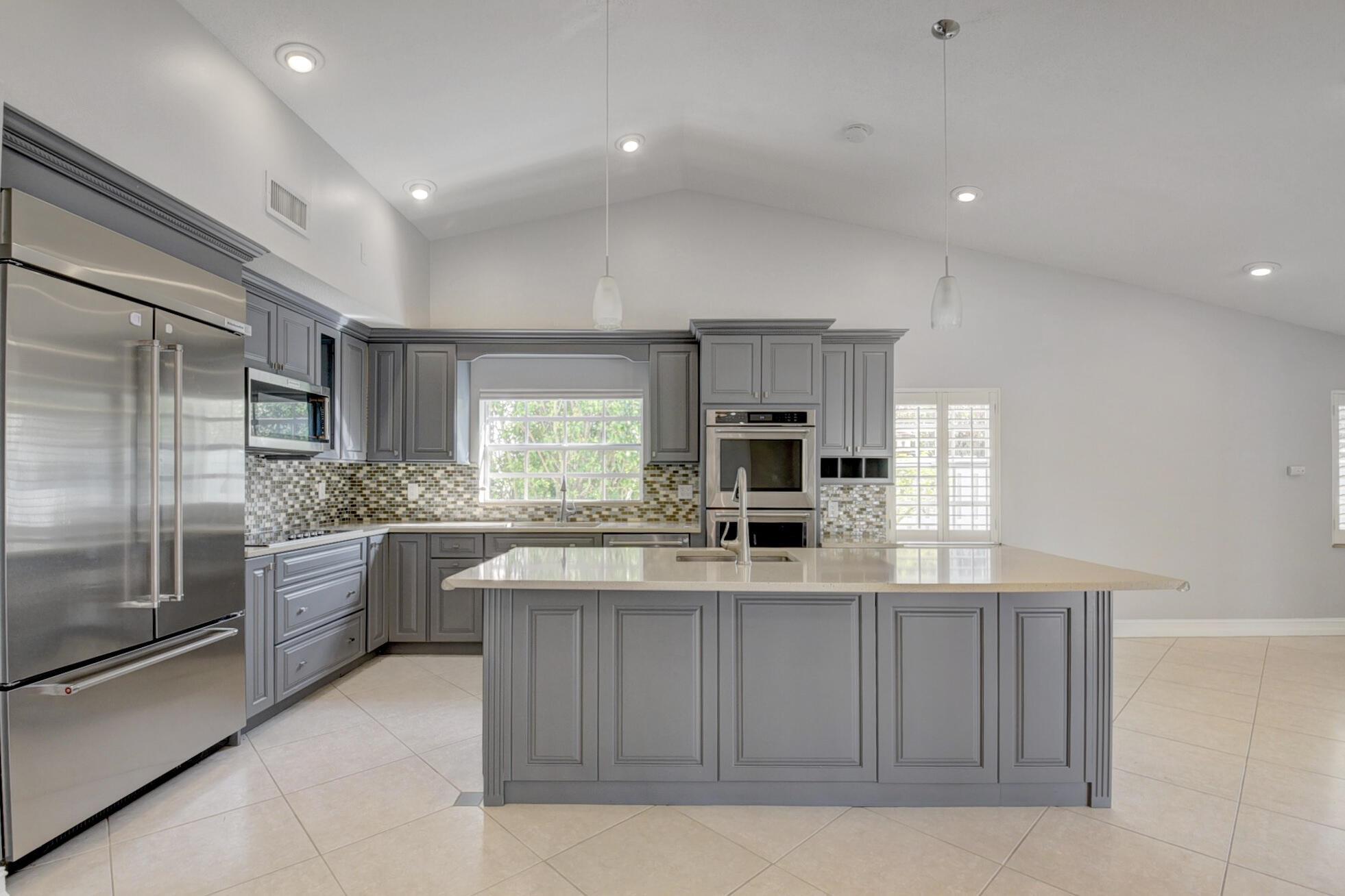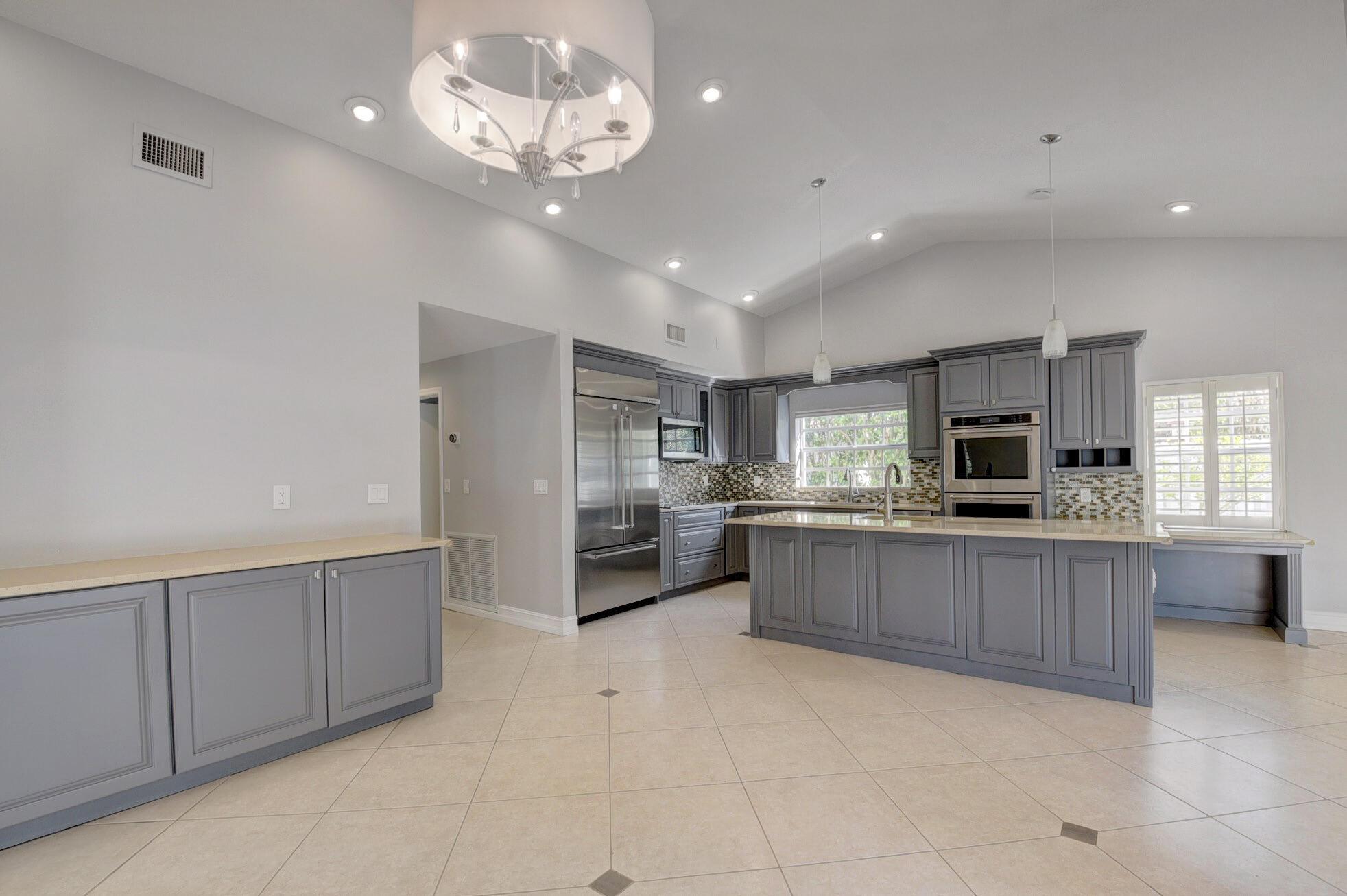 Elegant & updated 4-bedroom oasis in one of Boca Raton's most desirable neighborhoods! This single-story beauty with a circular driveway, boasts volume ceilings, a custom library with a wood-burning fireplace, a chef's kitchen featuring double ovens & a warming drawer, wine refrigerator, and a convenient snack bar and breakfast area. All bedrooms feature closet built-ins. Luxurious primary suite and bathroom features a soaking tub, frameless shower & accesses a private fenced-in pool with travertine tile & outdoor shower. Separate laundry room with front loading machines. Impact sliders & windows too! Beyond the property, New Floresta is a perfectly located neighborhood near Town Center Mall, dining, parks, FAU, 95 and the turnpike. This is an absolute must-see as your dream home awaits!