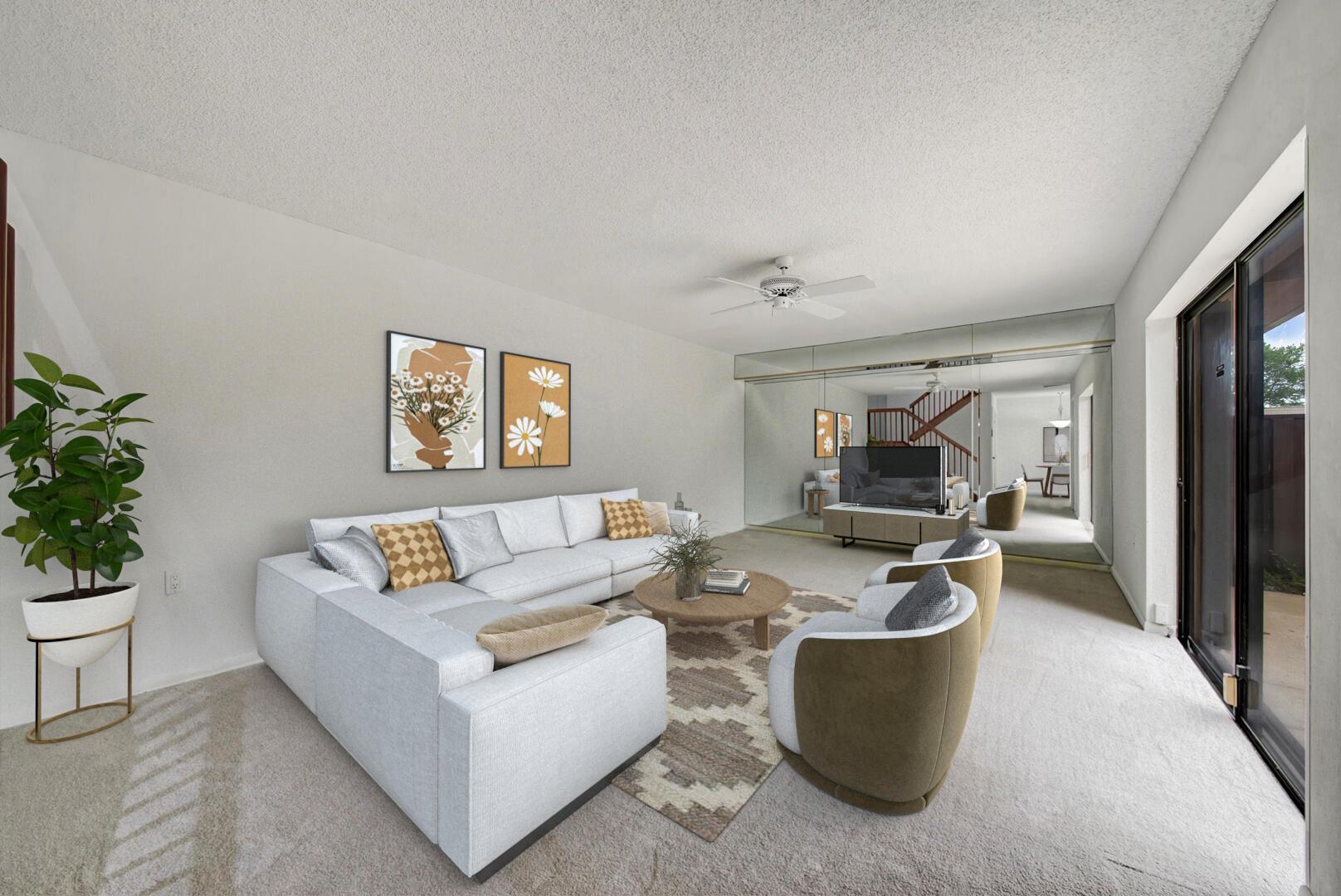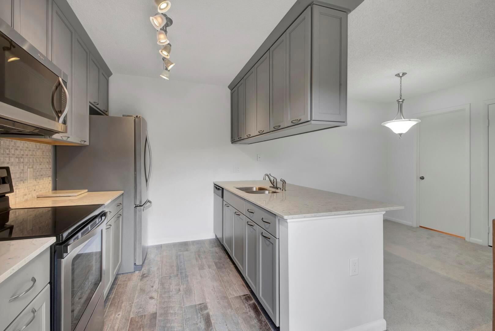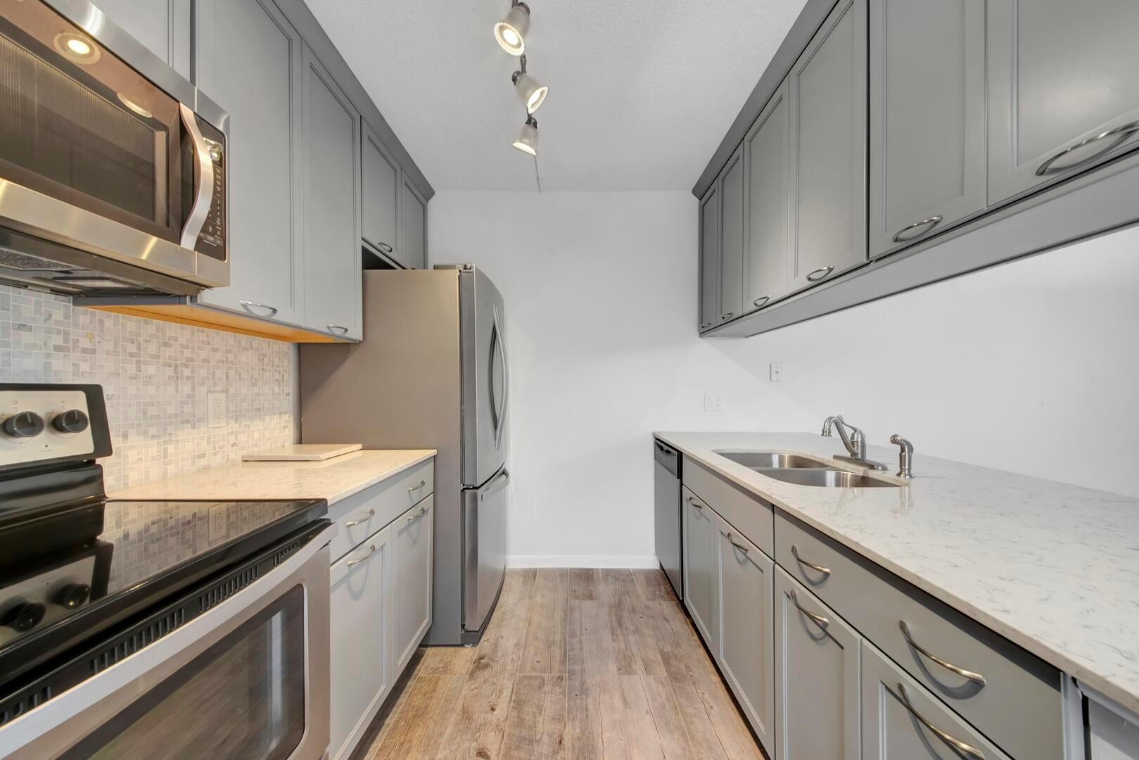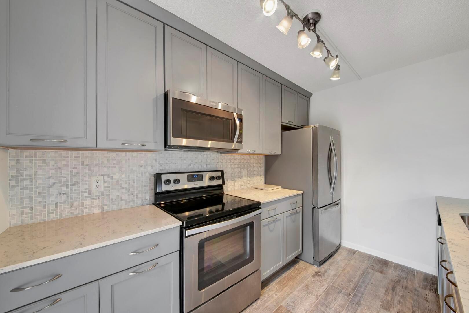 Welcome to your dream home in the sought-after Village of Sandalwood Lakes! This exquisite 2-bedroom, 2.5-bathroom townhome boasts a perfect blend of modern luxury and comfort. Step inside to discover a pristine interior featuring new neutral carpeting and freshly painted walls throughout, creating an inviting and refreshing atmosphere. The spacious living room is bathed in natural light, thanks to sliders that open up to a private fenced enclosed patio, providing an ideal space for relaxation or entertaining guests. The heart of the home, the dream kitchen, is a culinary enthusiast's delight. Elegant grey cabinets, a stylish tiled backsplash, and top-of-the-line stainless steel appliances create a contemporary and functional space that inspires creativity in cooking and entertaining.