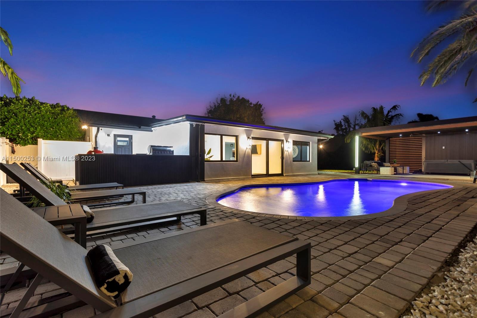 Completely renovated pool home sits on AN ACRE lot with second building. Luxury to include: hurricane windows & doors, smart lighting/keyless entry, new floors, interior/exterior doors, stucco, 24x20 pergola/hot tub, new AC & ducts, full outdoor kitchen, new roof, water purification system, security camera system, high end kitchen, large bonus room with modern fireplace. The over 1 acre lot has mature landscaping including clusia hedges for privacy that are over 12 feet tall. Landscape lighting. Second structure for entertaining/storage or retrofit to create an in-laws quarters for additional living space! Ample storage for boats/RV/ATV. Equipped with a dedicated 50AMP for your RV. Heart of west Davie’s equestrian paradise. No HOA.