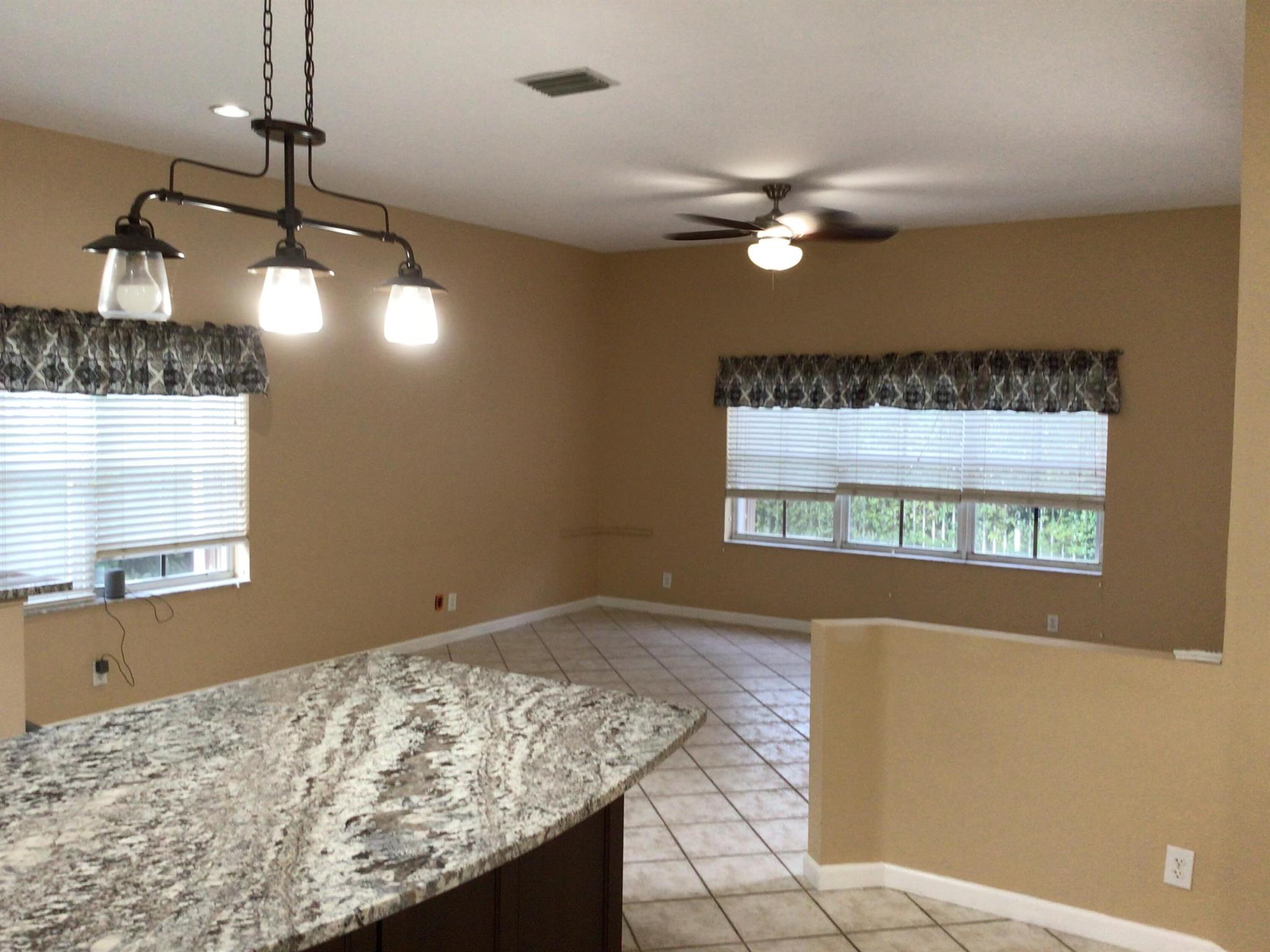 Lovely single story family home 4 bedrooms, 2.5 bathrooms, 2 car garage located in beautiful Savanna. Beautifully updated kitchen with granite counter tops and cherry cabinets. Extra large island with side electric outlets and loads of storage. Kitchen has stainless steel appliances including a double oven. A/C 2020, roof 2013 - NO POPCORN. Home has ceramic tile throughout the main area, new carpet in large master bedroom and laminate in the other bedrooms. Complete hurricane coverage. Covered patio with pavers, ceiling fan and roll down storm shutter. Private and cozy fenced backyard with extended paved patio for spacious outside entertaining area.Very close to Savanna's community clubhouse, miniature golf, pool, playground and waterslide. Close to Bonaventure Golf Course