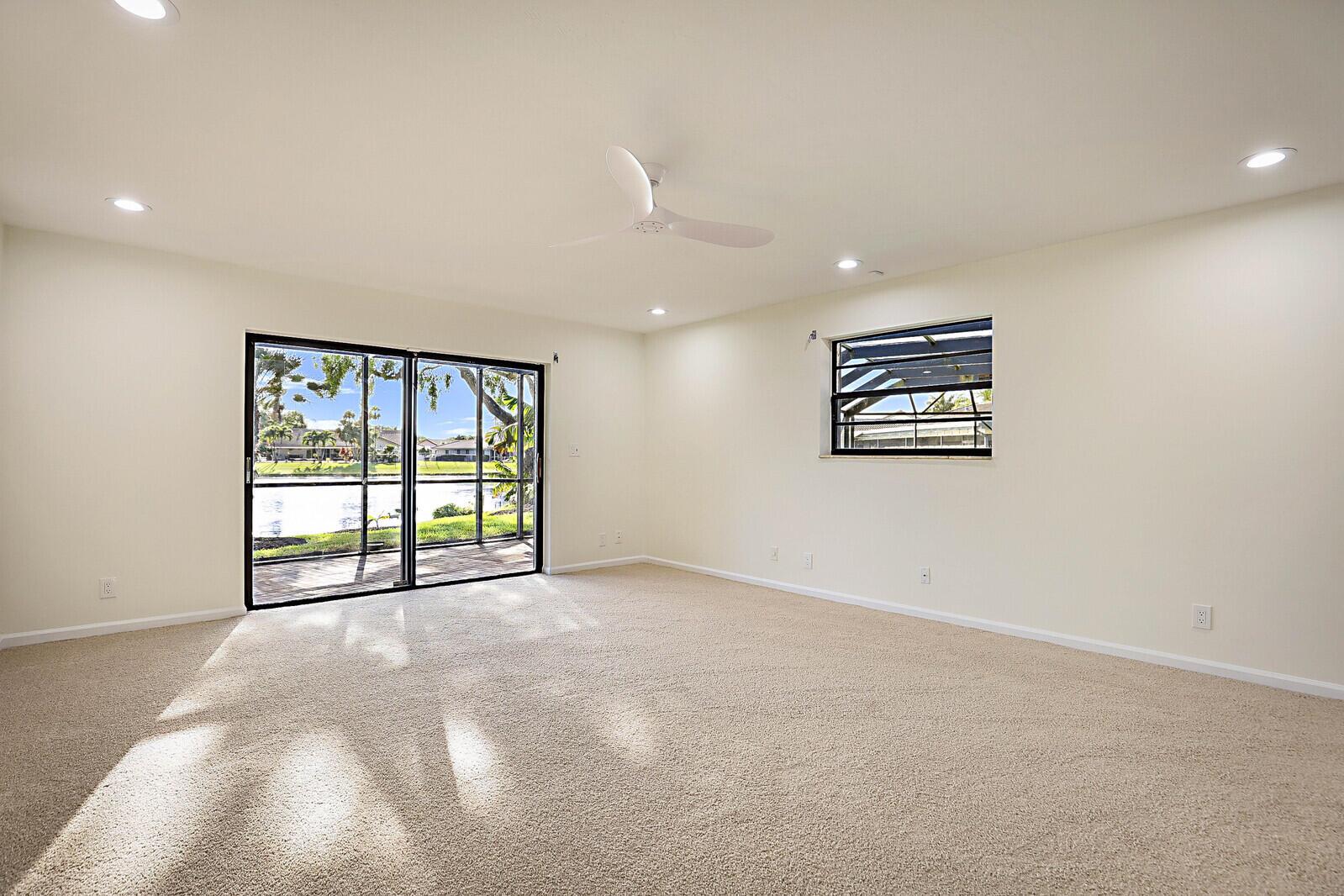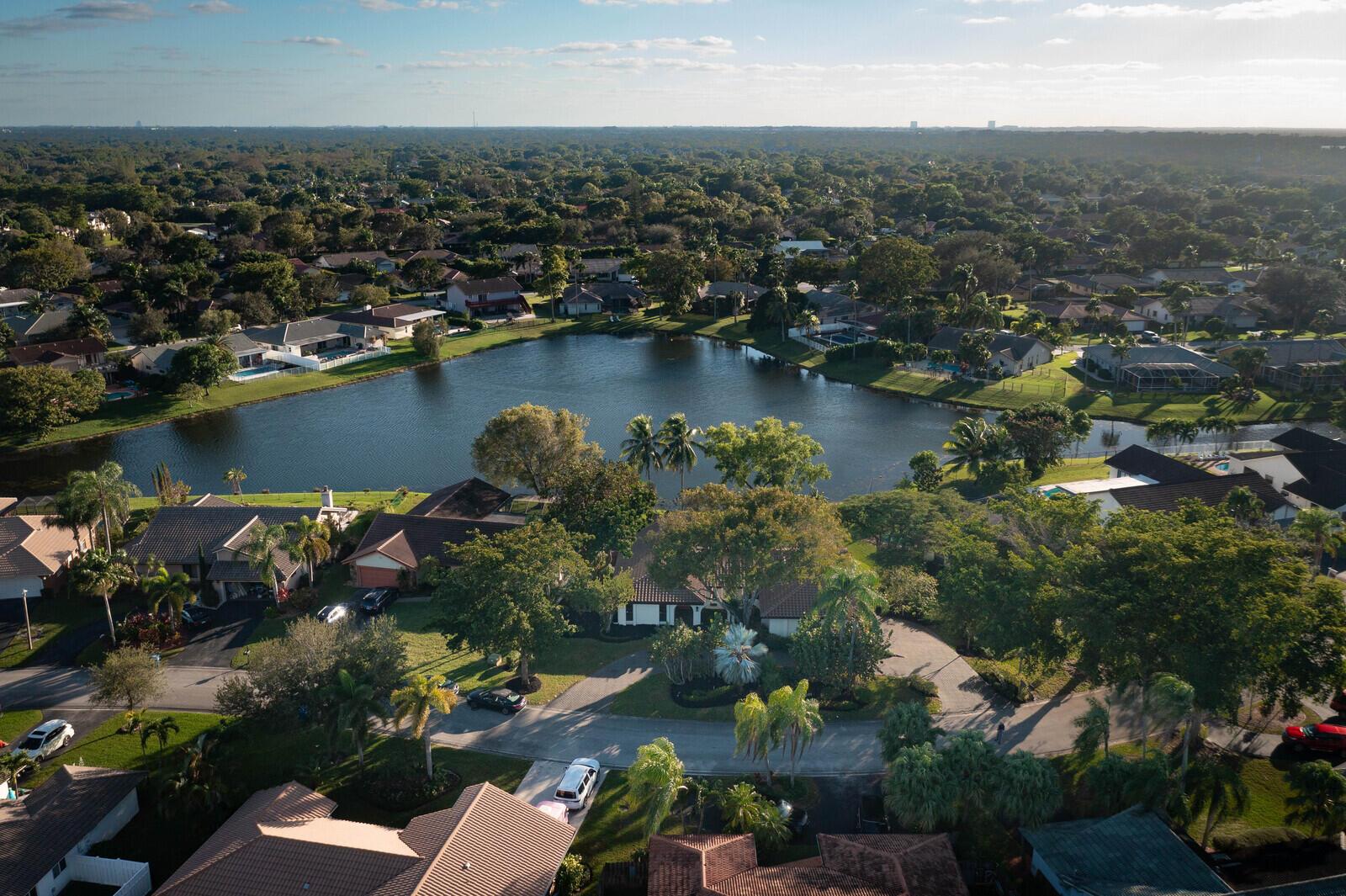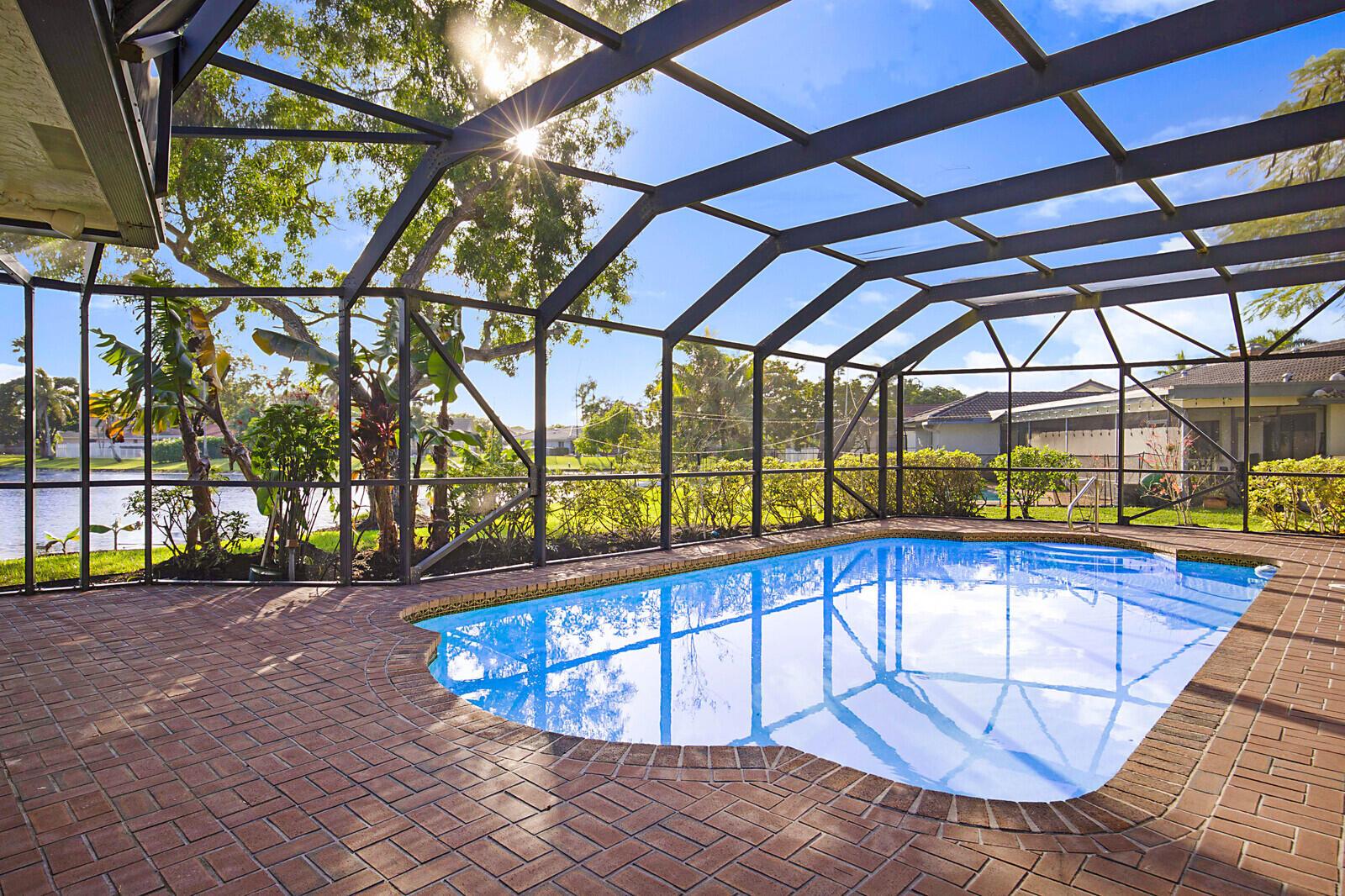 Custom built 4BR/3Bath pool home on oversized lake lot w/circular drive, beautiful trees, newer roof (2019), 2 zone AC, 2 water heaters + central vacuum. Brand new eat-in kitchen w/grey ''stainless'' appliances, quartz counters, white shaker cabinets, recessed lighting, pass thru to the pool + pass thru bar to Dining Room. Beautiful marble floors in all living areas were just polished and sealed. Fireplace. Newly remodeled 3rd Bathroom/Cabana Bath. Freshly painted interior and exterior. New carpet in 3 bedrooms. Automatic roll down shutters for back sliders & Master BR. Manual roll down shutters elsewhere. Oversized 2 car garage is tiled and has an air conditioned cedar closet. Sprinkler system water from the lake. All ages welcome. Pet friendly neighborhood with NO HOA FEES.