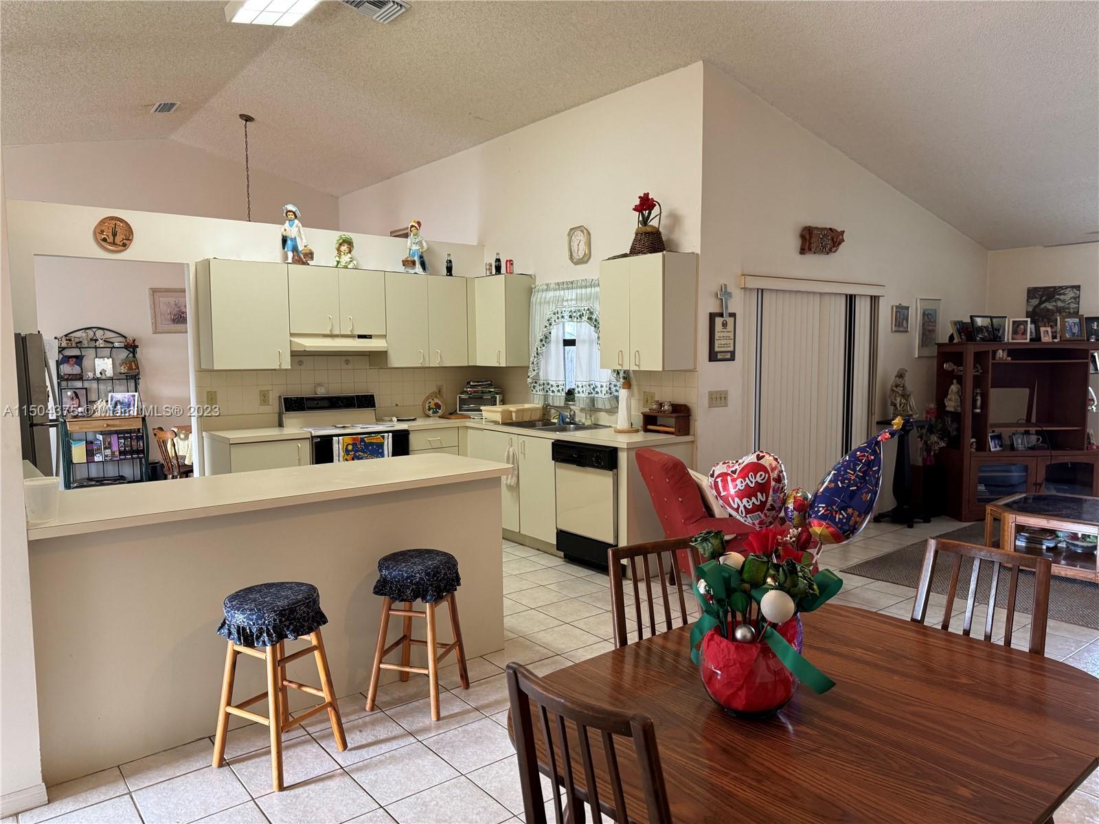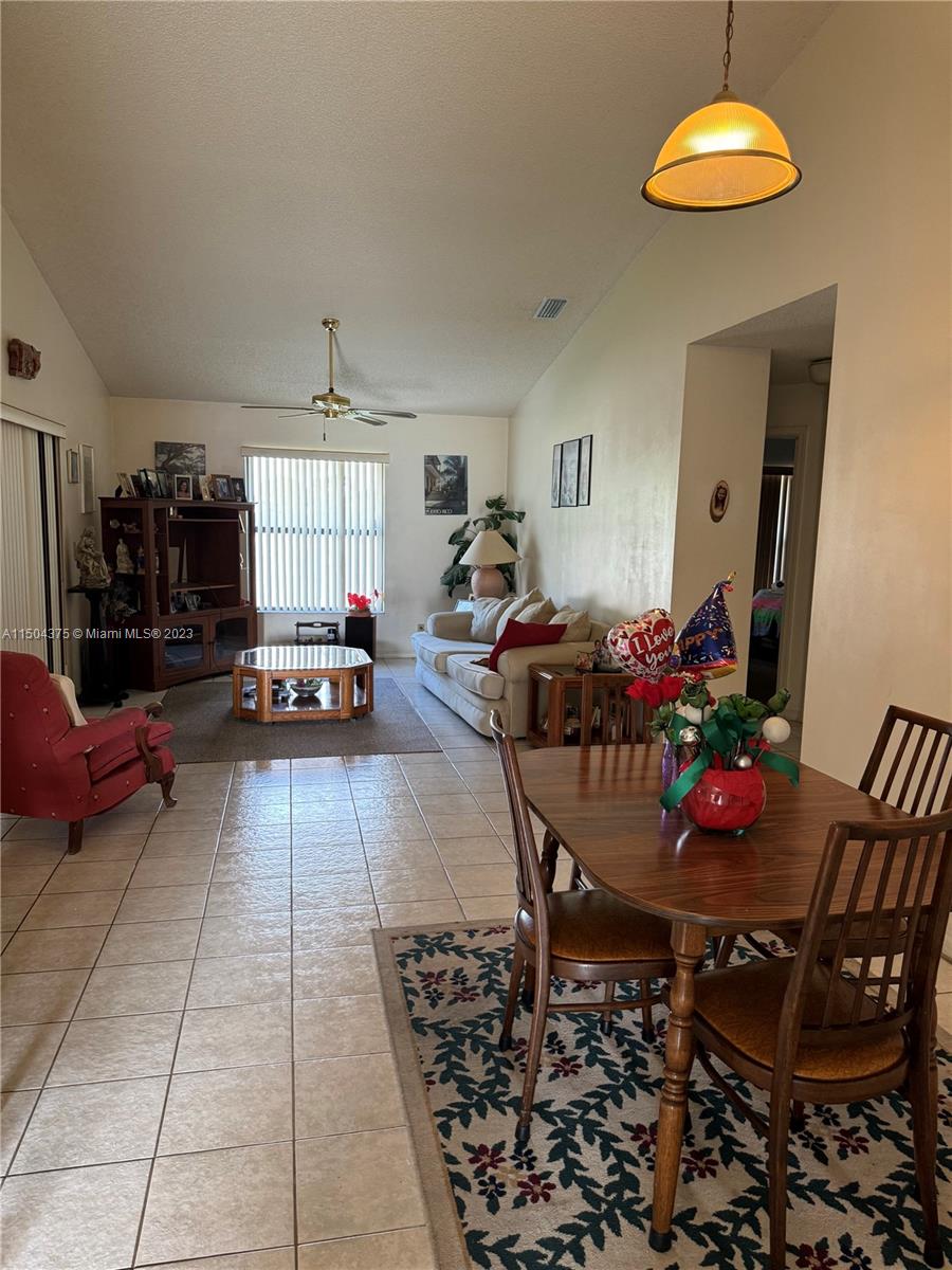 Nicely kept 3/2 home with 2 car garage in a beautiful neighborhood available now. Split floor plan with primary bedroom and en suite bathroom on one side and two bedrooms on the other. Formal dining room and kitchen with eat in dining area. Vaulted ceilings. Central AC. Washer/Dryer in 2 car garage. Living room and Family Room. Very nice size home in a very nice neighborhood. Close to shopping and transportation. Has hurricane panels.
