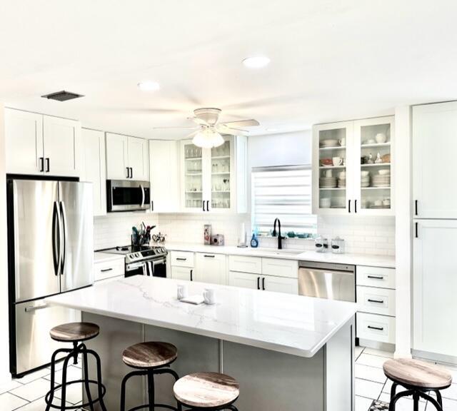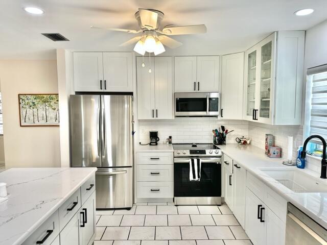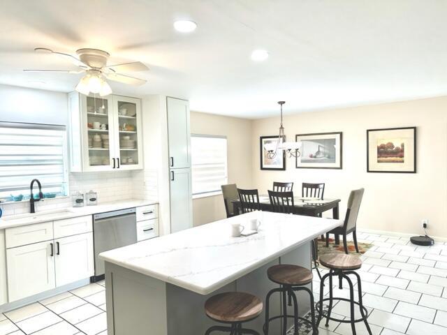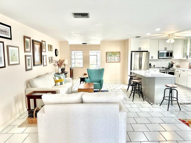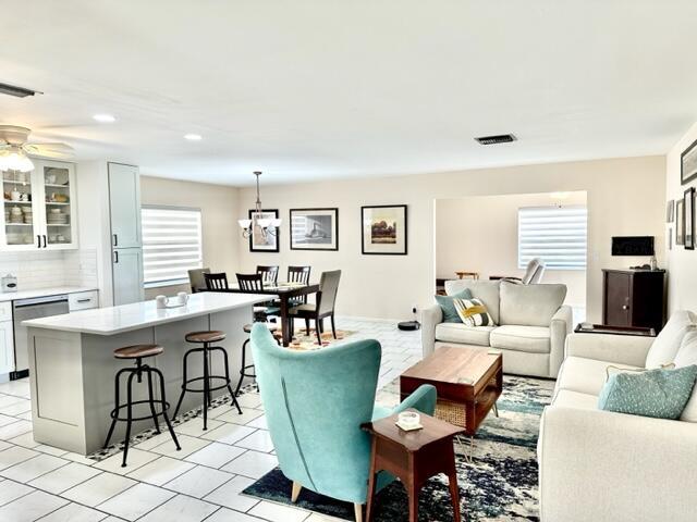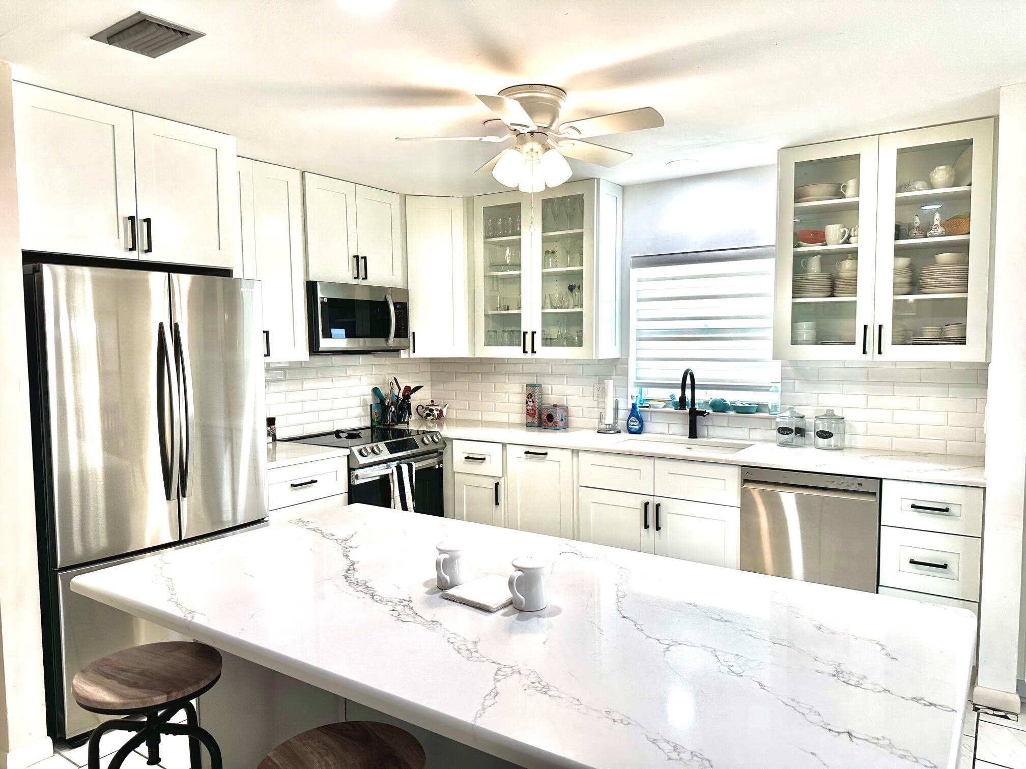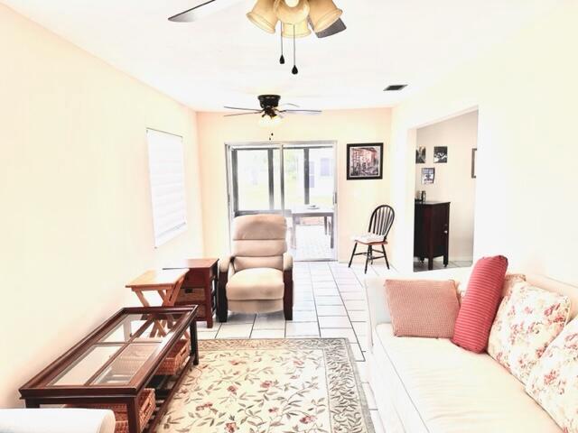 This beautifully renovated, open floor plan, 2 bedroom, 2 bath home may be the piece of paradise you've been looking for! Located in the very sought after 55+ community of Cypress Lakes this home has a beautiful view of the golf course and pond on the 17th hole from your large screened in patio, which is perfect for entertaining or just having your morning coffee. You enter the home through a large screened/tiled entryway, the open floor plan greets you with a beautiful Open Kitchen, 42'' cabinets, quartz counters, SS appliances, breakfast bar, dining area, living room plus a separate large den/Florida room. Both bathrooms also updated with quartz counters & New Vanities. Kitchen Appliances and AC were replaced in 2022.