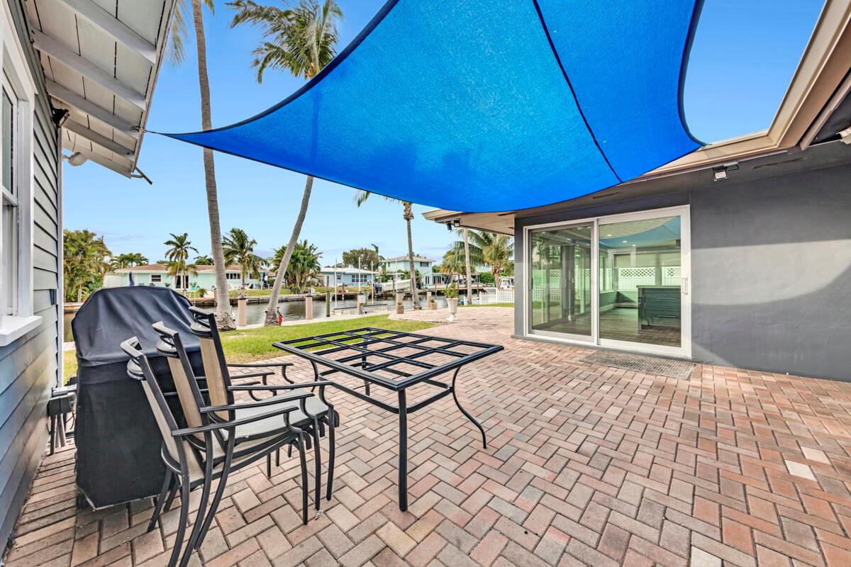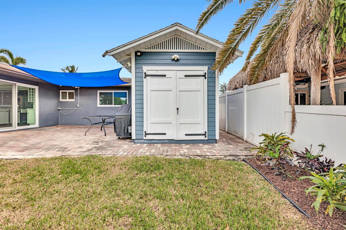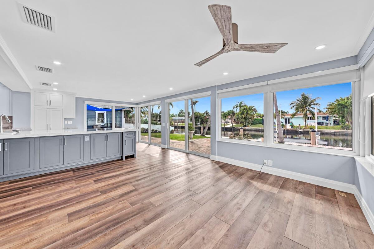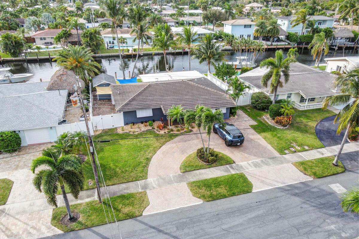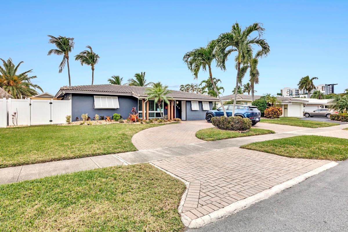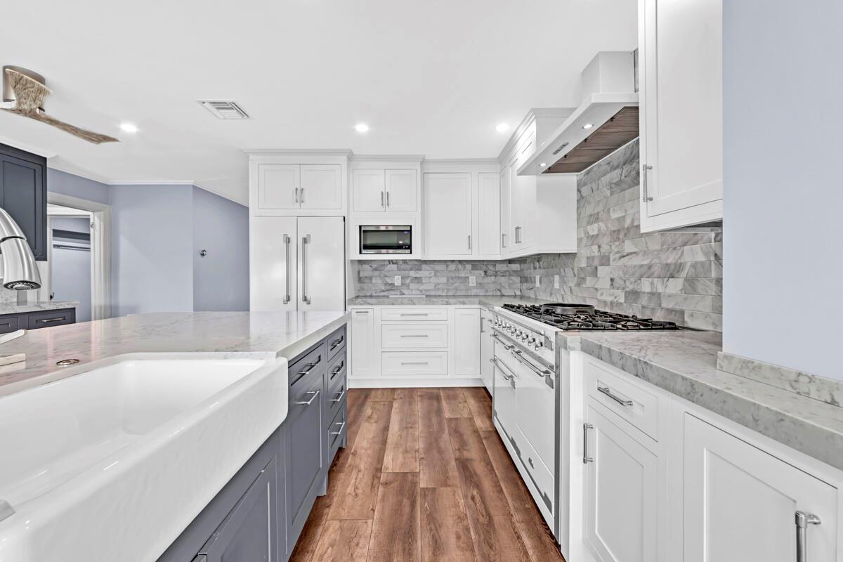 Waterfront Gem! 3 bedroom, 2 bath, waterfront Ranch just minutes to the Atlantic Ocean. Home boasts designer upgrades with Aga refrigerator and 5-burner gas stove w/ matching hood and pull-out pot filler, 2 Viking dishwashers, Kohler farmhouse porcelain sink, stone backsplash, white granite counter-top on island seats 8 people. Pull-out lower drawers, separate bar with pantry and glass-front cabinets. Impact windows throughout, custom blinds, plantation shutters and a 24 bottle wine holder. New 70' Weatherboard dock and upgraded seawall 2022/2023. New 16,500lb four post lift and Florida Historic Shed w/ electric. Plenty of storage w/ paver tiles on both sides of the home. bead board, ample high-hats, high-end ceiling fans, on-demand gas hot water heater.
