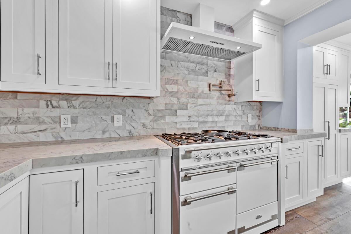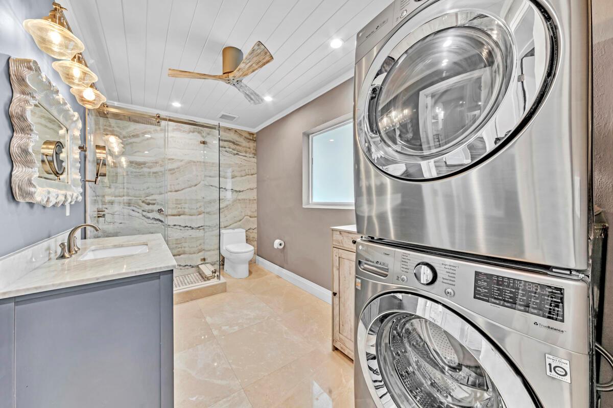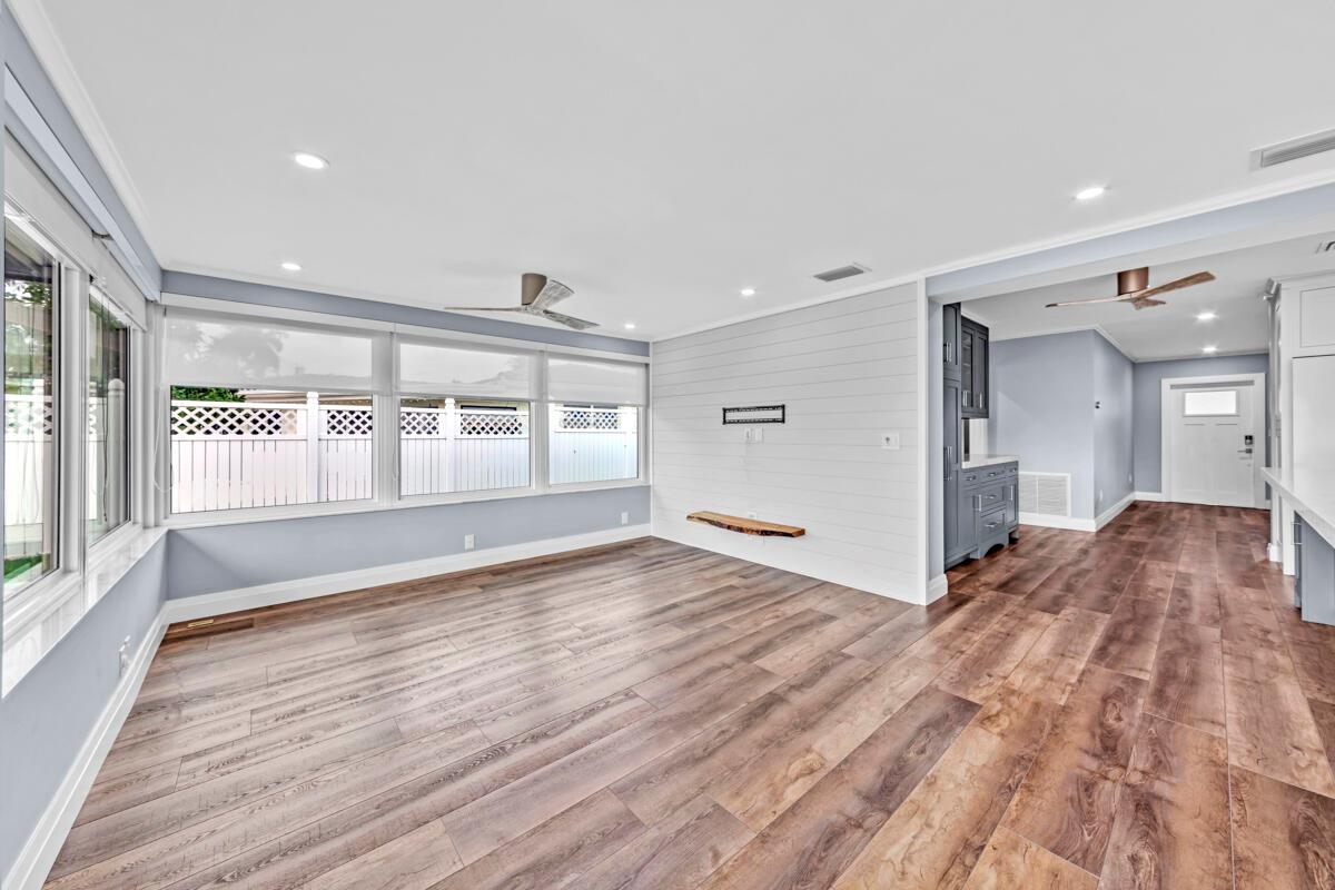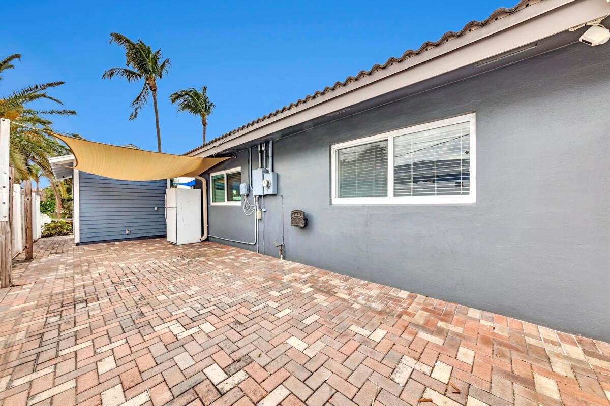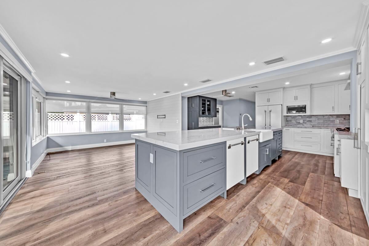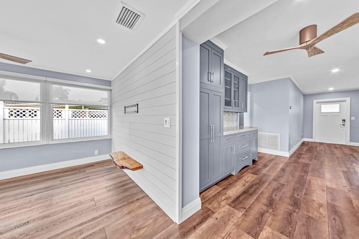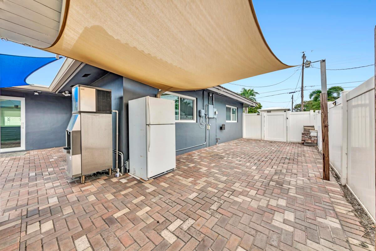 Waterfront Gem! 3 bedroom, 2 bath, waterfront Ranch just minutes to the Atlantic Ocean. Home boasts designer upgrades with Aga refrigerator and 5-burner gas stove w/ matching hood and pull-out pot filler, 2 Viking dishwashers, Kohler farmhouse porcelain sink, stone backsplash, white granite counter-top on island seats 8 people. Pull-out lower drawers, separate bar with pantry and glass-front cabinets. Impact windows throughout, custom blinds, plantation shutters and a 24 bottle wine holder. New 70' Weatherboard dock and upgraded seawall 2022/2023. New 16,500lb four post lift and Florida Historic Shed w/ electric. Plenty of storage w/ paver tiles on both sides of the home. bead board, ample high-hats, high-end ceiling fans, on-demand gas hot water heater.
