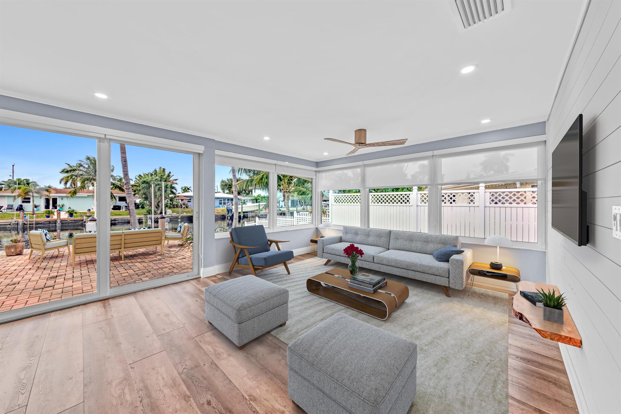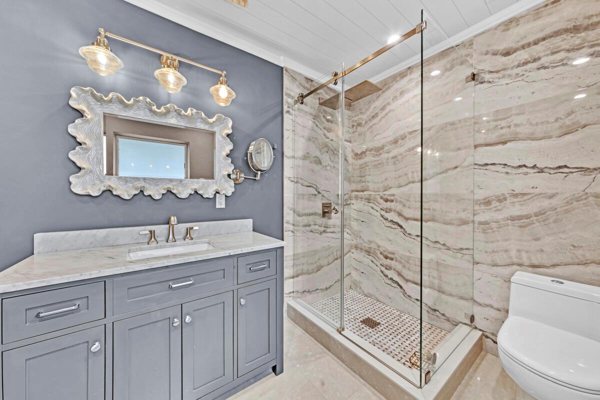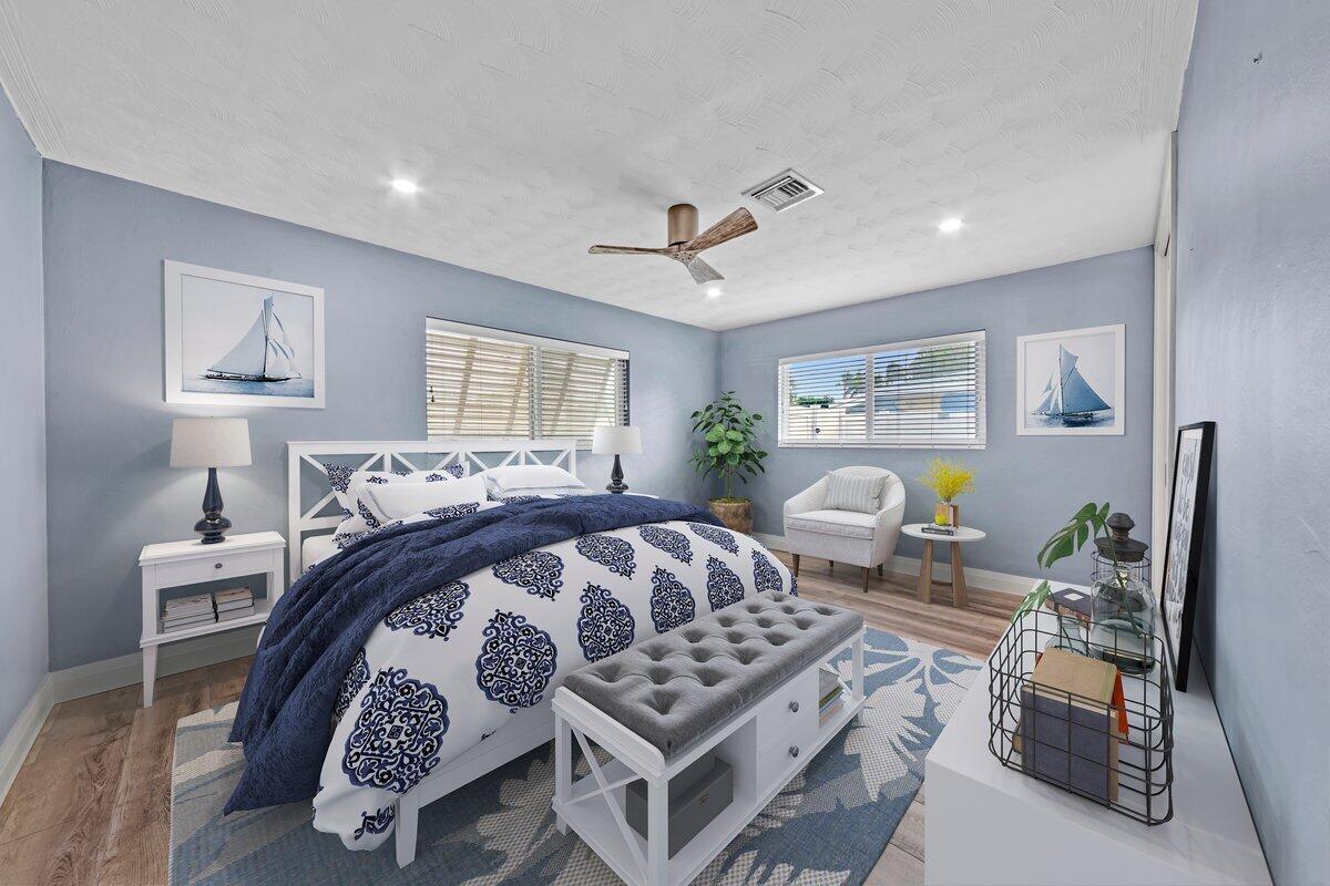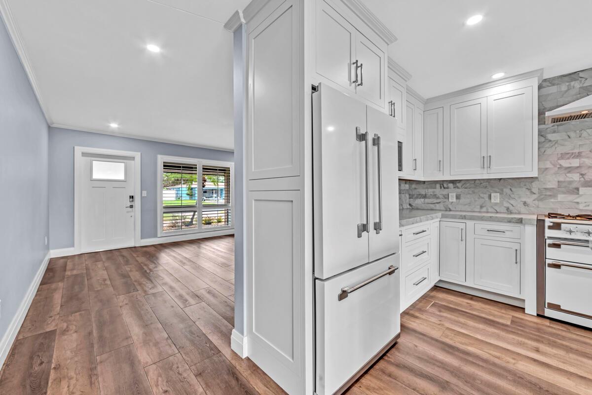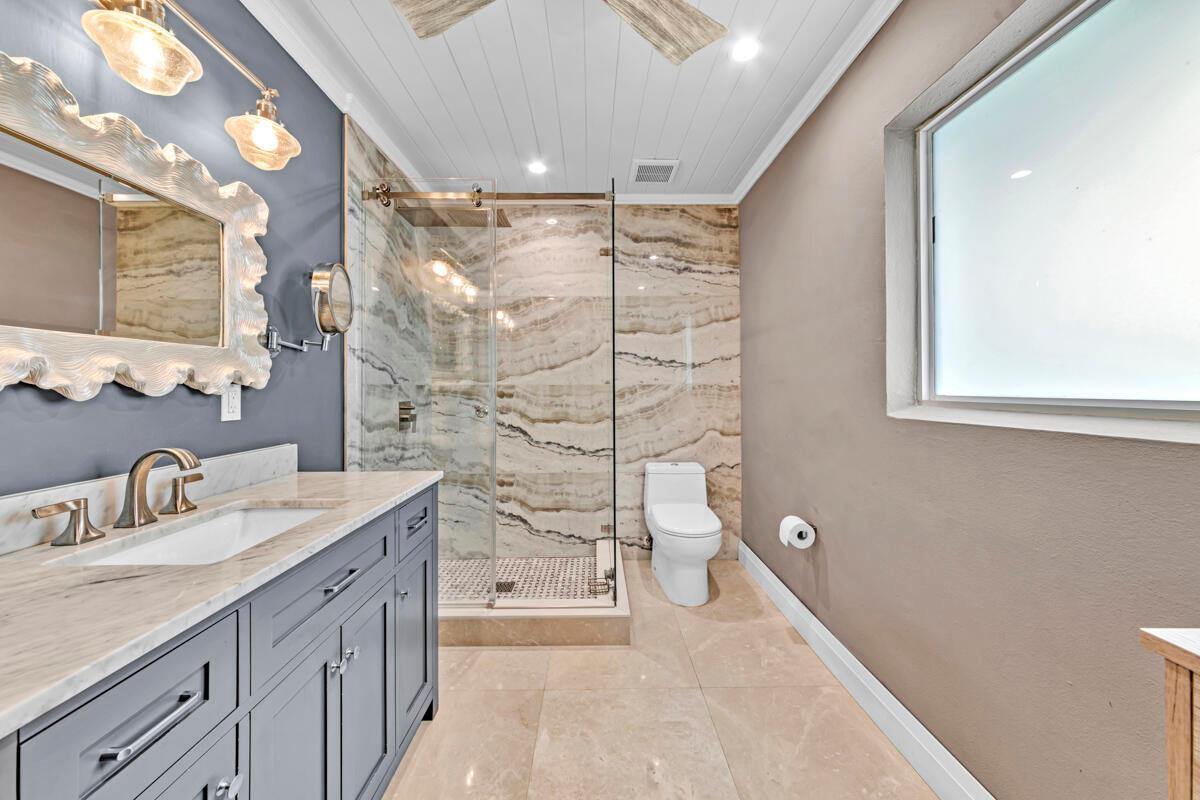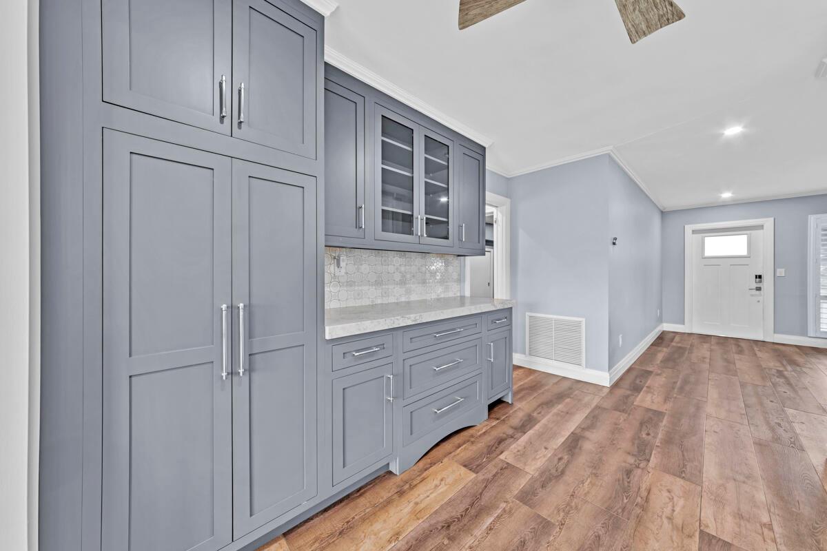 Waterfront Gem! 3 bedroom, 2 bath, waterfront Ranch just minutes to the Atlantic Ocean. Home boasts designer upgrades with Aga refrigerator and 5-burner gas stove w/ matching hood and pull-out pot filler, 2 Viking dishwashers, Kohler farmhouse porcelain sink, stone backsplash, white granite counter-top on island seats 8 people. Pull-out lower drawers, separate bar with pantry and glass-front cabinets. Impact windows throughout, custom blinds, plantation shutters and a 24 bottle wine holder. New 70' Weatherboard dock and upgraded seawall 2022/2023. New 16,500lb four post lift and Florida Historic Shed w/ electric. Plenty of storage w/ paver tiles on both sides of the home. bead board, ample high-hats, high-end ceiling fans, on-demand gas hot water heater.