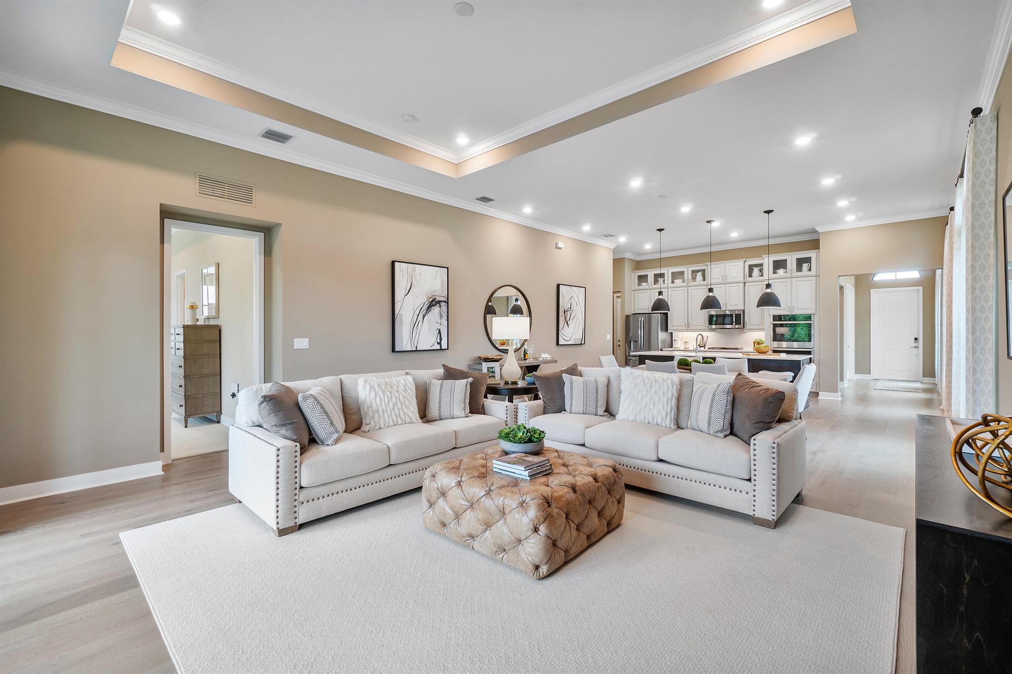 The Falls is a new luxury active lifestyle (55+) community in prestigious east Parkland featuring a 24,000sqft clubhouse w/ extensive amenities. This popular 2BR+Den builders model is loaded w/ upgrades/documents: Spanish Elevation, Kitchen w/ Tall Glazed Wood Double Stacked Cabinetry, Modern Quartz Countertops, Herringbone Tile Backsplash, SS Appliances w/ Double Oven, French Door Ref & Gas Cooktop, Large Island enhanced w/ Wood finish & huge Walk-In Pantry, Wood Floor set in a staggered pattern in living area, Tray Ceilings, all Baths 24x24 matte floor tile, Crown Molding, Laundry complete w/ Wood Glaze Cabinetry, Quartz Top, Front Load W&D & Stainless Sink, Large covered Lanai w/ Extended Paver Patio, tropical lush landscape and Outdoor Kitchen Rough In. Summary of Upgrades in Docs.