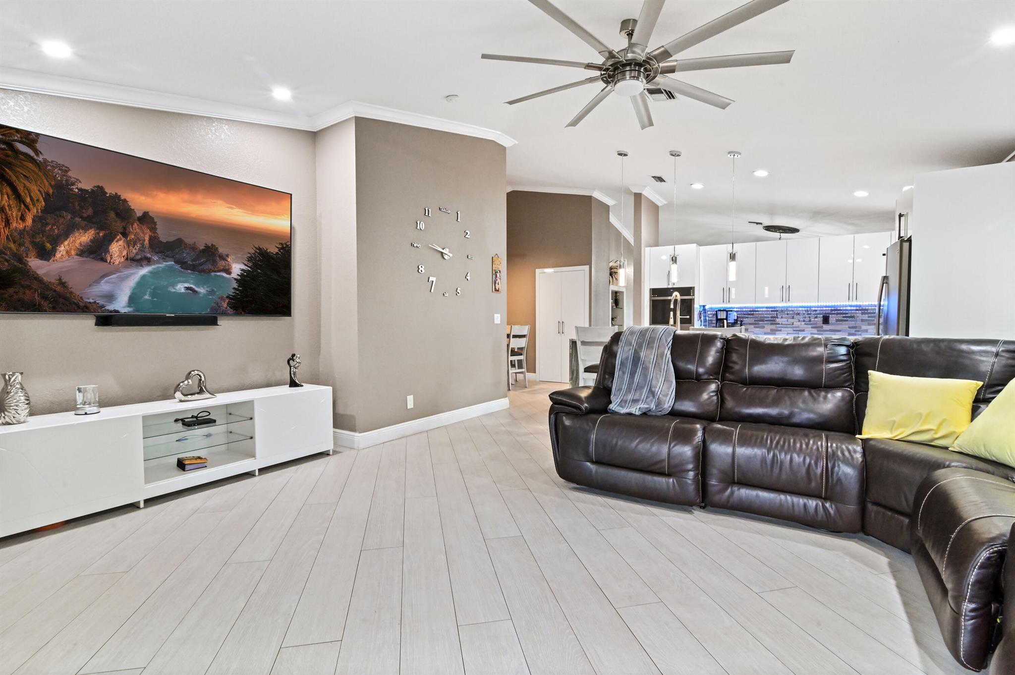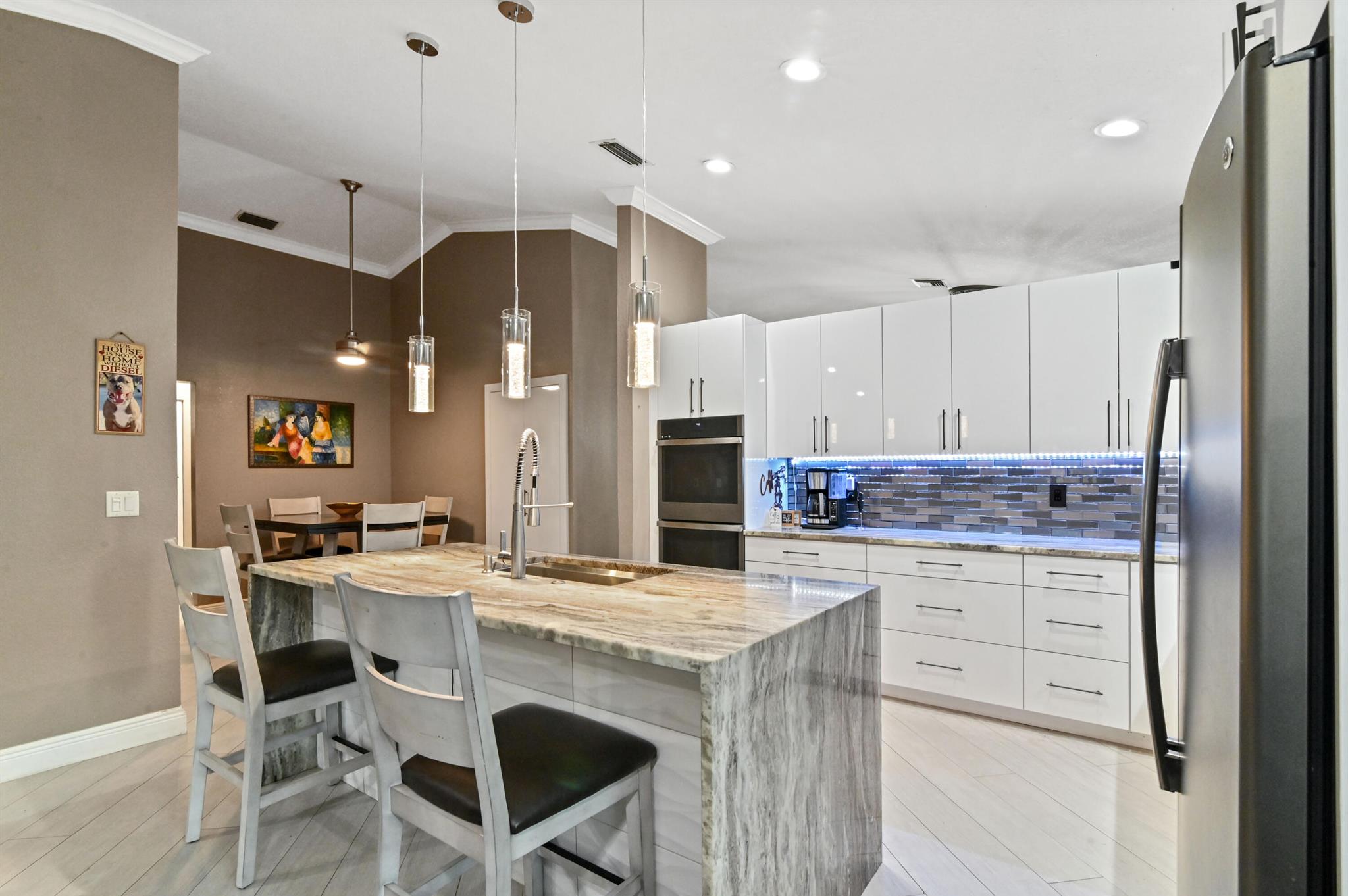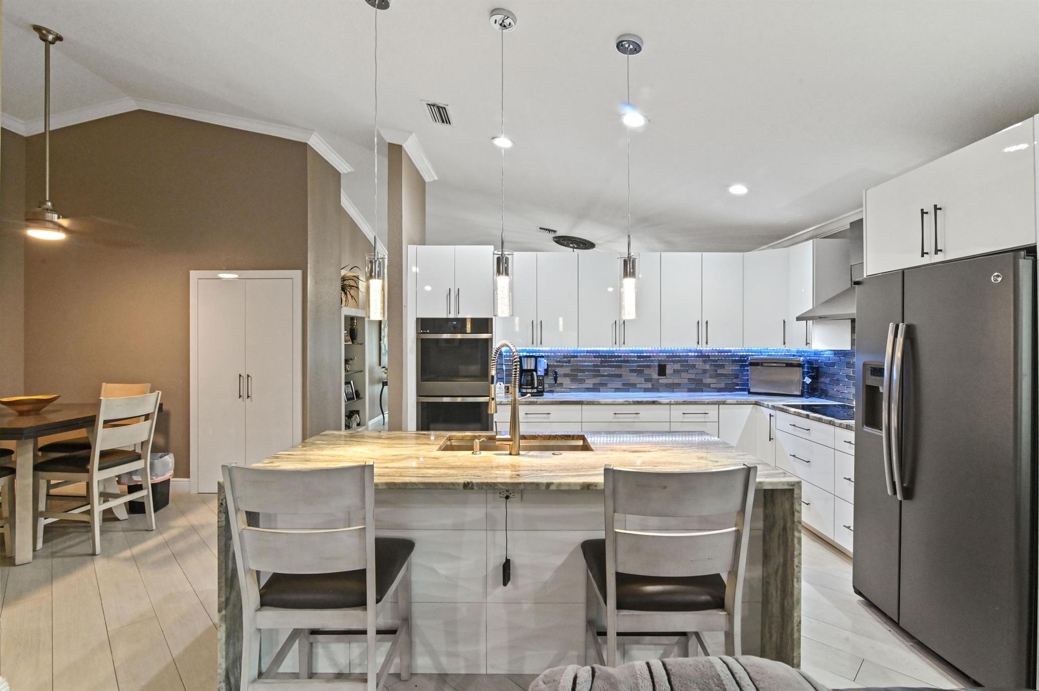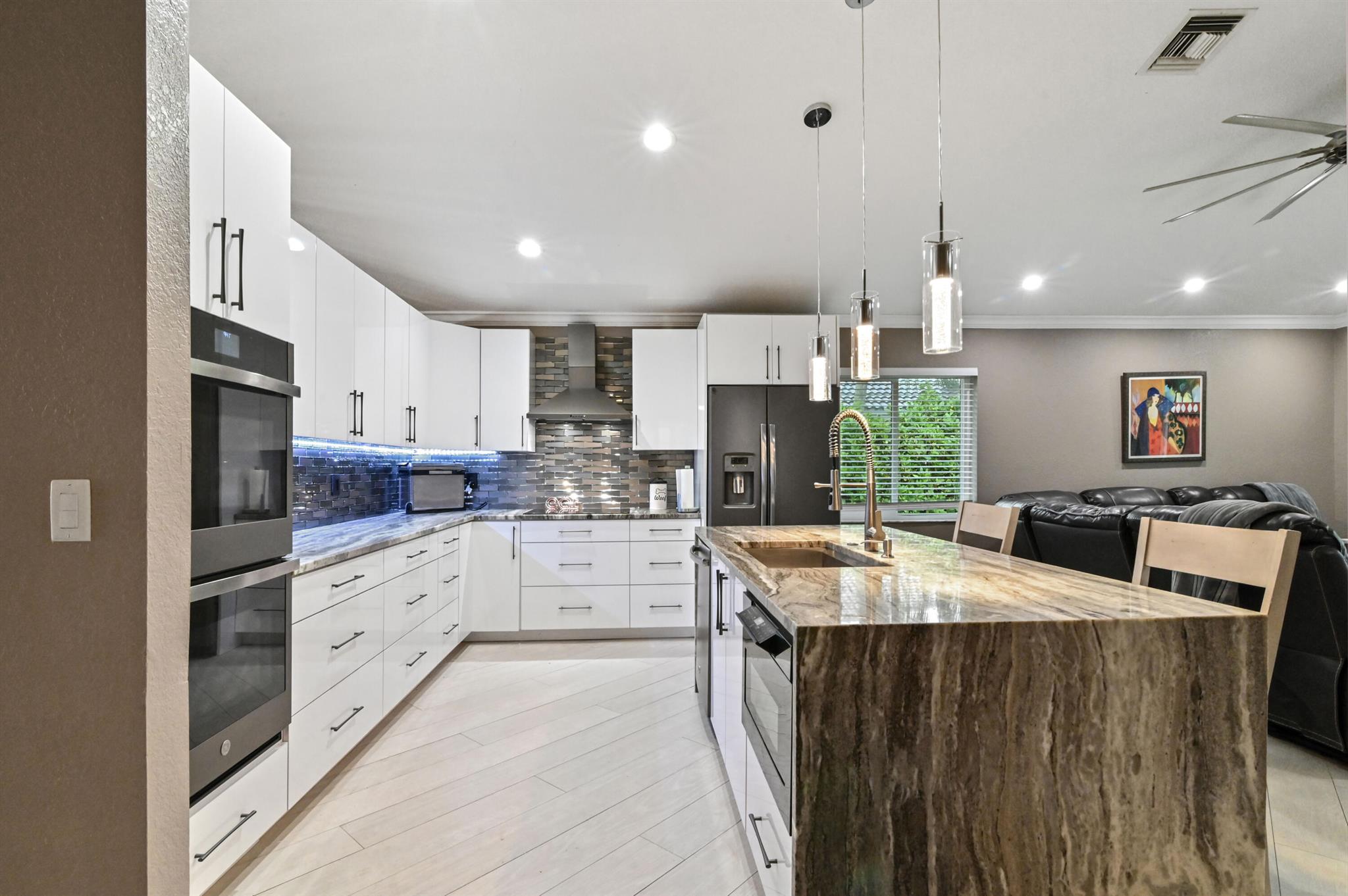 Welcome to this charming single-family home nestled in the desirable Kensington North community. Boasting 4 bedrooms and 2 bathrooms, this residence offers a spacious and comfortable living experience fitted with upgraded impact windows. Pull into your 2-car attached garage and step into a home filled with delightful features.The heart of this home lies in its well-appointed kitchen, complete with a convenient island and double oven, perfect for preparing meals and entertaining guests. French doors welcome you into the family room, where natural light pours in through sliding doors leading to your private patio--a serene retreat for relaxation and outdoor gatherings.