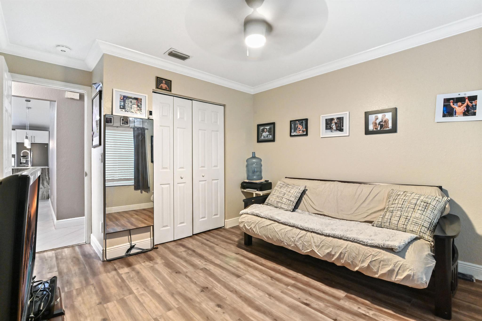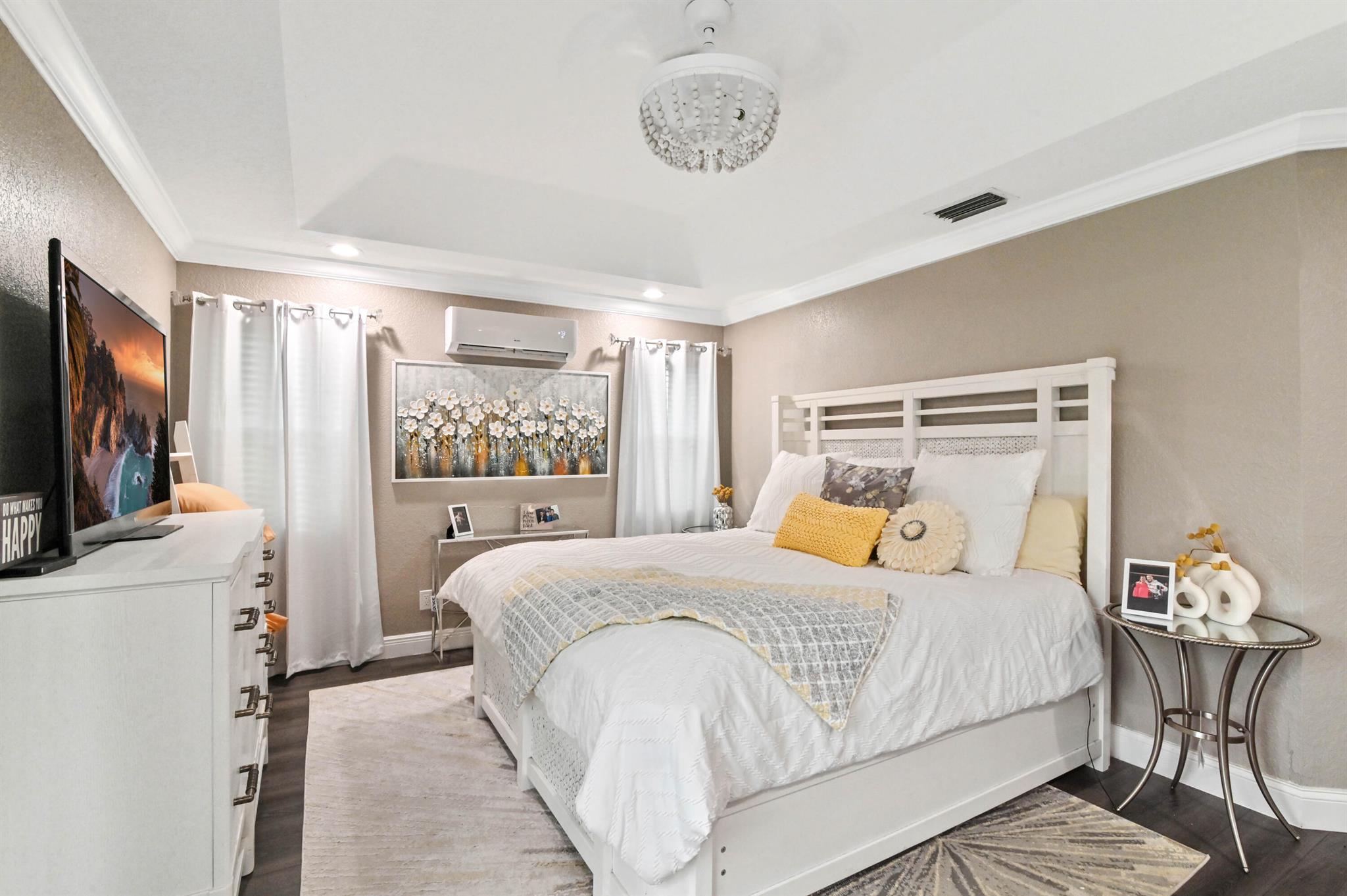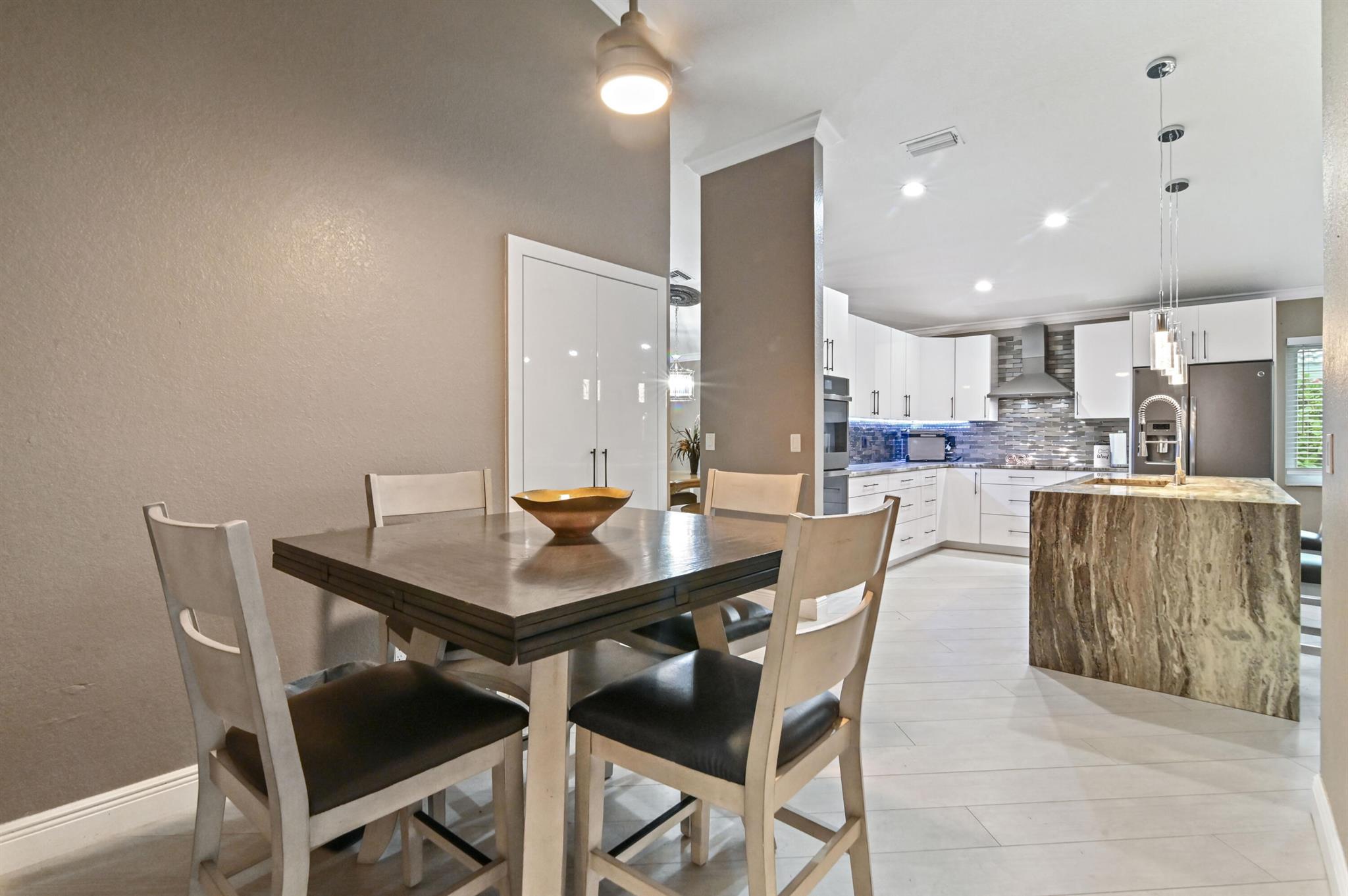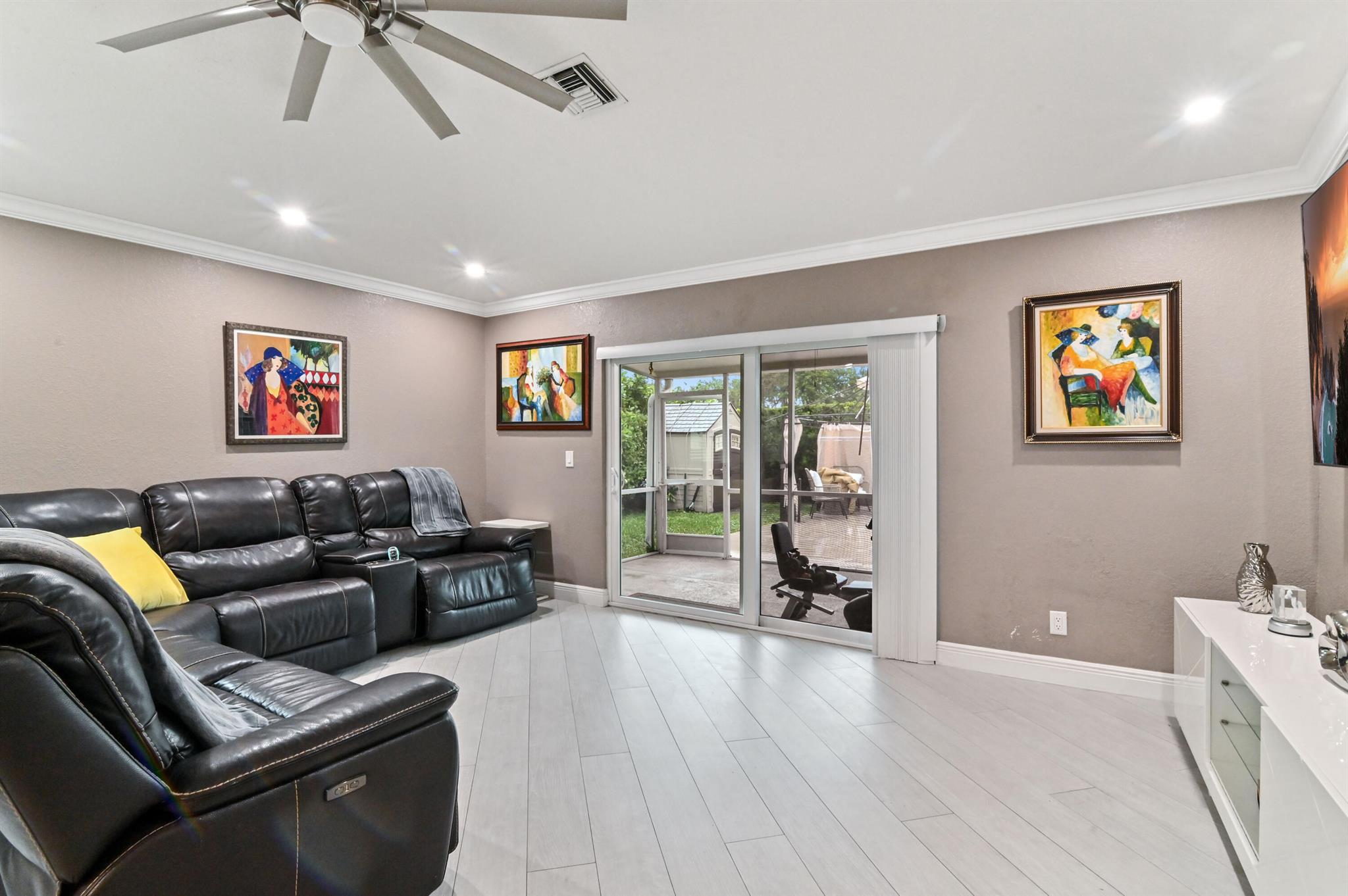 Welcome to this charming single-family home nestled in the desirable Kensington North community. Boasting 4 bedrooms and 2 bathrooms, this residence offers a spacious and comfortable living experience fitted with upgraded impact windows. Pull into your 2-car attached garage and step into a home filled with delightful features.The heart of this home lies in its well-appointed kitchen, complete with a convenient island and double oven, perfect for preparing meals and entertaining guests. French doors welcome you into the family room, where natural light pours in through sliding doors leading to your private patio--a serene retreat for relaxation and outdoor gatherings.