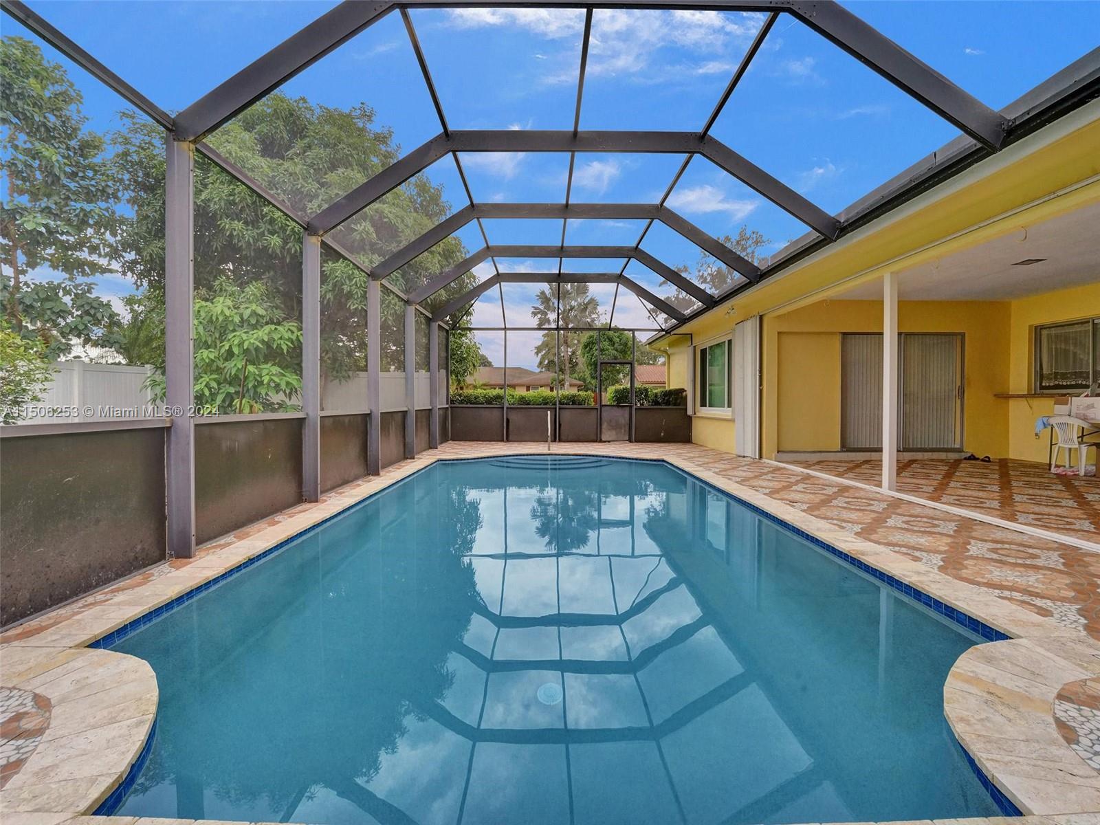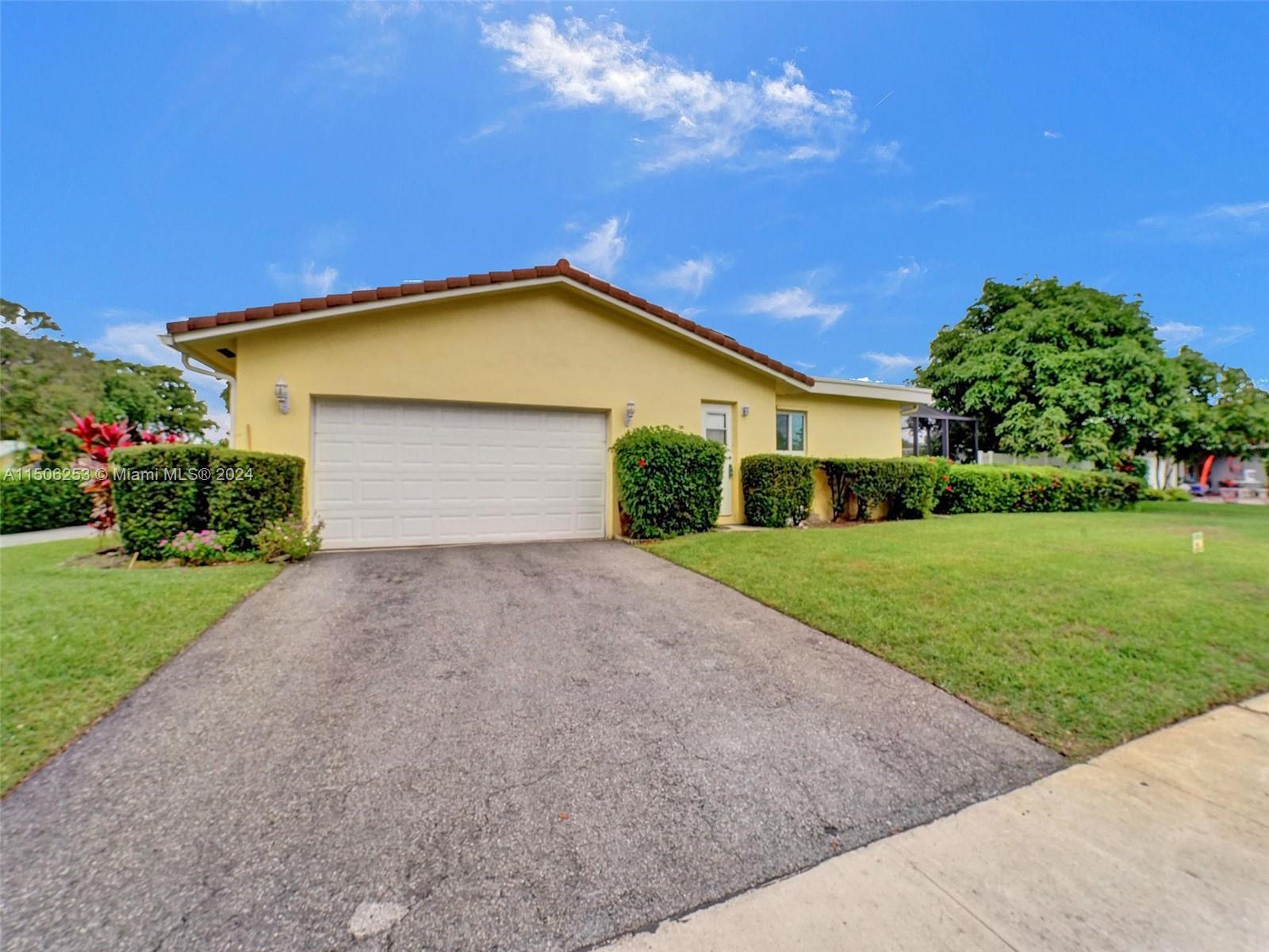 PRICE REDUCTION!!Welcome home to Plantation Park! This majestic 3/3 home is situated on a corner lot and provides a front circular driveway along with the side driveway to the 2-car garage. The large screened in pool area is ideal for entertaining guests. The lush backyard provides peace and tranquility and offers mangoes, banana trees and seasonal fruit trees. The guest bathroom located just off the family room and kitchen area is a full bathroom! The laundry room is huge and has a side door to outside. Flat roof was done in 2021 and A/C is 5 years old; Sprinkler system was replaced in 2021; The pool pump is 3 years old; The water heater is brand new 2023. Home is close to great schools, shopping, and all major roadways making commute a breeze. No pesky HOA to worry about!