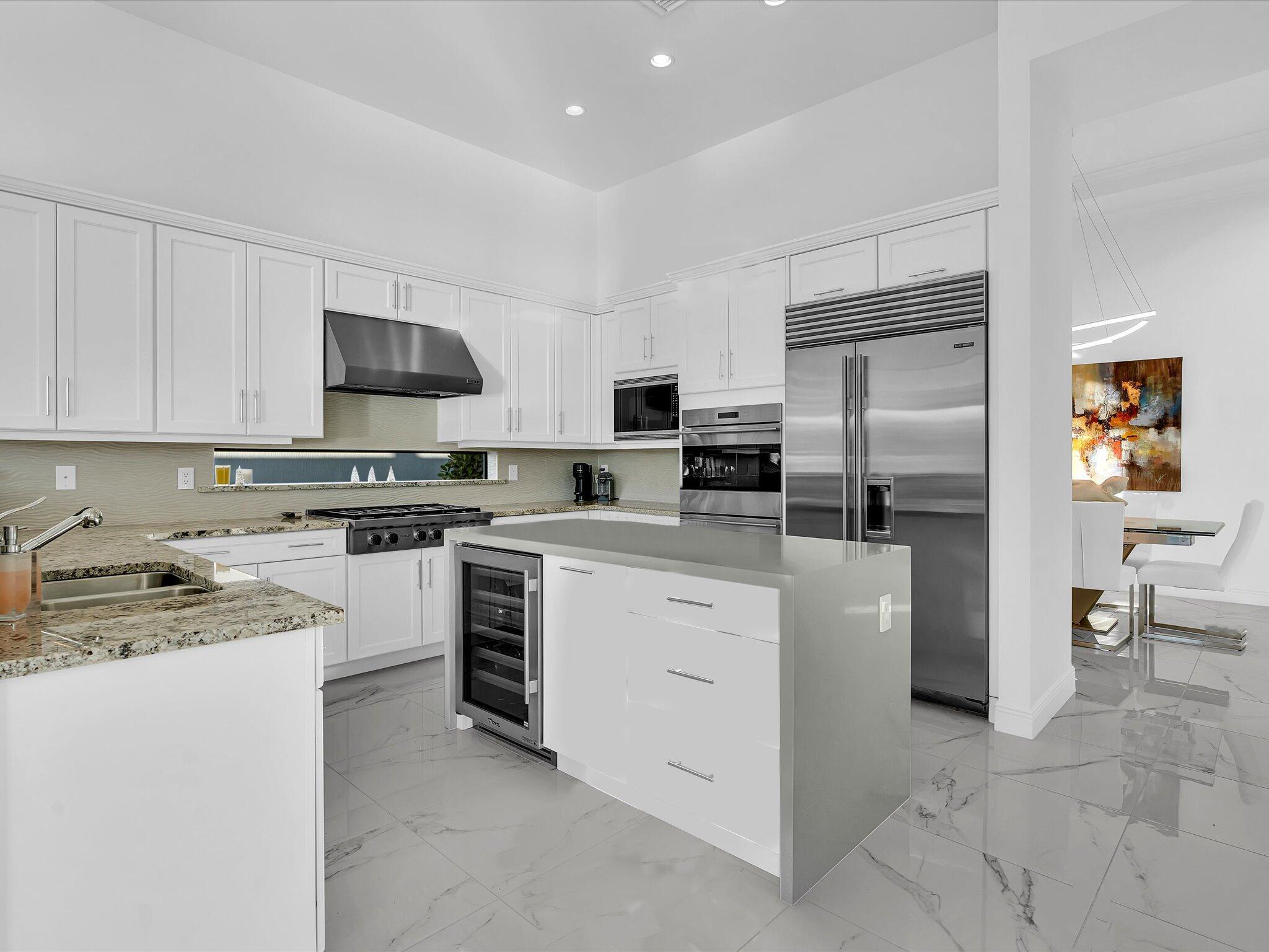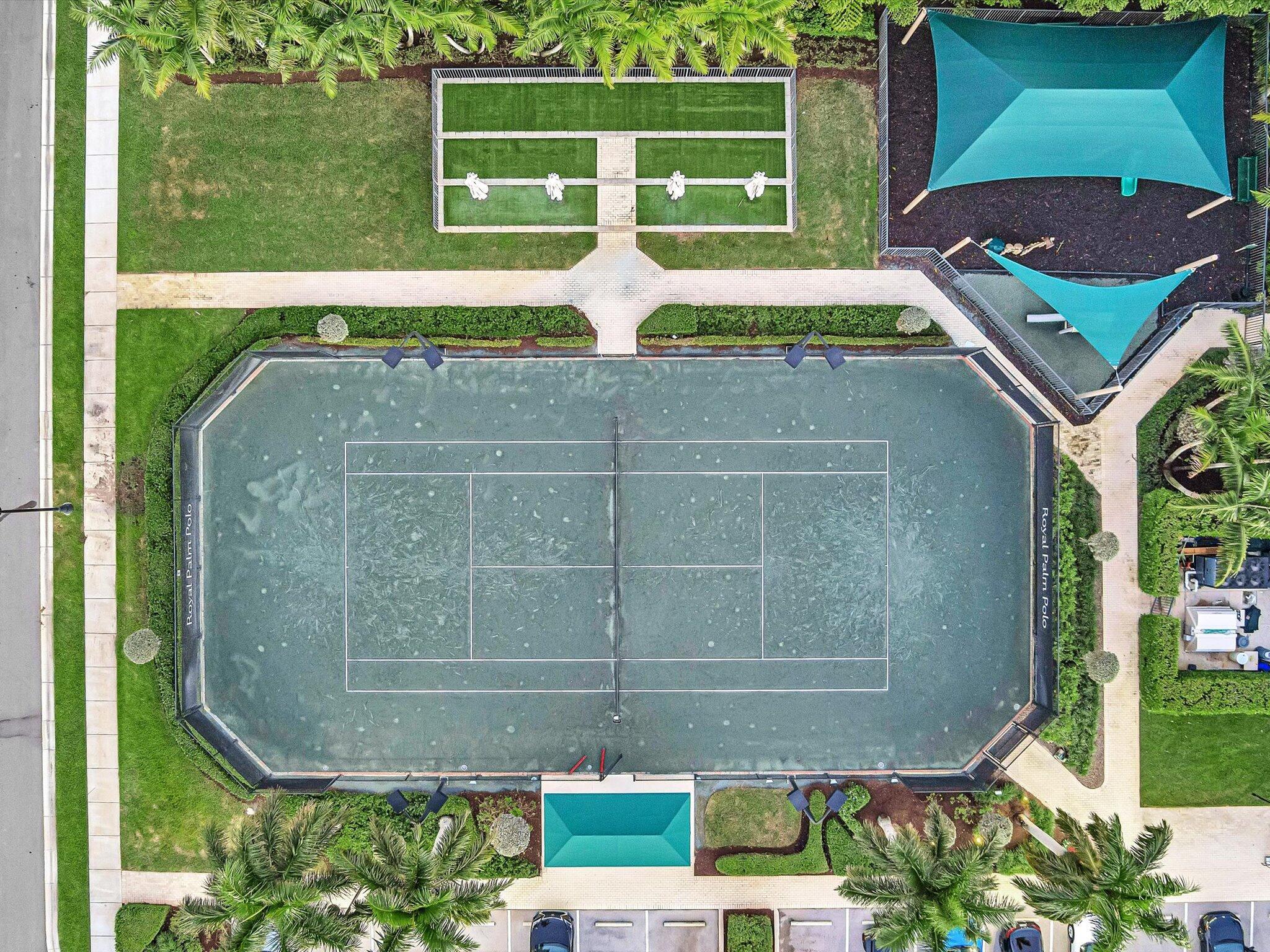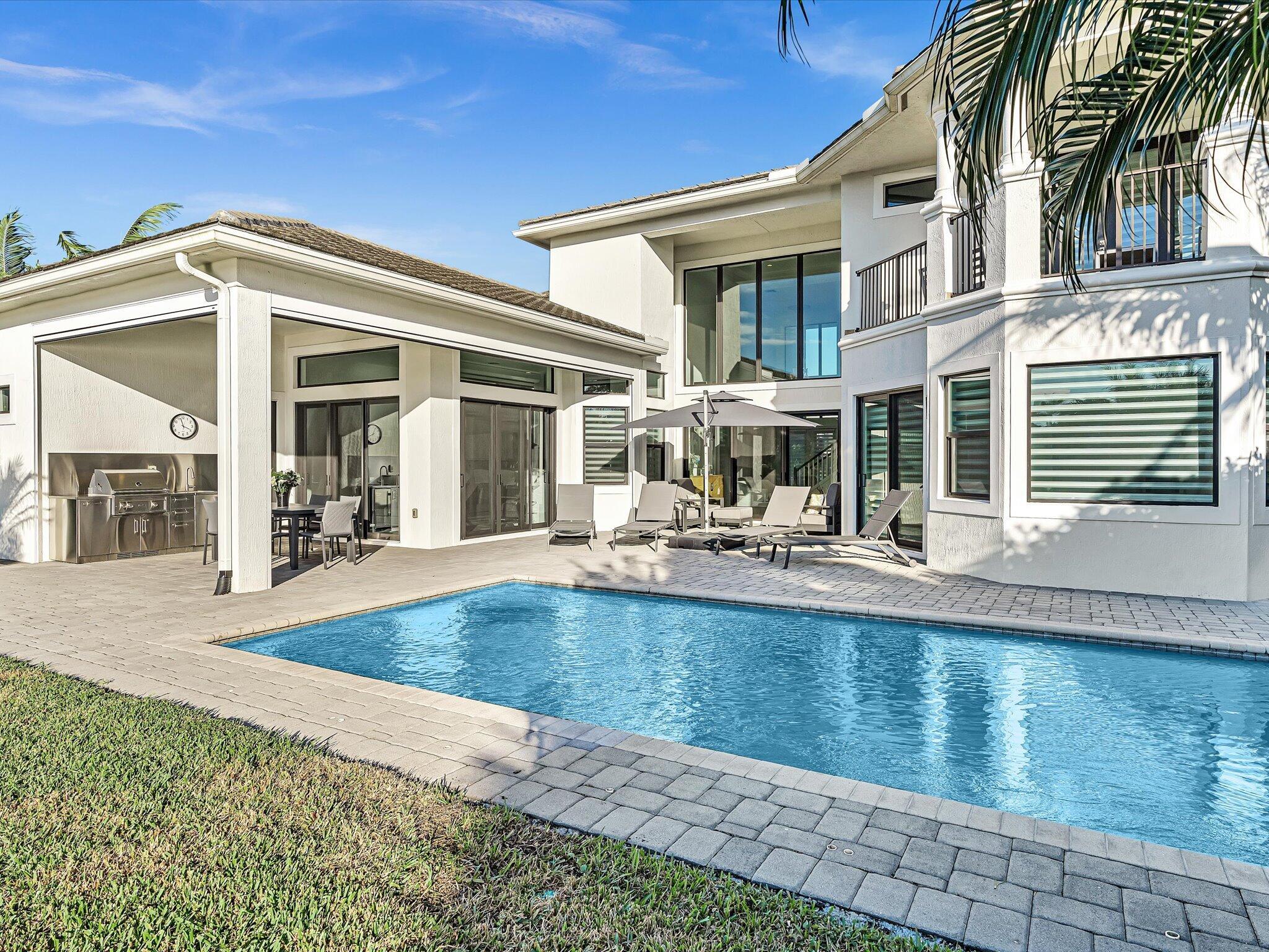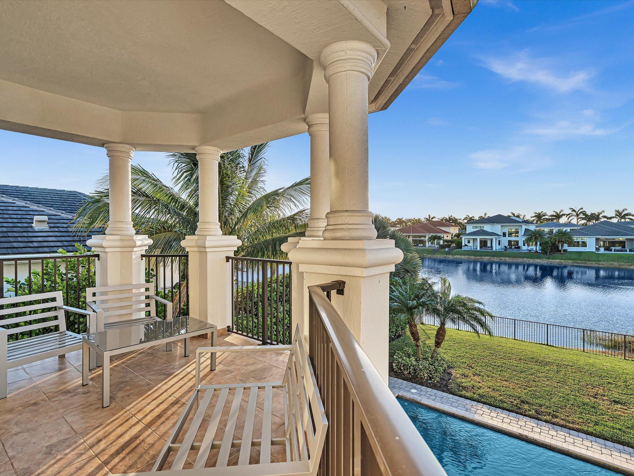 Welcome to Royal Palm Polo, a rare move-in ready Portland II estate home. This custom 4 bedroom residence offers a den, loft & 4.1 baths, along with a 3-car garage. The 1st-floor primary suite features a sunlit sitting area & two large walk-in closets.Porcelain tile throughout, chef's kitchen with Sub Zero refrigerator, Wolf appliances & a gas cooktop, the home has notable upgrades including a specialty summer kitchen, architectural light fixtures, quartz kitchen countertops, backsplash & more. The property features a stunning XL backyard with a beautiful view of the lake. Heated pool and electric patio screens. Residents can enjoy 24-hour man-gated security, an elegant clubhouse, fitness center, resort-style pool & spa, six Har-Tru tennis courts & various recreational amenities.