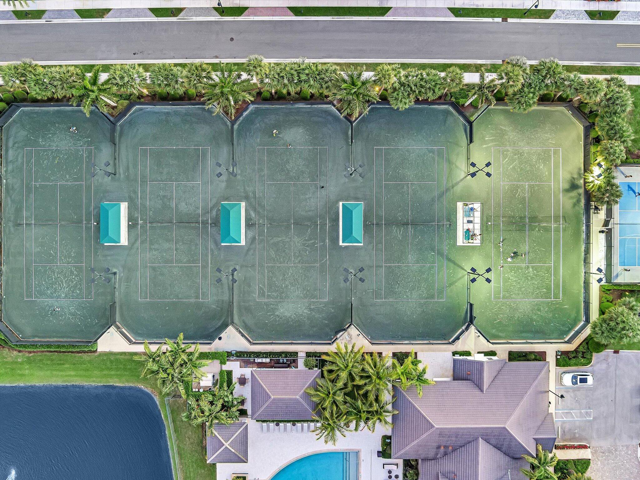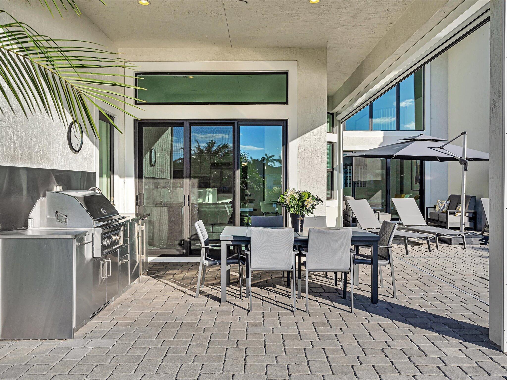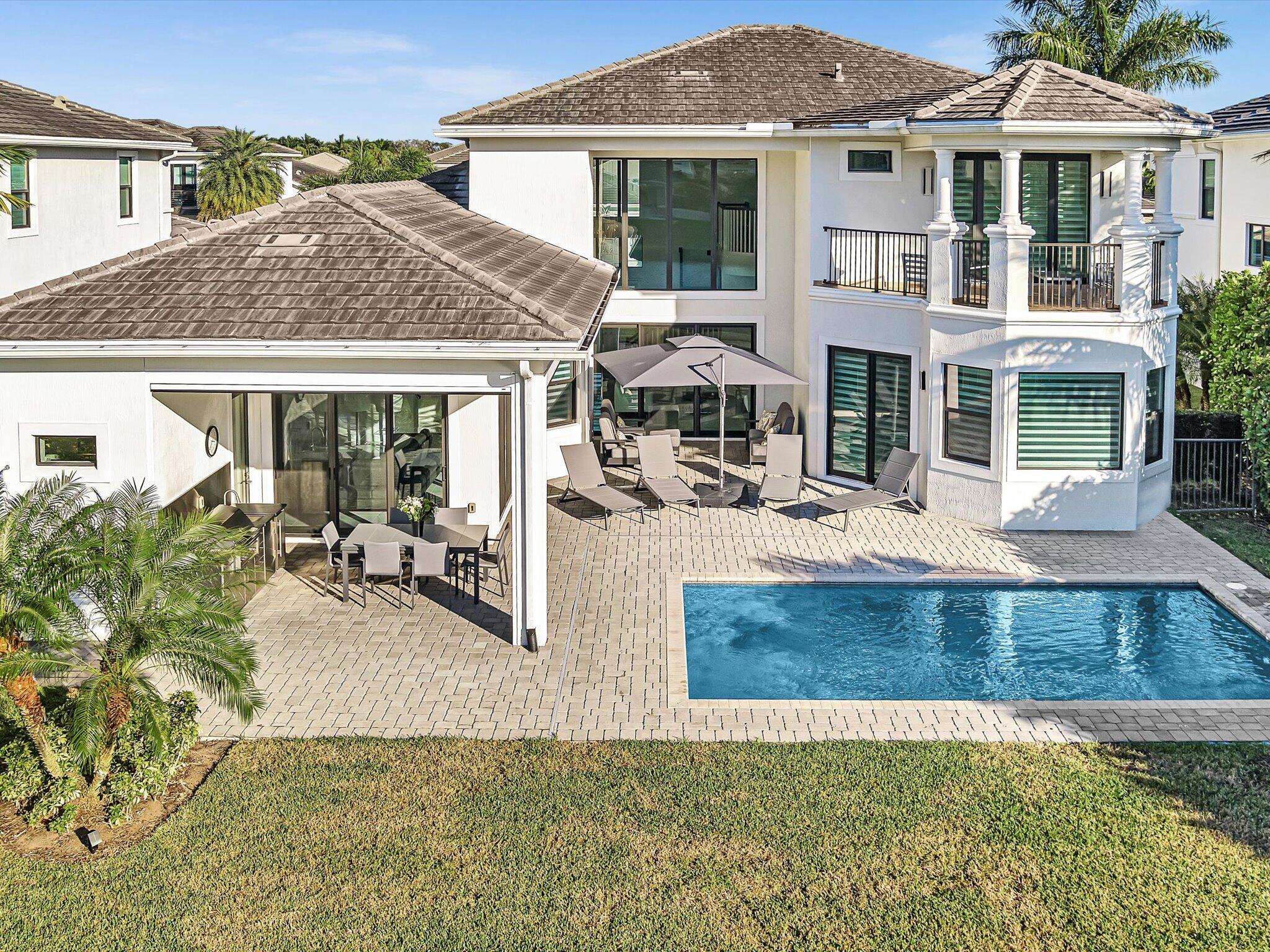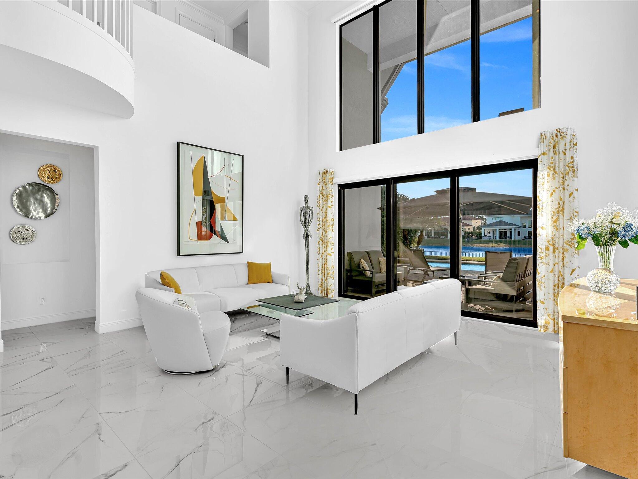 Welcome to Royal Palm Polo, a rare move-in ready Portland II estate home. This custom 4 bedroom residence offers a den, loft & 4.1 baths, along with a 3-car garage. The 1st-floor primary suite features a sunlit sitting area & two large walk-in closets.Porcelain tile throughout, chef's kitchen with Sub Zero refrigerator, Wolf appliances & a gas cooktop, the home has notable upgrades including a specialty summer kitchen, architectural light fixtures, quartz kitchen countertops, backsplash & more. The property features a stunning XL backyard with a beautiful view of the lake. Heated pool and electric patio screens. Residents can enjoy 24-hour man-gated security, an elegant clubhouse, fitness center, resort-style pool & spa, six Har-Tru tennis courts & various recreational amenities.