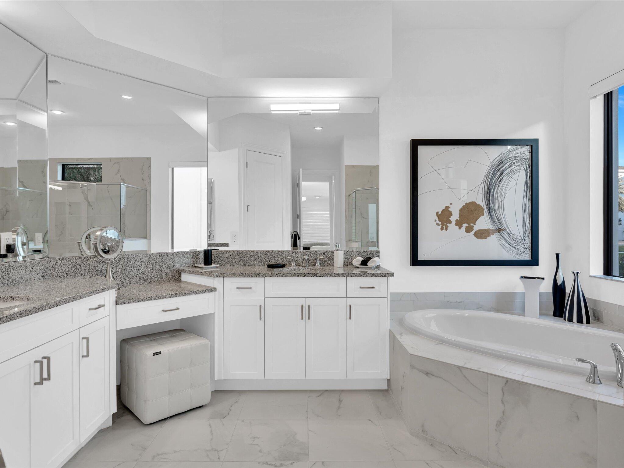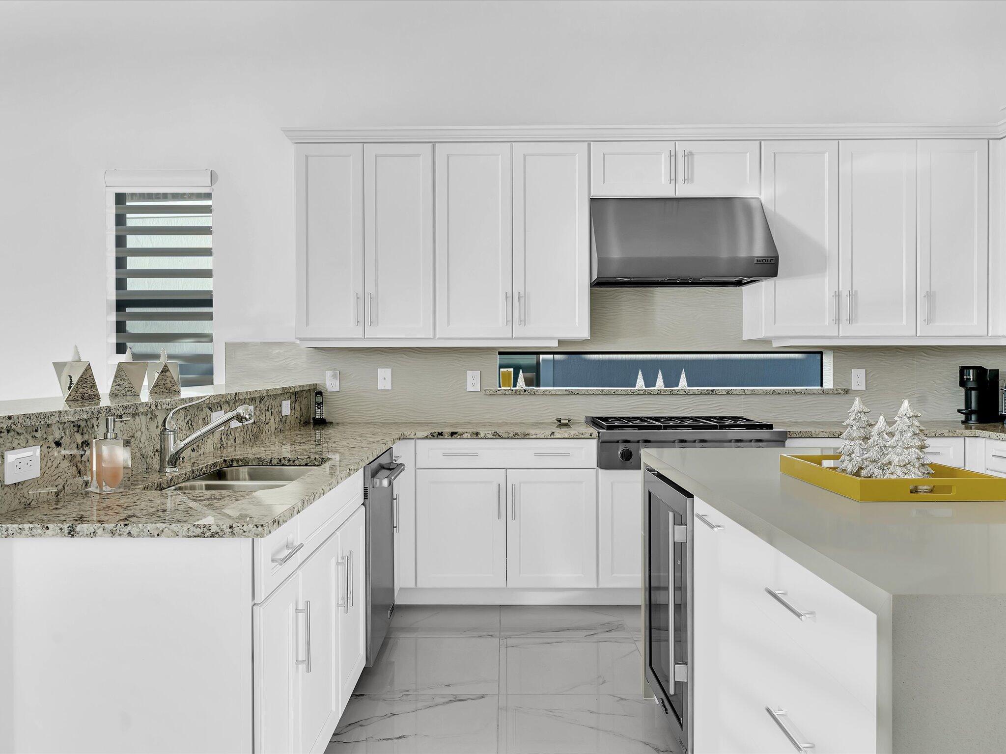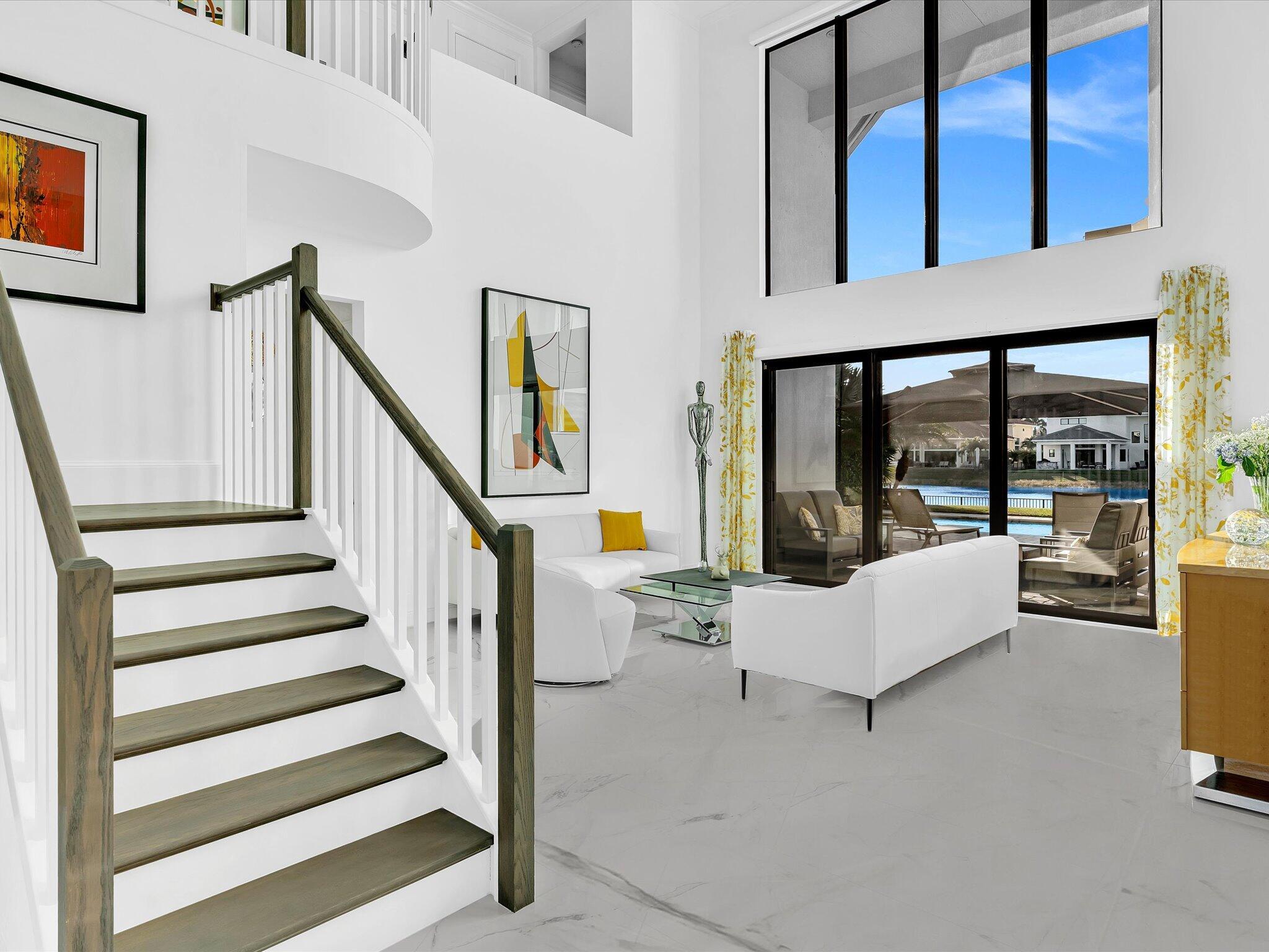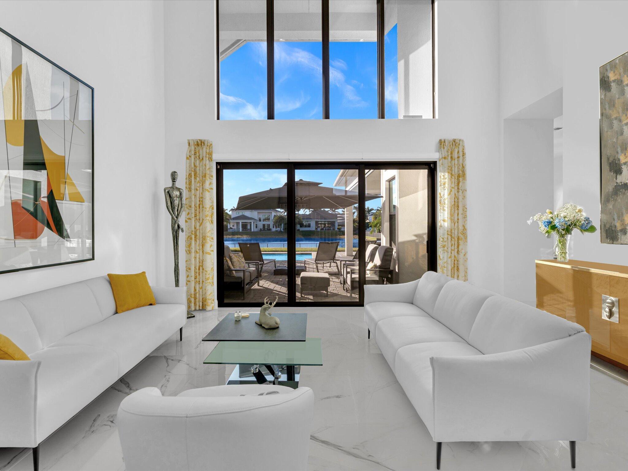 Welcome to Royal Palm Polo, a rare move-in ready Portland II estate home. This custom 4 bedroom residence offers a den, loft & 4.1 baths, along with a 3-car garage. The 1st-floor primary suite features a sunlit sitting area & two large walk-in closets.Porcelain tile throughout, chef's kitchen with Sub Zero refrigerator, Wolf appliances & a gas cooktop, the home has notable upgrades including a specialty summer kitchen, architectural light fixtures, quartz kitchen countertops, backsplash & more. The property features a stunning XL backyard with a beautiful view of the lake. Heated pool and electric patio screens. Residents can enjoy 24-hour man-gated security, an elegant clubhouse, fitness center, resort-style pool & spa, six Har-Tru tennis courts & various recreational amenities.
