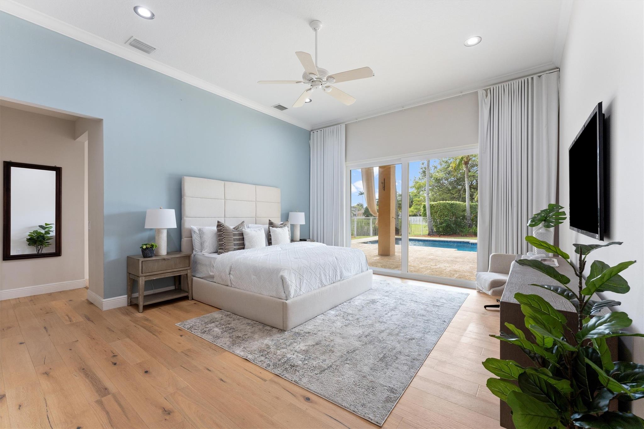 Absolutely stunning updated property that shows like a model. This large 4 bedroom 2.5 bath home sits on an oversized lakefront lot with over 11,625 SF of land offering lots of privacy. Newly installed porcelain tile plus new real wood floors in all bedrooms. Interior features Custom decorator touches through out with high volume ceilings and crown molding. Updated Bathrooms along with open Kitchen with large island, upgraded 42 inch cabinets and counters with stainless appliances. Exterior features spectacular heated pool and large patio area with gorgeous lake views. Huge custom covered area from builder, new impact windows and more! Community offers Guard gated, A+ schools, great recreation area, pools and amenities!