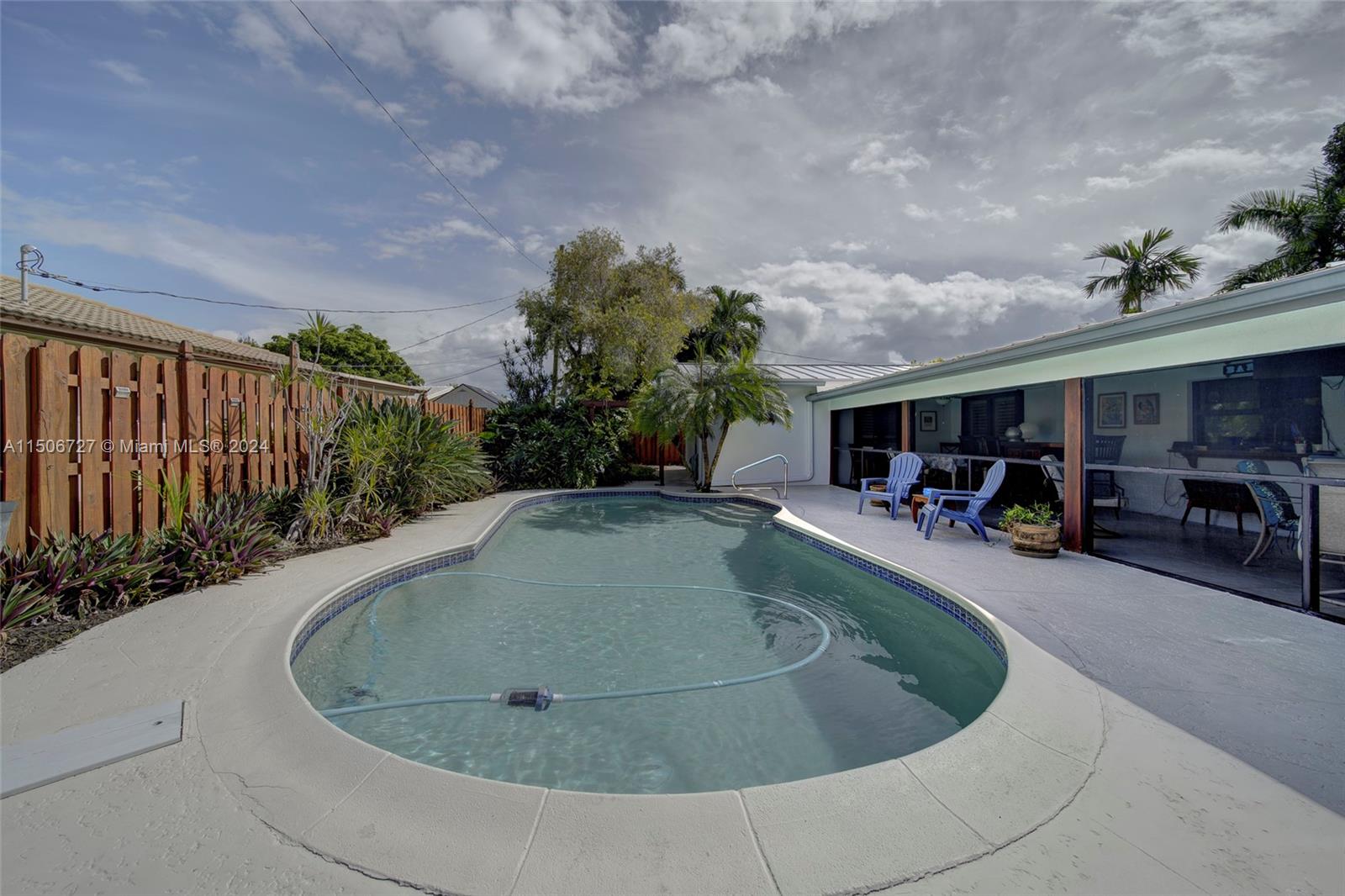 NO HOA! NO RENTAL RESTRICTIONS Absolutely Stunning Coral Ridge Home: Exceptionally Well-Maintained 2- Bedroom, 2-Bathroom Gem with Garage, Expansive Bedrooms, and a Spacious Eat-in Kitchen! The Master Suite features a Walk-in Closet and opens to a Deck overlooking a Gorgeous Landscaped Backyard, Enclosed by a Privacy Fence, and boasting a Glistening Diamond Brite Pool! This Residence has been recently enhanced with a brand-new Aluminum Roof, Impact Windows, and Doors. Plus, it's conveniently located near the Beach and I-95. Not to mention the bonus of a new water line from the Road to the House and elegant crown molding throug