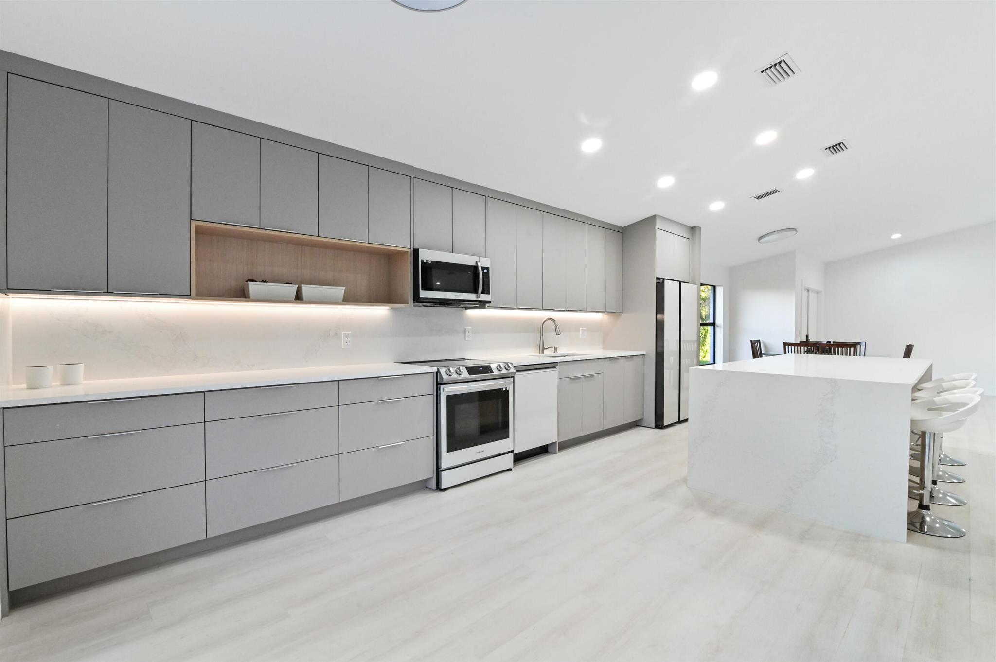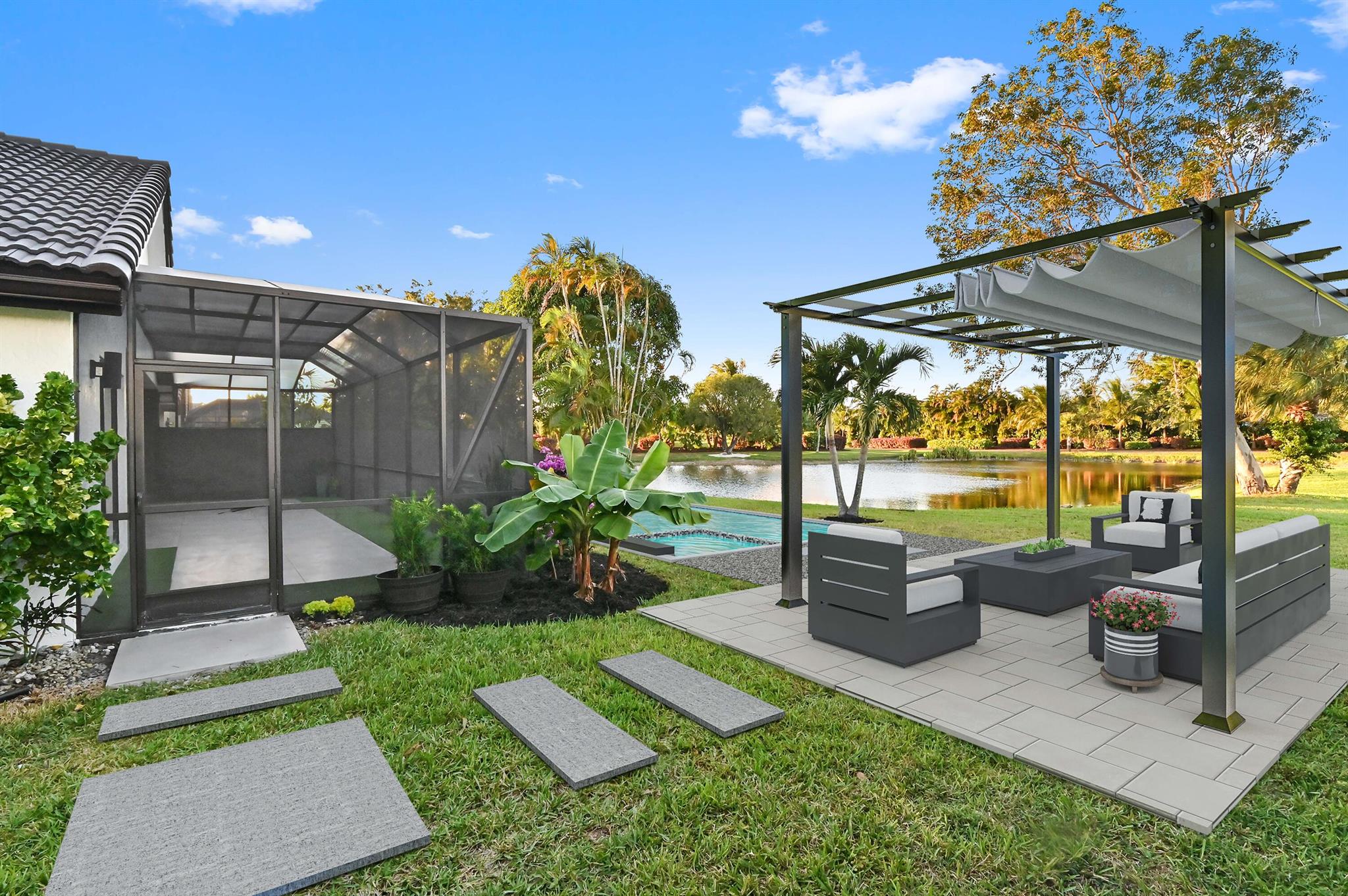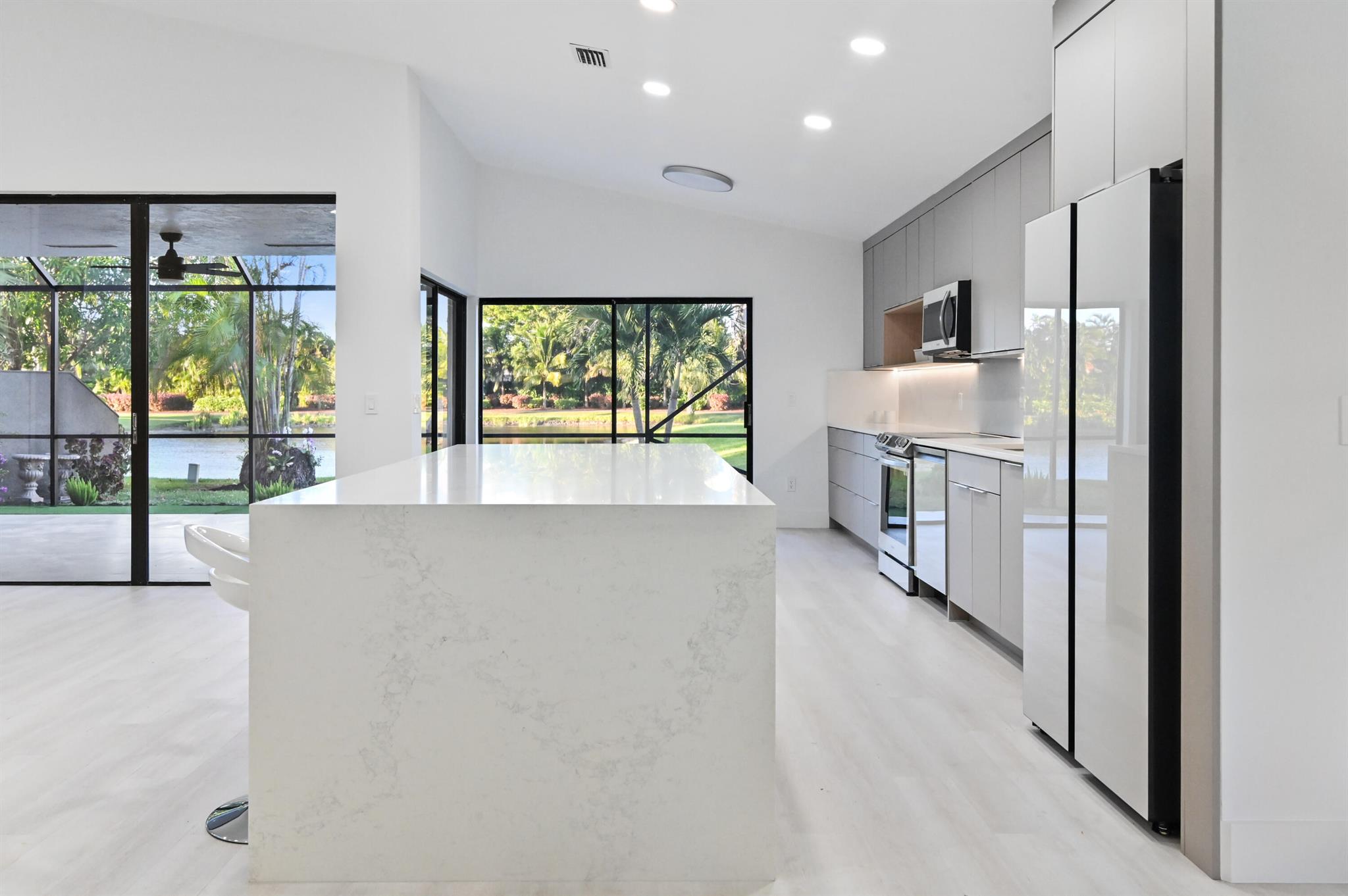 Introducing a fantastic house that's now available for listing in the prestigious Boca Woods Country Club! This fully renovated home by New Village, USA, boasts a spectacular lake view, providing a tranquil and serene atmosphere. You'll enjoy the added privacy of having no neighbors at the back or right side of the property. Inside, you'll find 3 spacious bedrooms and 2 luxurious bathrooms. The bathrooms are adorned with beautiful luxury tiles and feature elegant glass showers. The kitchen is a true highlight, featuring a quartz countertop, full backsplash, and a stunning waterfall island. Additionally, the kitchen and laundry areas are equipped with brand new Samsung appliances, ensuring convenience and efficiency. The living room is enhanced by a glass wood panel and includes a TV