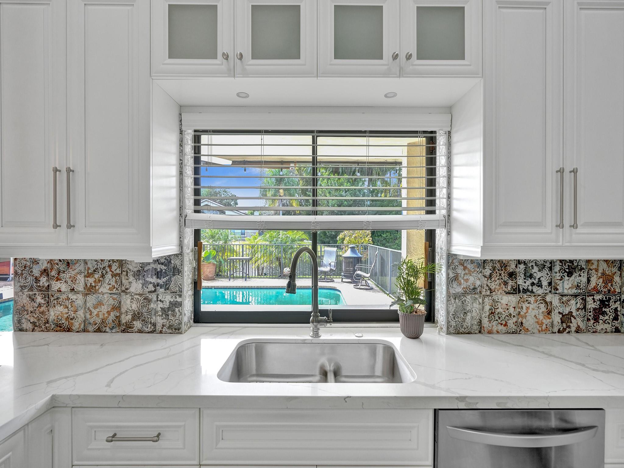 READY TO MOVE IN! Amazing waterfront/pool home located in prestigious Glen Isle. NO HOA fees/restrictions. Private cul-de-sac w/ 172' of shoreline with spectacular SW exposure and sunsets. Oversized 1/3 acre lot. Large home w/beautiful kitchen, quartz countertops & SS appliances. Open floor plan with soaring ceilings. Large master w/2 walk-in closets. Dual A/C Systems. Attic space. 2 car garage. 4 zone canal fed Auto Sprinkler System. New for 2023: Exterior restored & painted, 5ft Aluminum fence with 5 gates, many new exotic trees, shrubs & fruit trees. 6" gutters/downspouts. Popcorn ceilings removed, retextured, & painted. Pedestal double washer/dryer. 2 new Hurricane impact doors/2 hurricane impact windows and more. Check out the full list of updates in supplements.