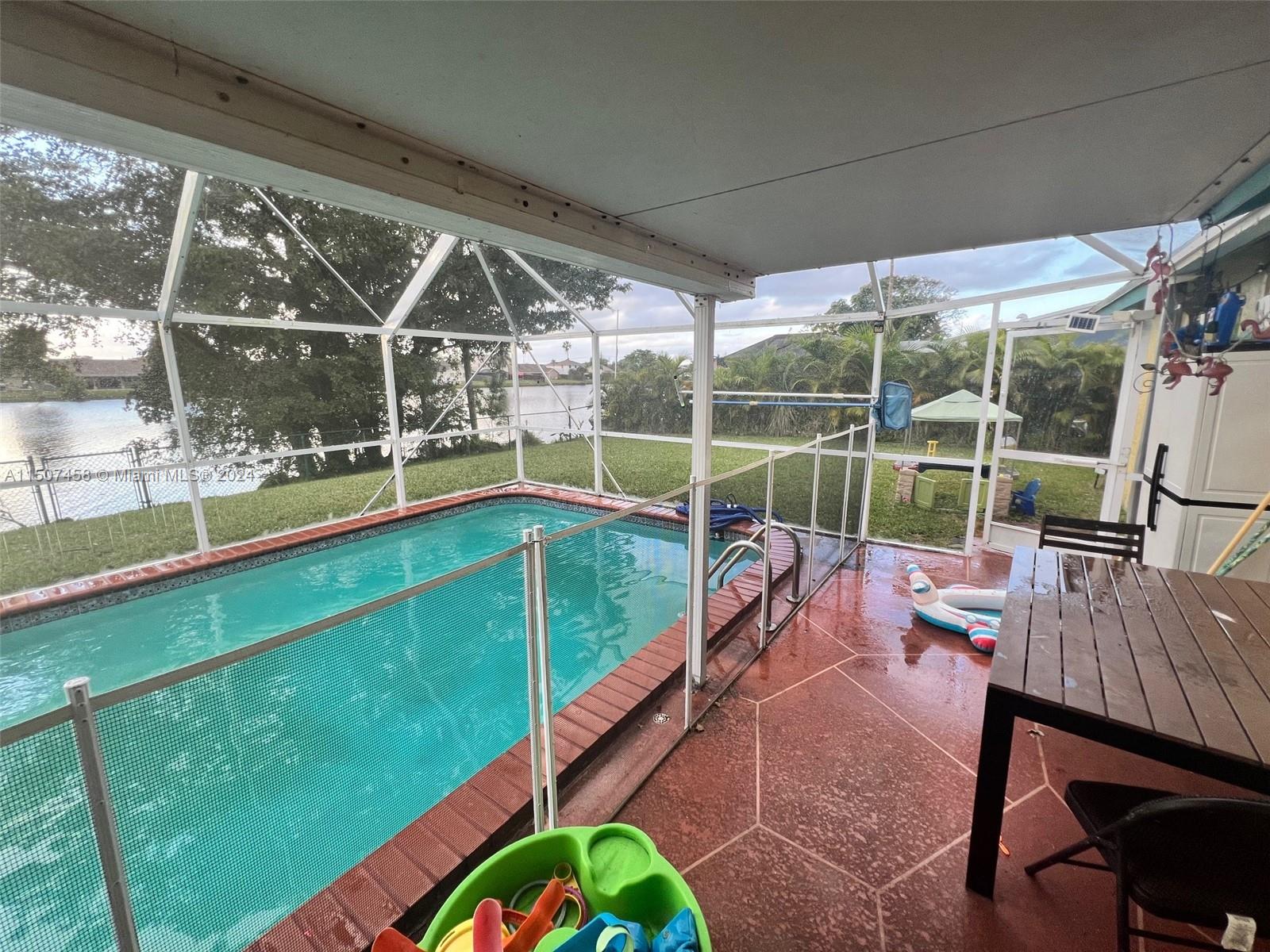 Breathtaking lake view from the screened pool area. Newer kitchen cabinets and refrigerator, hurricane proof windows, interior recently painted, bathroom shower, tub and toilets replaced, vaulted ceiling in living room and dining room, 6 ceiling fans, pool safety gate, outside shed, fenced yard, 1 car garage converted to an extra bedroom (4th), extra refrigerator staying.. Perfect location to watch the sunsets!