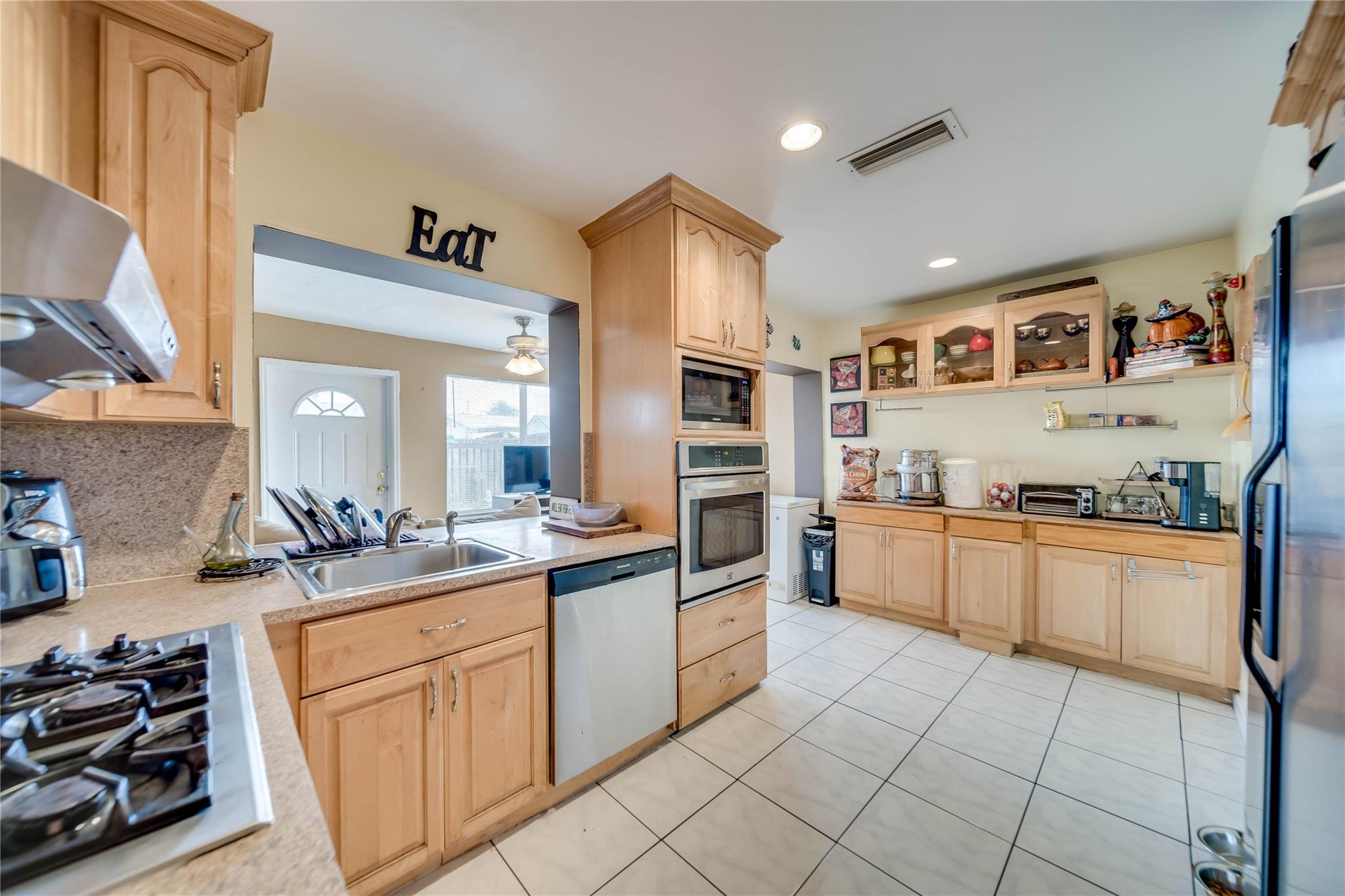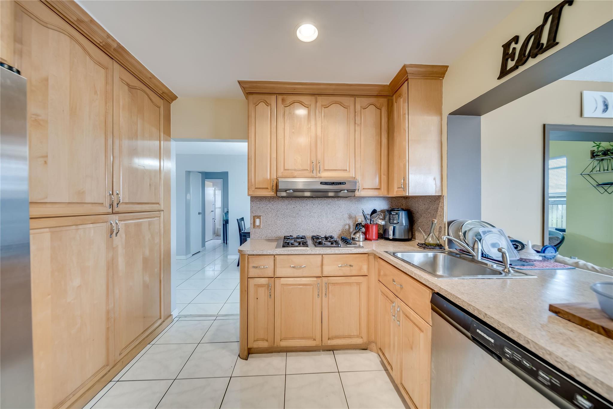 Brilliantly Spacious and Charming Home with Fenced-In Backyard! Tucked away in a sought-after area, this 3BR/2BA, 1,432sqft residence captures attention with a classic stucco exterior, beautiful driveway, and neighborly sidewalks. Impressively maintained, the interior features gleaming tile flooring, soft natural light, luminous sunroom, sizeable living room, and an updated kitchen with stainless-steel appliances, stylish counters, gas range, and wall oven. Thoughtfully fenced-in for ultimate privacy, the backyard oasis boasts a concrete patio, greenspace, mature trees, and a built-in BBQ All three bedrooms are perfectly sized, while the primary bedroom also has an en-suite. Other features: attached garage, laundry area, near schools, shopping, and restaurants, and more! Call for a tour!