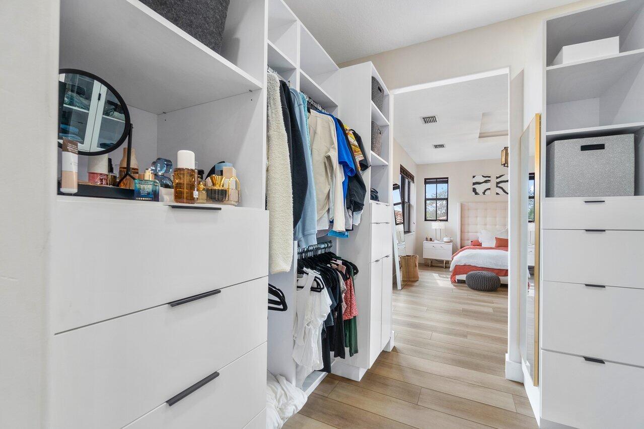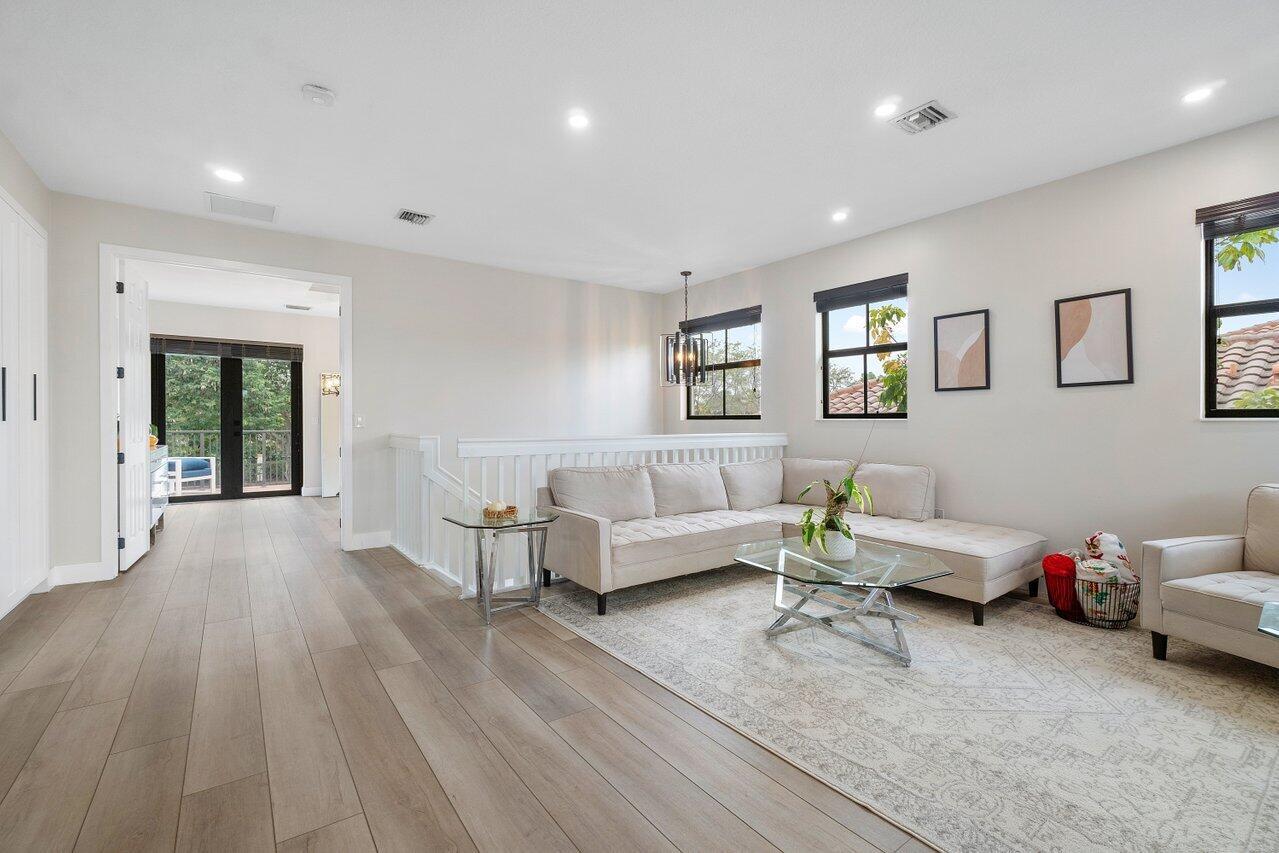 Discover luxury living in the heart of Monterra with this breathtaking 4-bed, 3-bath single-family home. Immerse yourself in the allure of its fully remodeled interior, boasting a guest room downstairs with a stunning bathroom featuring black cabinets, quartz countertops, a frameless shower, and a single mosaic tile floor. The custom-built bar adjacent to the formal dining room sets the stage for the true masterpiece - the kitchen. Revel in the beauty of floor-to-ceiling wood cabinets, a sprawling 19+ feet island, Tuscan SS appliances, a floating ceiling, and Quartzite counters. Natural light floods through impact windows, offering picturesque views of the heated, saltwater pool. Upstairs, a loft and a thoughtfully designed split layout of three bedrooms, along with custom shoe and master