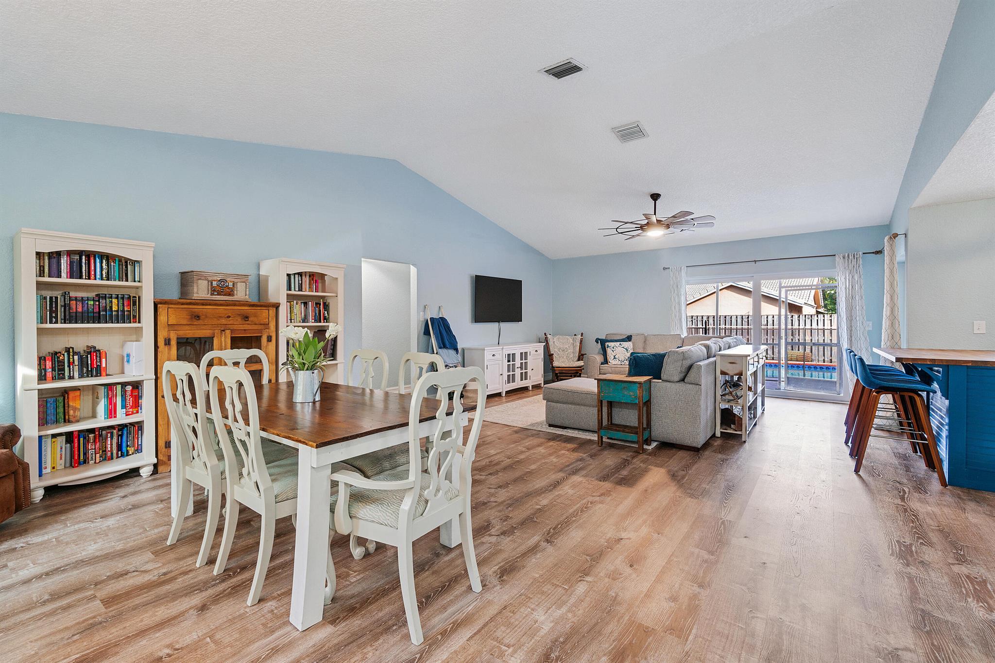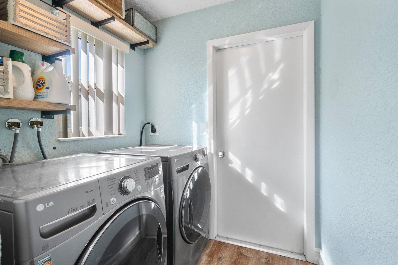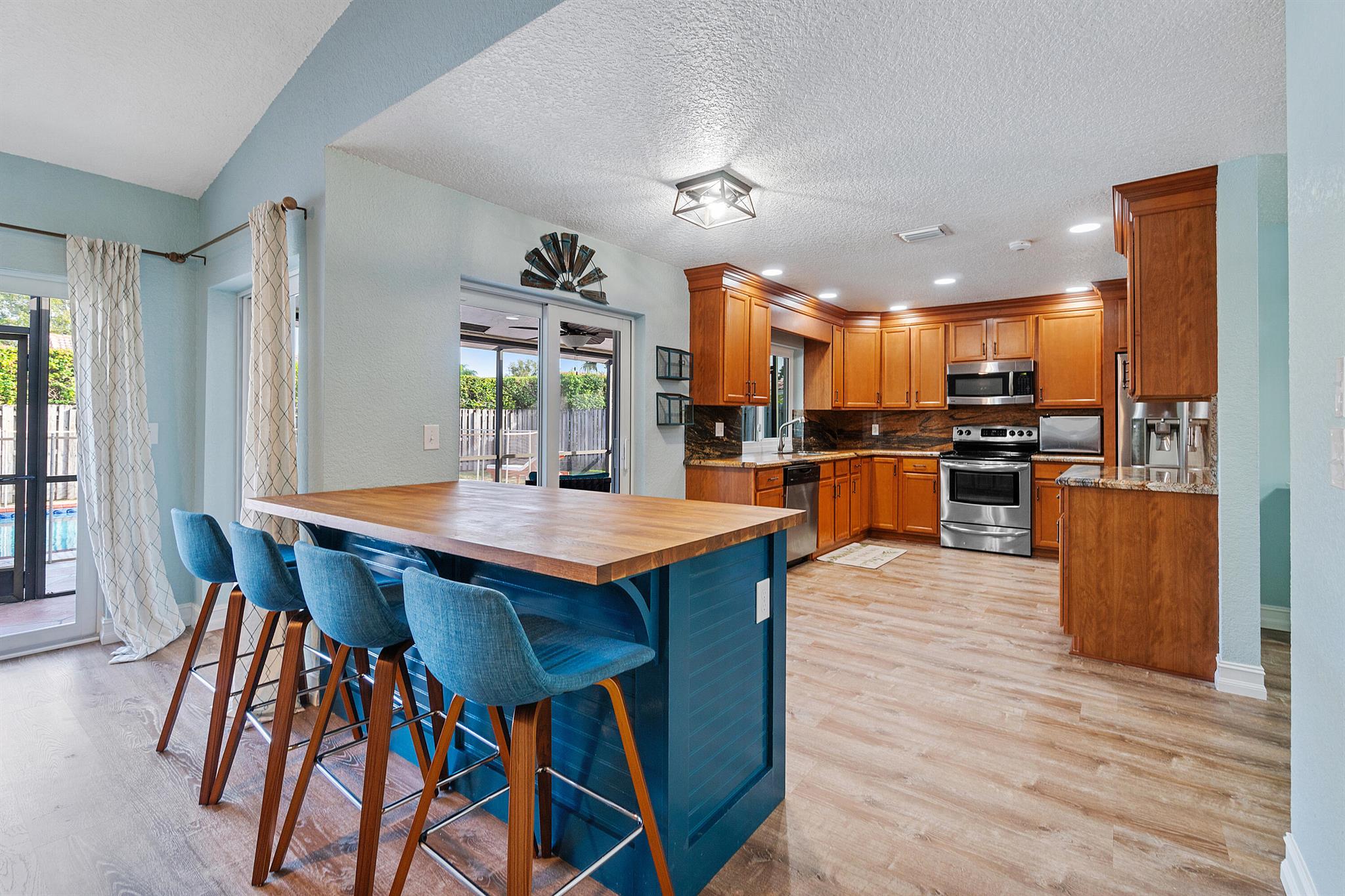 This stunning 4 bedroom, 2 bathroom single family home is located in a peaceful non-HOA community on a tranquil street. As you approach the property, you'll be greeted by a spacious driveway that can easily accommodate multiple vehicles.Step inside and be amazed by the updated flooring that flows throughout the home, creating a modern and inviting atmosphere. The kitchen is a true chef's delight, boasting sleek counter tops, stainless steel appliances, and ample cabinet space for all your culinary needs.Custom made butcher block peninsula built in closets in every room and pantry. As well as, hurricane proof windows and sliders throughout the home. Cozy up in the master bedroom which features a cabana bath and sliders!