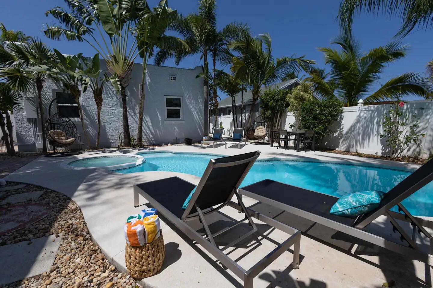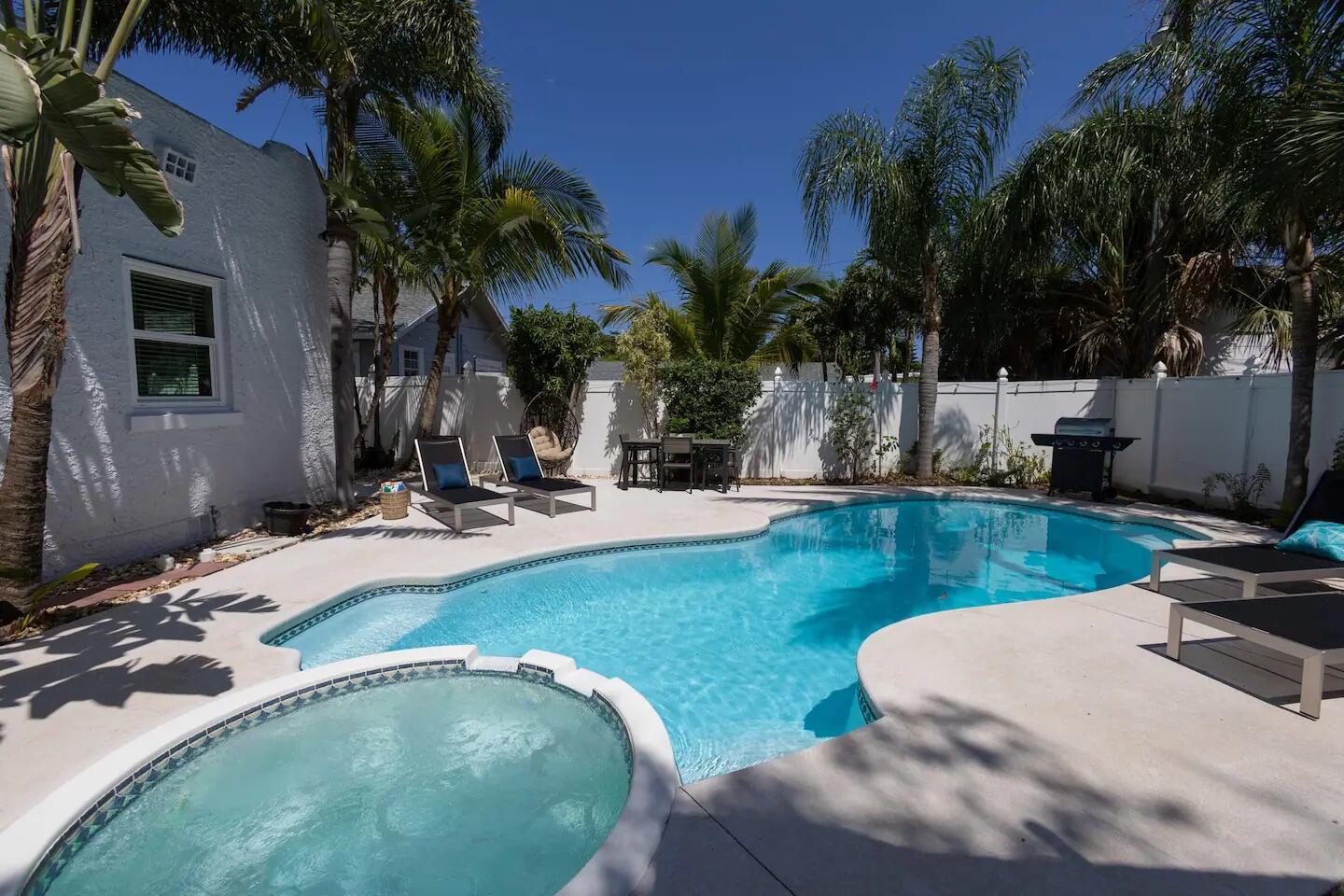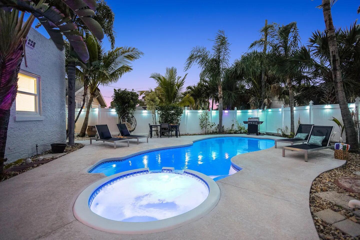 Meticulously renovated Spanish Mission-style beach home, fully furnished for your immediate enjoyment.This 3 Bedroom, 2 Bathroom residence was originally built in 1926, this historic home showcases a seamless blend of Mediterranean Revival and Mission Revival architecture. While preserving its original character, the interior has been thoughtfully revitalized with chic furnishings and contemporary luxuries, creating an atmosphere perfectly suited to a relaxed and modern lifestyle.