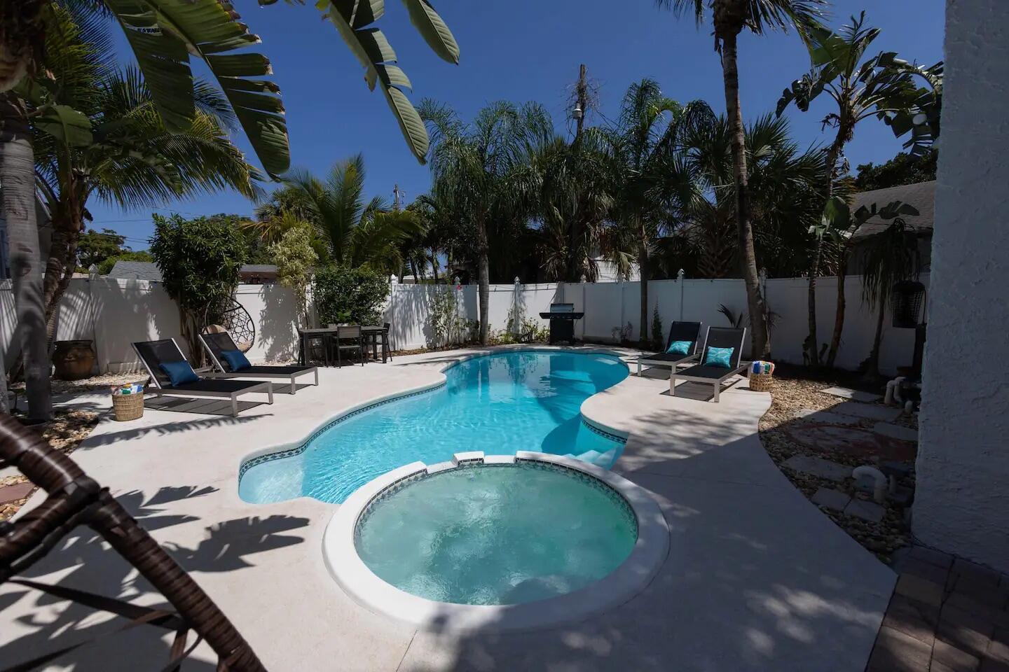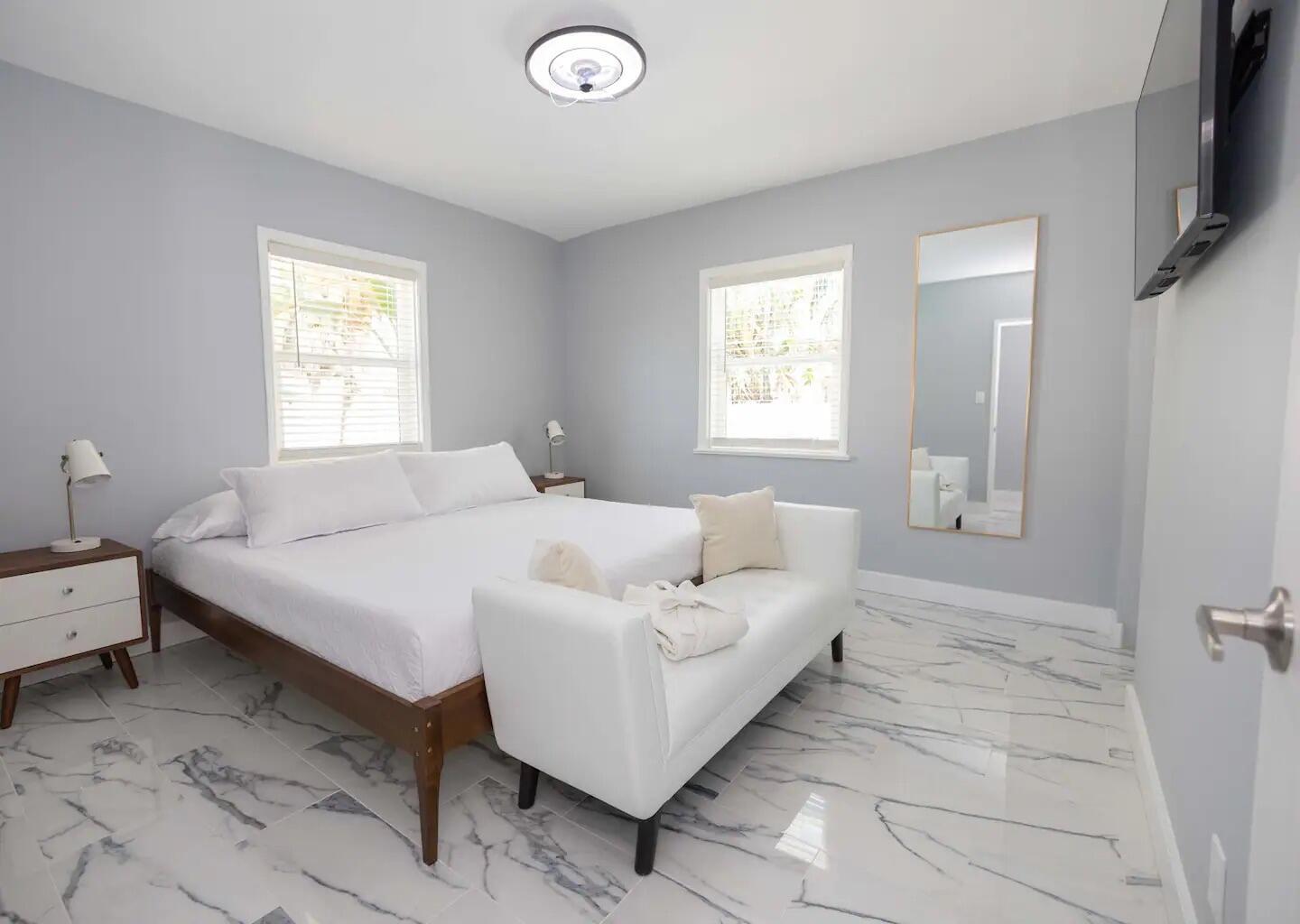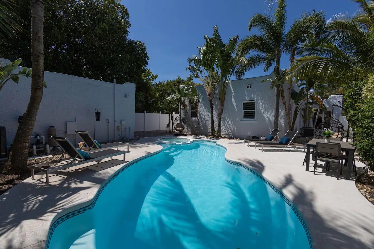 Meticulously renovated Spanish Mission-style beach home, fully furnished for your immediate enjoyment.This 3 Bedroom, 2 Bathroom residence was originally built in 1926, this historic home showcases a seamless blend of Mediterranean Revival and Mission Revival architecture. While preserving its original character, the interior has been thoughtfully revitalized with chic furnishings and contemporary luxuries, creating an atmosphere perfectly suited to a relaxed and modern lifestyle.