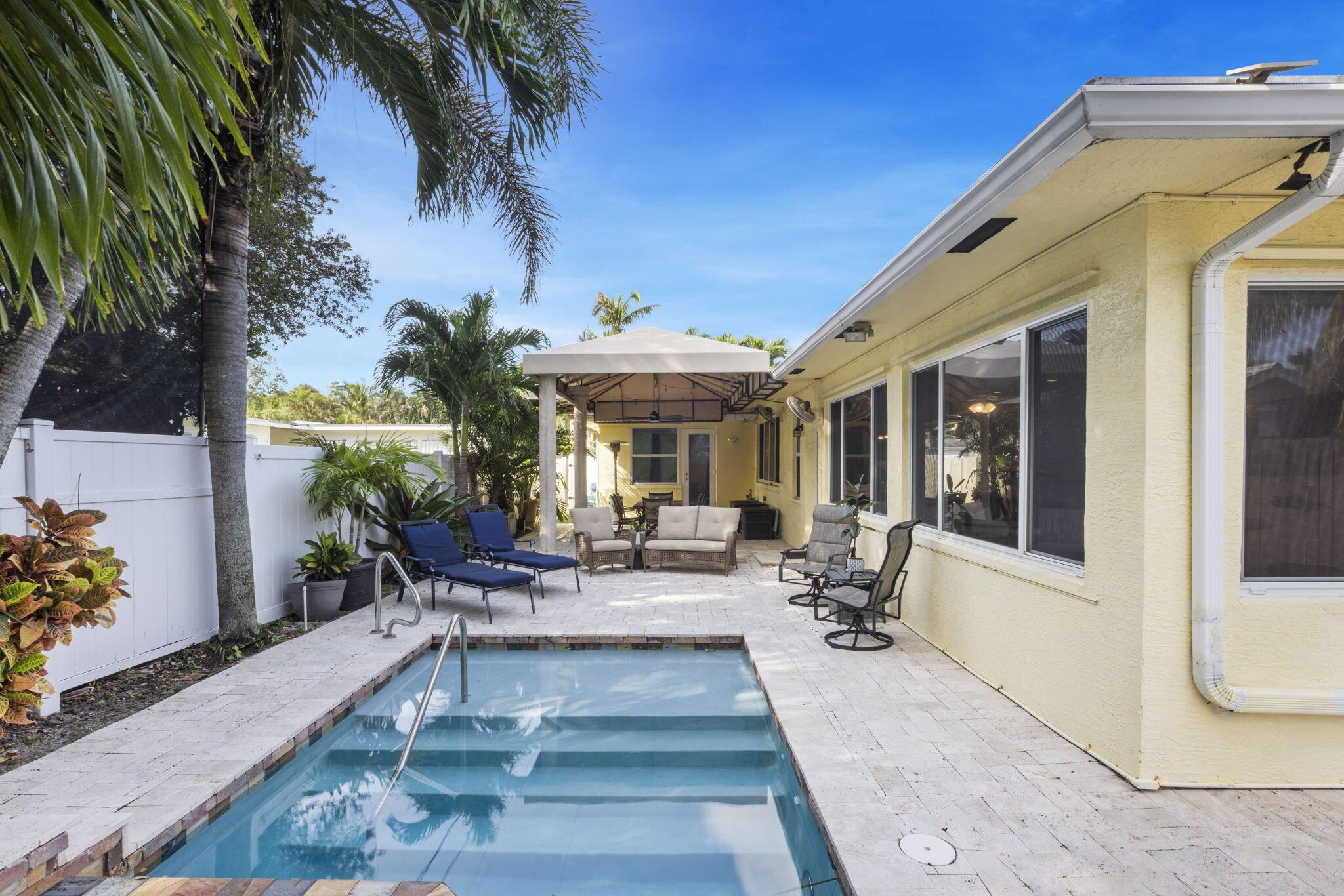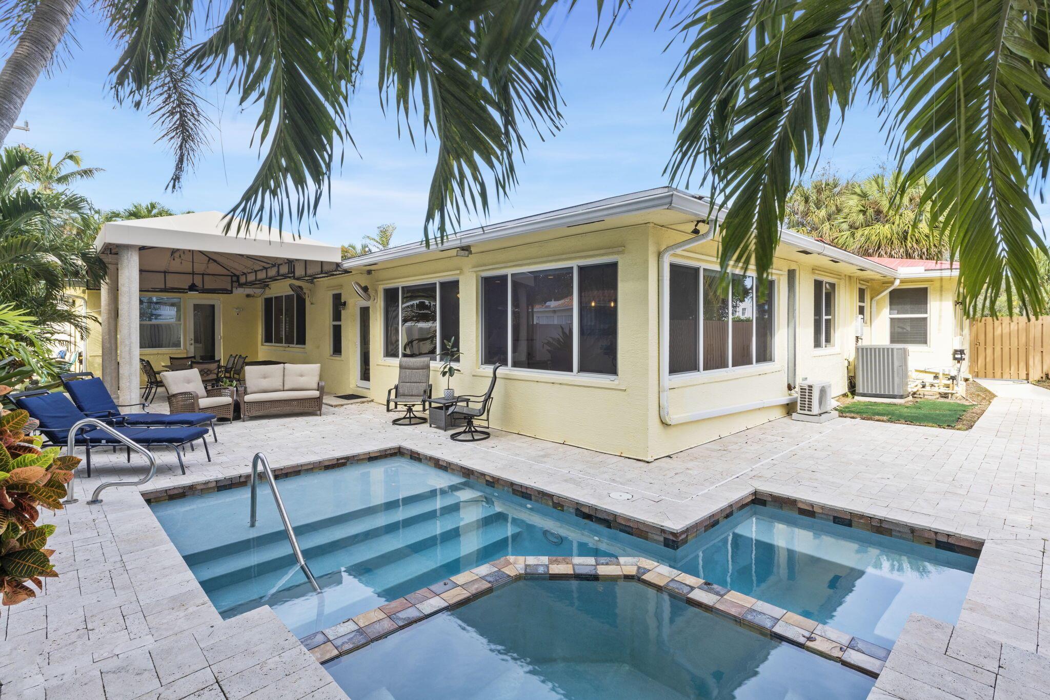 Welcome to this expansive and beautifully appointed Northwood home! This residence exudes sophistication and classic charm. Generously sized living spaces effortlessly cater to everyday life and entertaining. The main house features 3 beds and 2 baths, complemented by two 1 bed/1 bath studios. The open floor plan allows flexibility in room utilization. Large windows bathe the interiors in natural light, enhancing the inviting atmosphere. Noteworthy features include a home generator, new metal roof, well, irrigation pump, hurricane impact windows, and a saltwater heated pool. Two Airbnb units, totaling 5 bedrooms, offer investors a chance to diversify portfolios. Whether for Airbnb income or personal use, this remarkable property near the beach, PBI, and downtown WPB awaits your enjoyment!