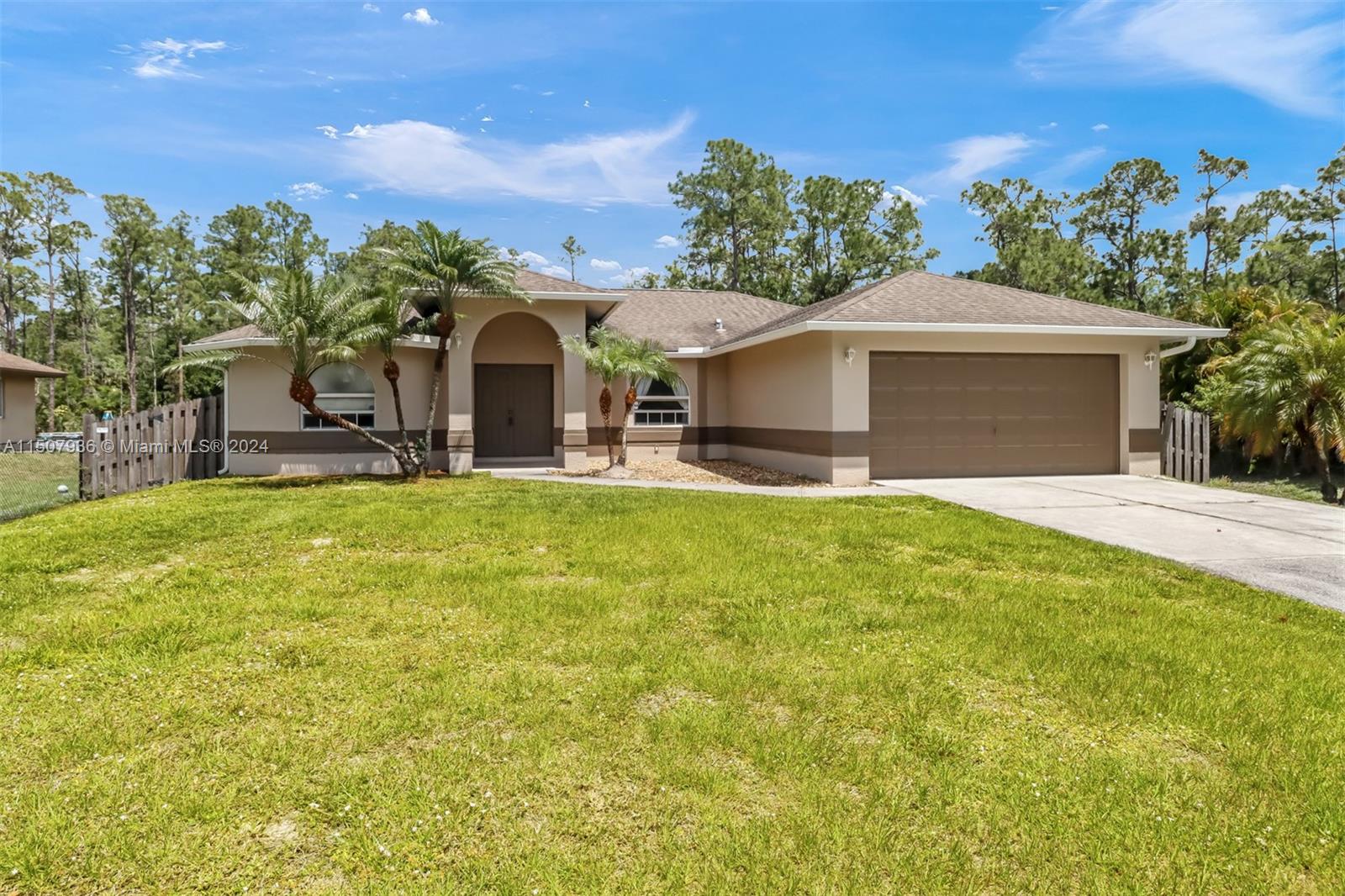 BRAND NEW ROOF to be completed May 2024. This home is situated on over 1 acre of private land. It’s a 3-bed, 2-bath residence offering over 1700 square feet of living space & desirable features. You'll be greeted by a spacious open floor plan that seamlessly connects the living & dining areas, creating a welcoming space for gatherings & relaxation. The kitchen boasts sleek appliances, adding a touch of modern style. The primary bedroom is a true retreat, complete with a separate tub & shower, his & her sinks, & a generous walk-in closet. The double front doors enhance the curb appeal, while the screened-in back patio & fully fenced backyard offer a private outdoor oasis. With its expansive lot & comfortable living space, this home is perfect for those seeking a peaceful retreat.