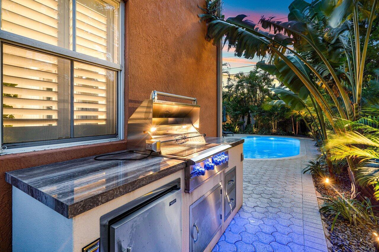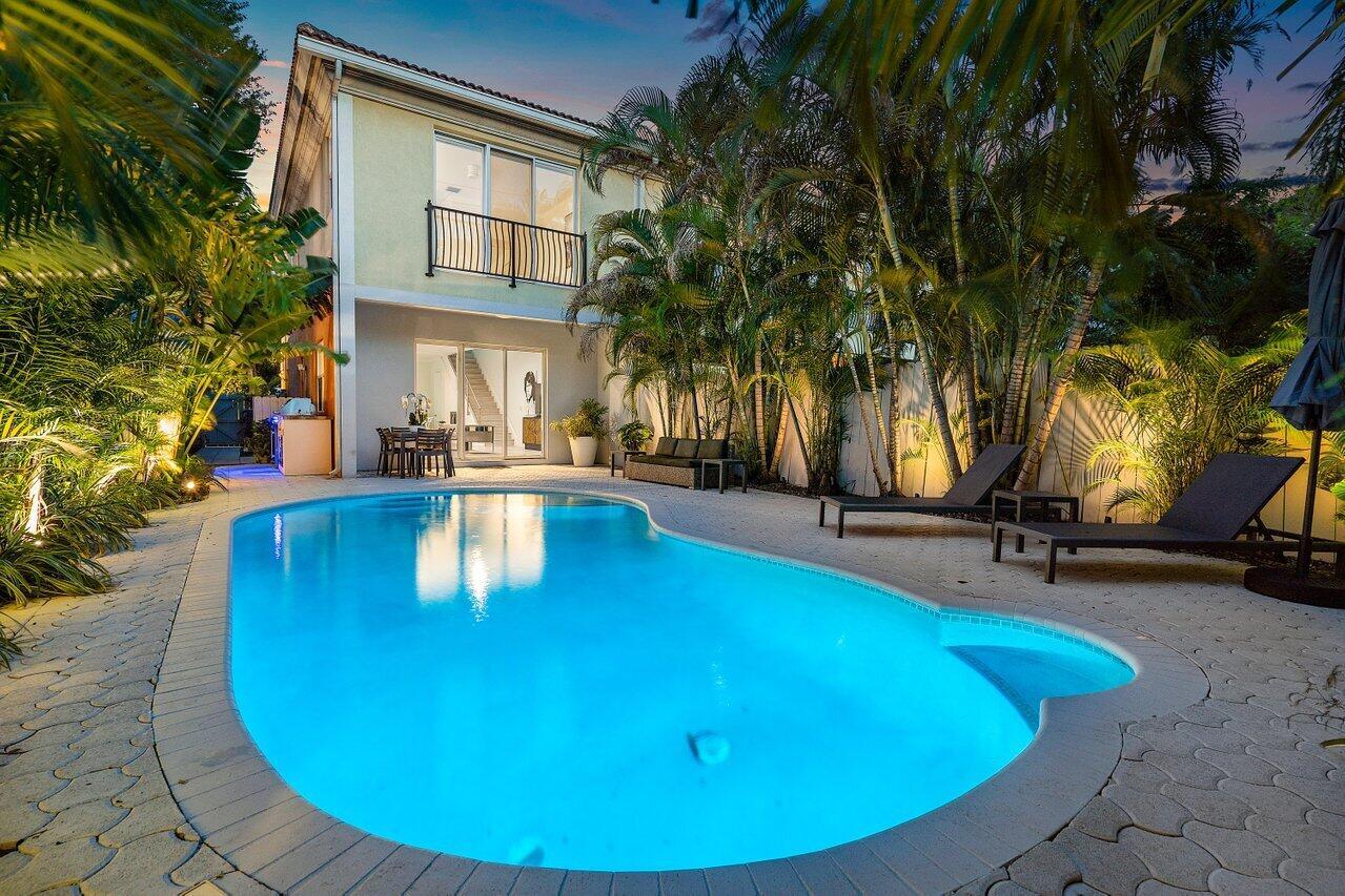 Renovated contemporary 2 story townhome with outdoor space in sought after Lake Ridge neighborhood. Large private saltwater pool with outdoor kitchen grill. Corner unit offers abundant natural light. Updated modern bathrooms. Engineered hardwood and marble flooring. Updated kitchen with granite counters and backsplash, stainless appliances and wine fridge. Separate indoor laundry room. Impact windows and doors throughout. New hot water heater. One car attached garage. Lush landscaping. No HOA, so easy move in and no monthly fees. Quiet neighborhood convenient to Wilton Manors, Las Olas, US1 and the Beach.