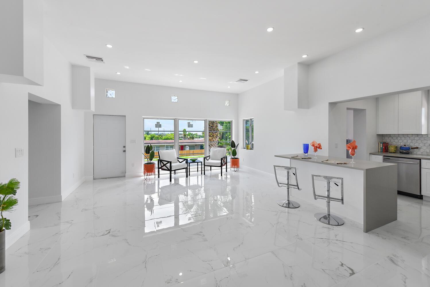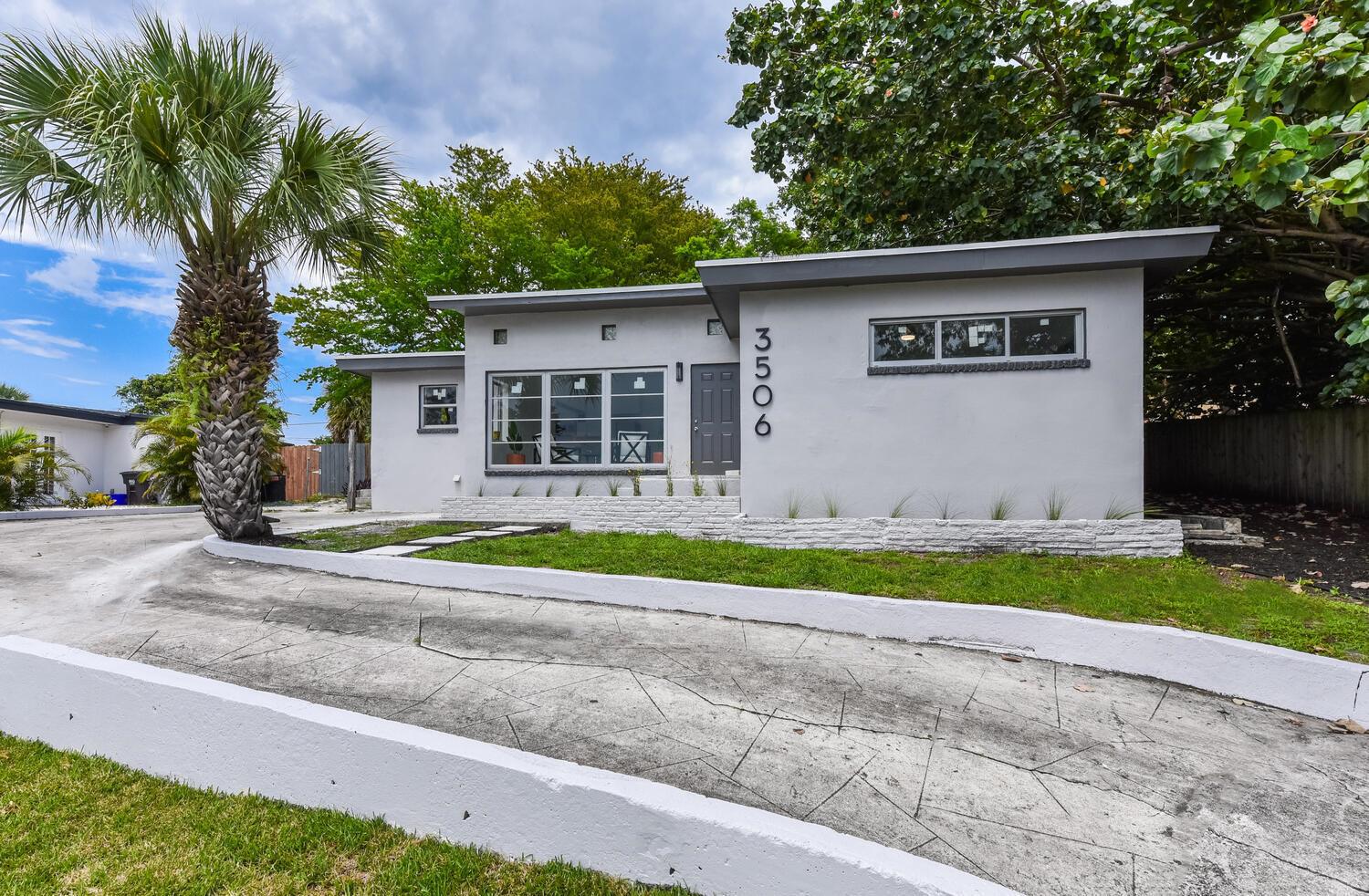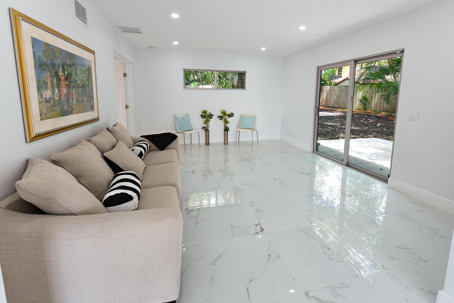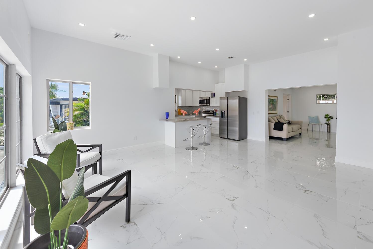 Enjoy sunsets through your enormous picture window from one of the highest sitting houses in WPB. NEW PERMITTED EVERYTHING: new roof, impact windows, electric, plumbing, AC and ducts, tile floors-all with permits. Soaring 10' ceilings in the open, sunny 21.5' long living room. The kitchen has new soft-close cabinets, beautiful quartz counters and Samsung SS appliances. Enter the large master bedroom through French doors. The master bathroom is a spa retreat with an 8' long shower complete with rain head and bench. Walk outside through sliders in the master bedroom or family room to your new patio and large backyard surrounded by mature shade trees. This hilltop jewel sits on almost 1/4 acre in historic Northwood Hills close to beaches, downtown and Rybovich. Buyer must confirm measuremts.