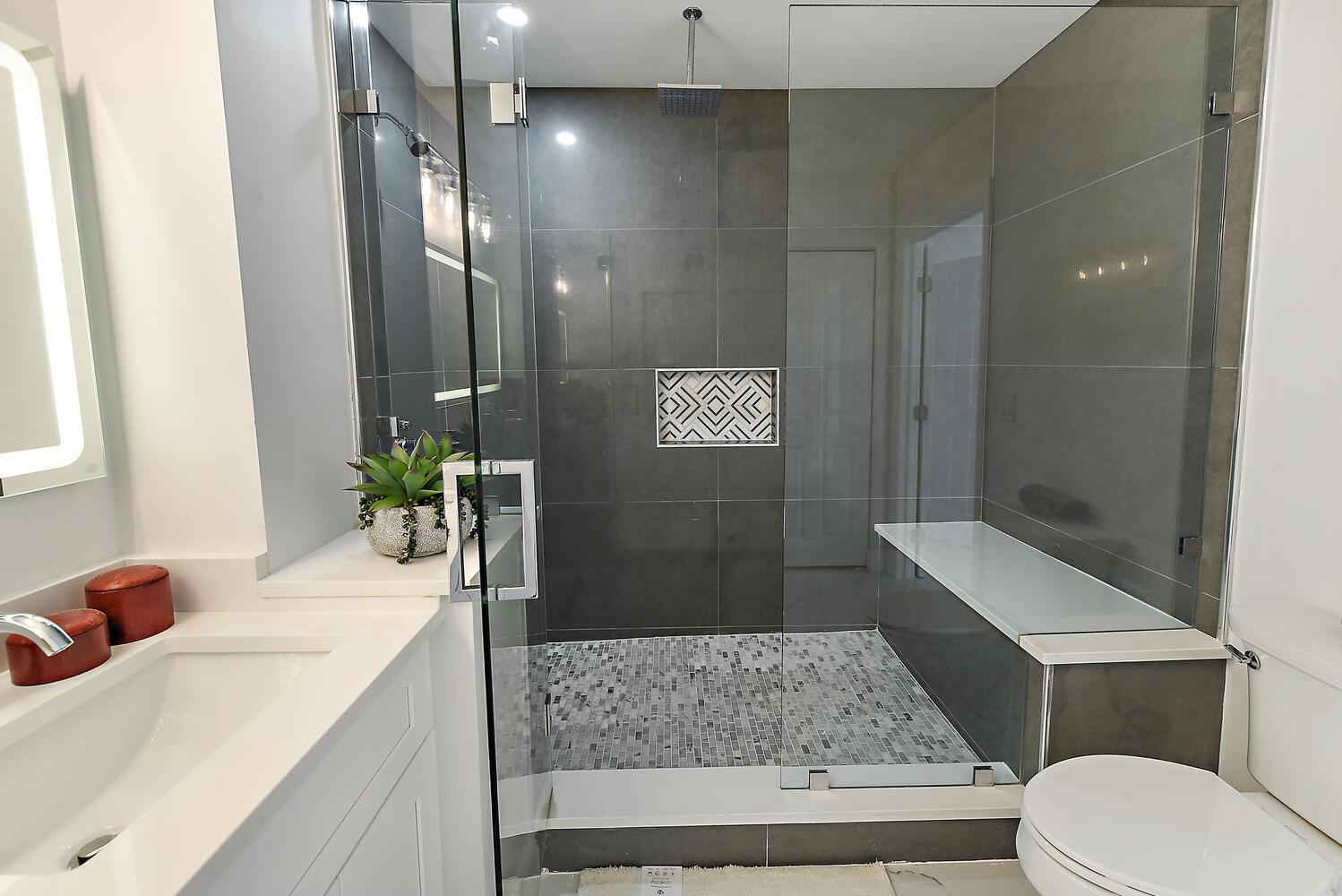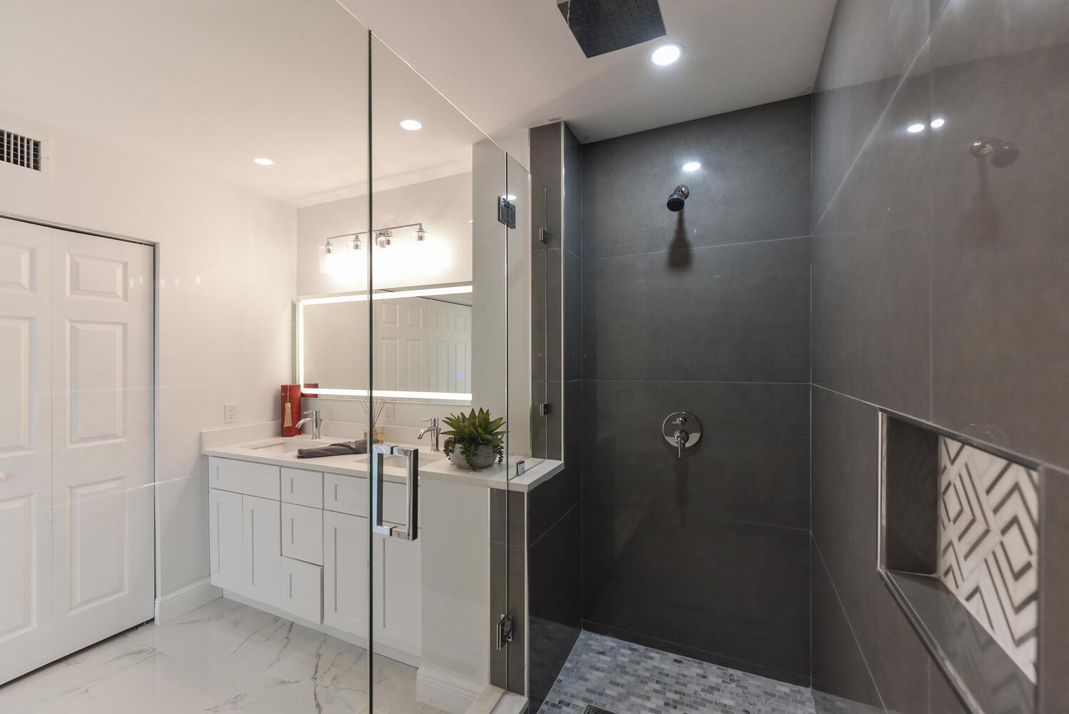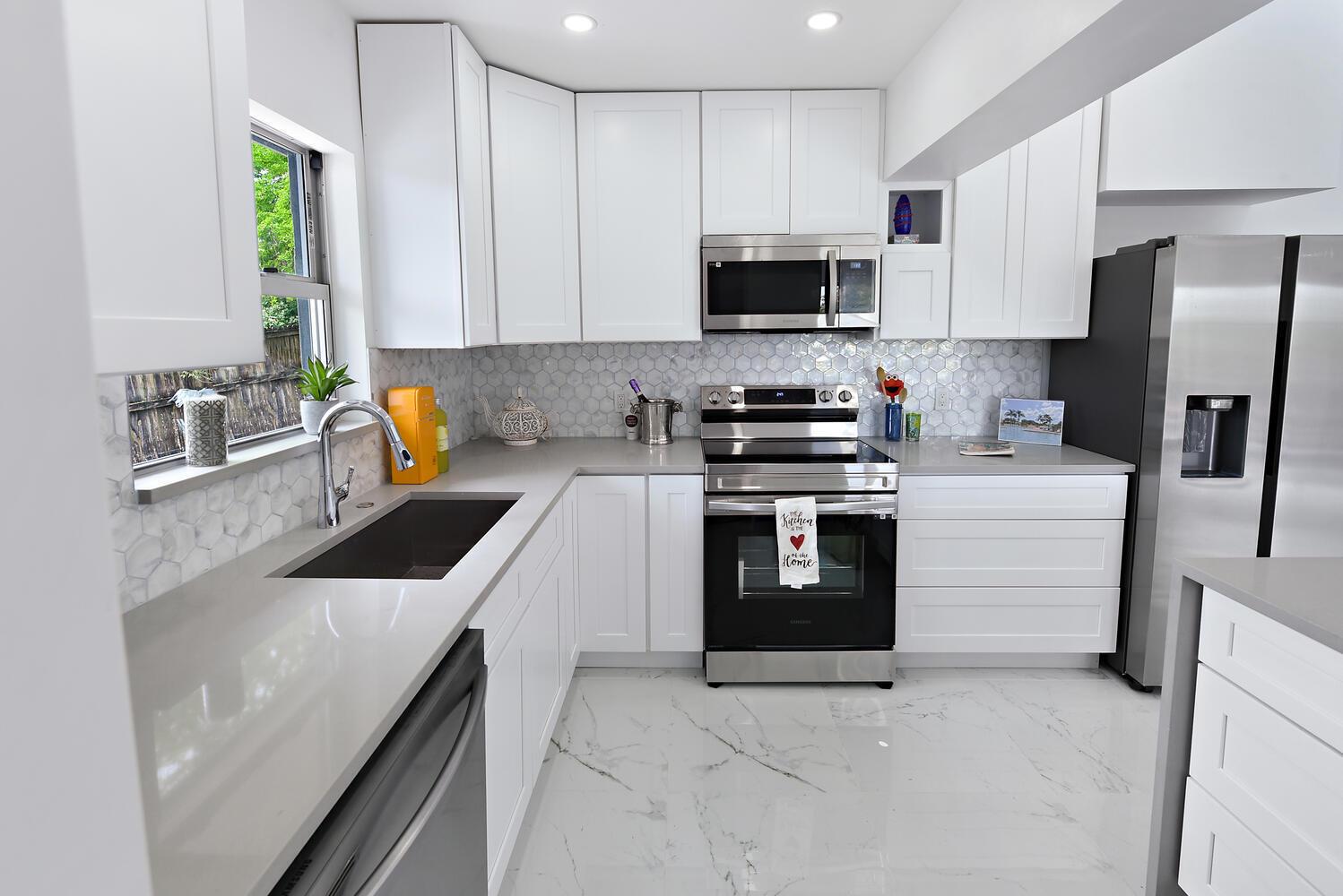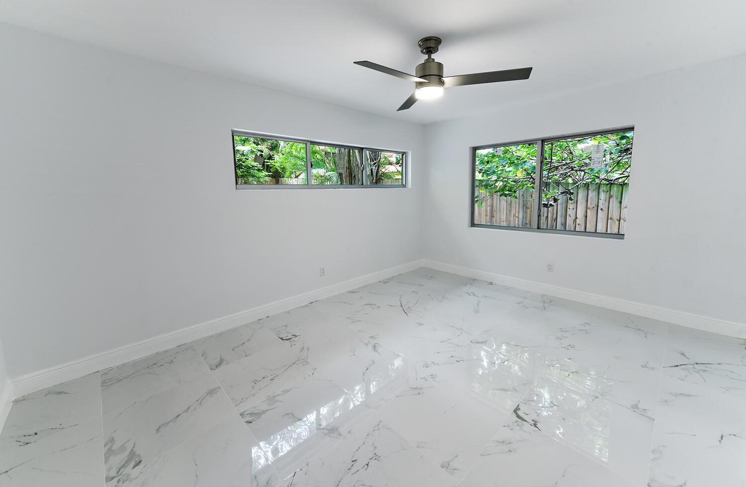 Enjoy sunsets through your enormous picture window from one of the highest sitting houses in WPB. NEW PERMITTED EVERYTHING: new roof, impact windows, electric, plumbing, AC and ducts, tile floors-all with permits. Soaring 10' ceilings in the open, sunny 21.5' long living room. The kitchen has new soft-close cabinets, beautiful quartz counters and Samsung SS appliances. Enter the large master bedroom through French doors. The master bathroom is a spa retreat with an 8' long shower complete with rain head and bench. Walk outside through sliders in the master bedroom or family room to your new patio and large backyard surrounded by mature shade trees. This hilltop jewel sits on almost 1/4 acre in historic Northwood Hills close to beaches, downtown and Rybovich. Buyer must confirm measuremts.