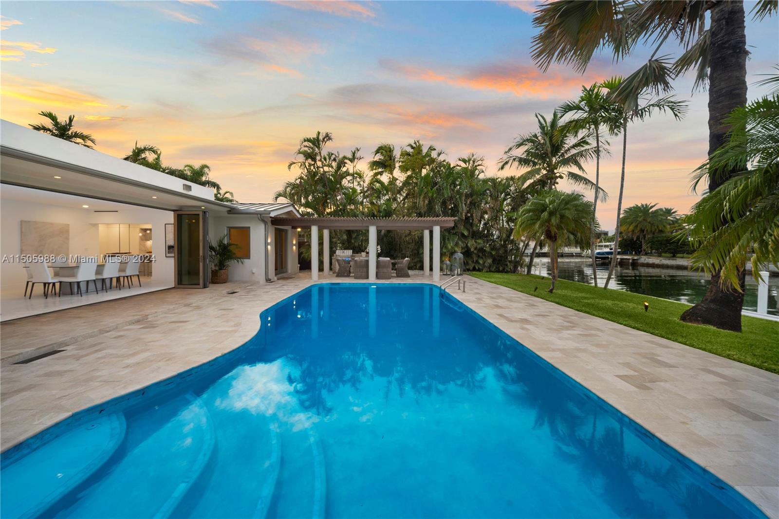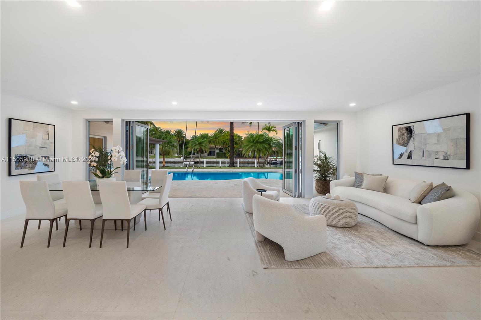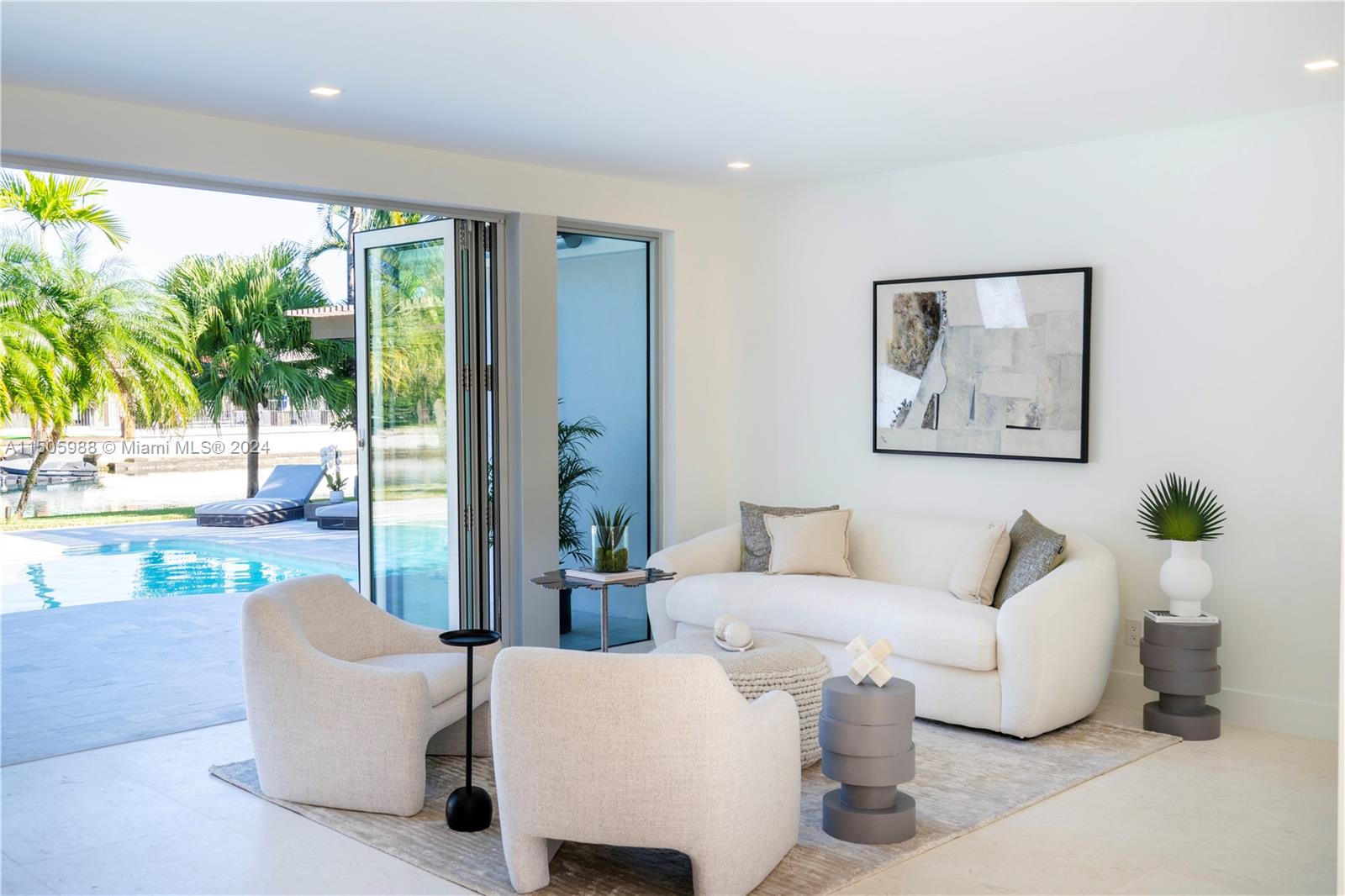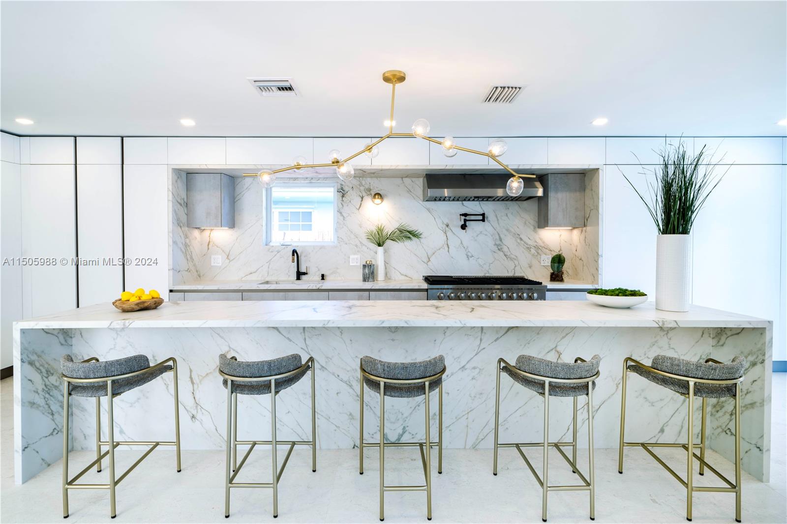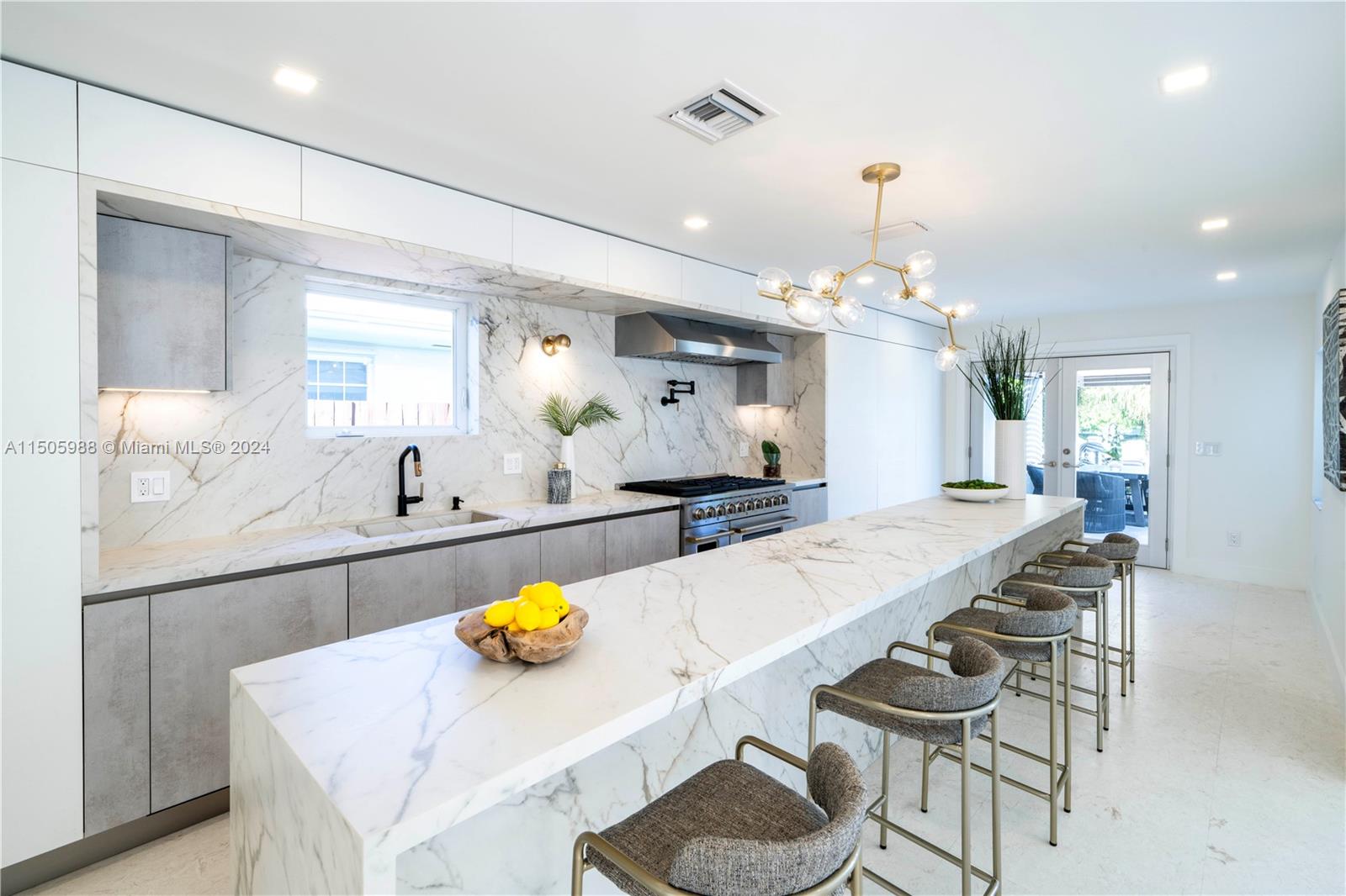 SELLER MOTIVATED! Modern, completely renovated waterfront oasis in gated Keystone Islands. This boater's paradise offers 75' of deep water frontage, ocean access & no fixed bridges to Bay. The elegant interiors feature chic upgrades & finishes, new marble floors throughout & open living spaces. Enjoy seamless indoor/outdoor living w/triple pane impact doors that completely recess. The open eat-in custom gas kitchen by ItalKraft has a huge island, coffee bar, sintered stone countertops & top-of-the-line appliances. The backyard boasts a heated saltwater pool, Trellis, & summer kitchen, perfect for Al Fresco dining. Tastefully remodeled for today's living, this gated Smart Home is complete w/impact windows, generator, tankless water heater & numerous newly installed tech features throughout.